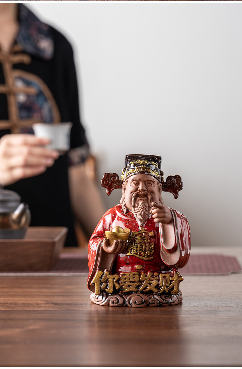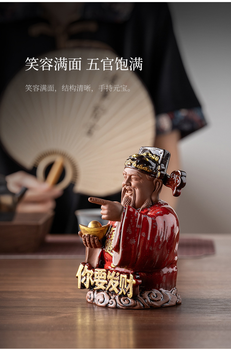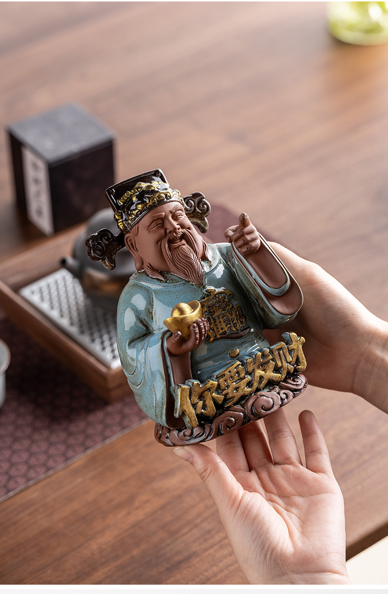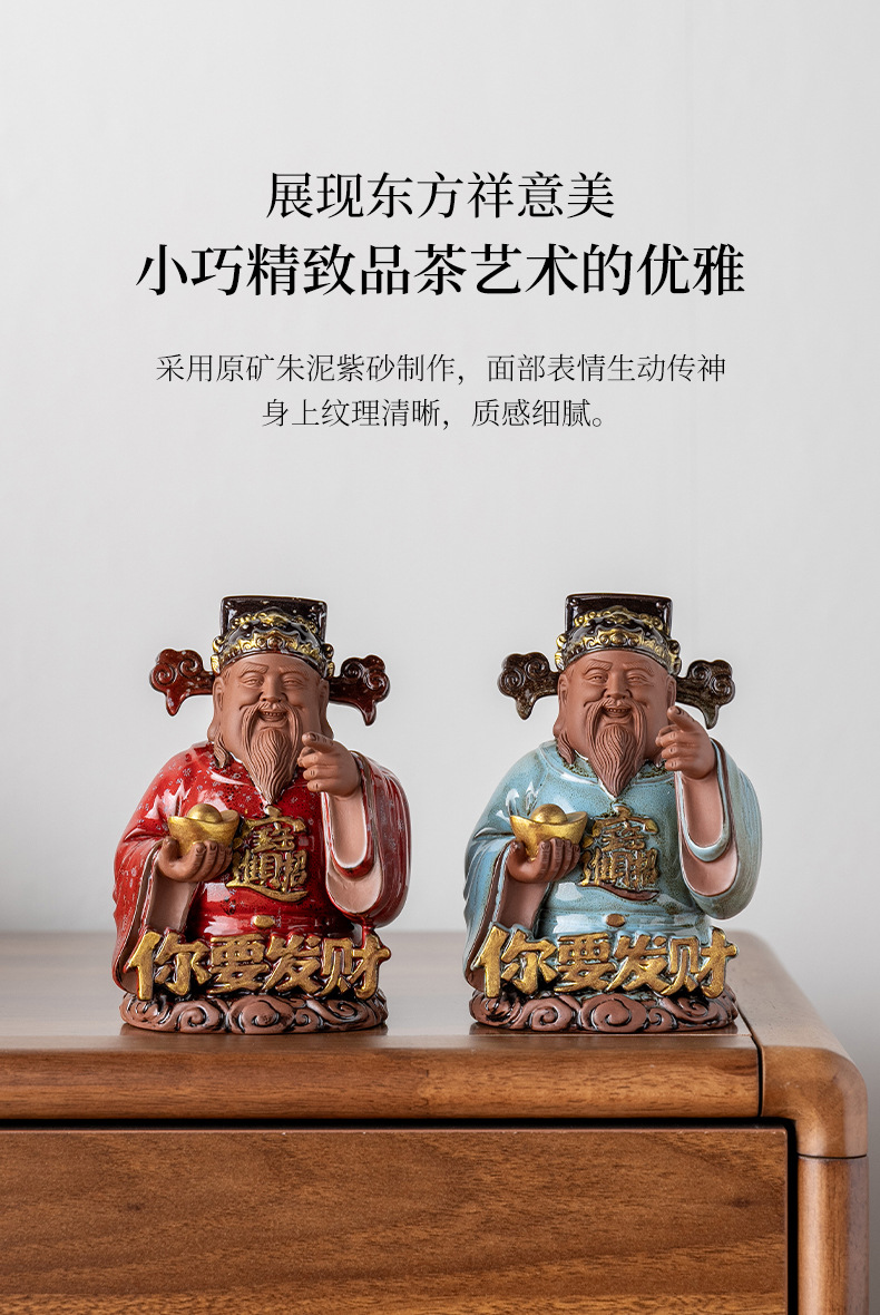 紫砂财神爷茶宠摆件家用办公桌面装饰茶室博古架摆设乔迁开业礼品
