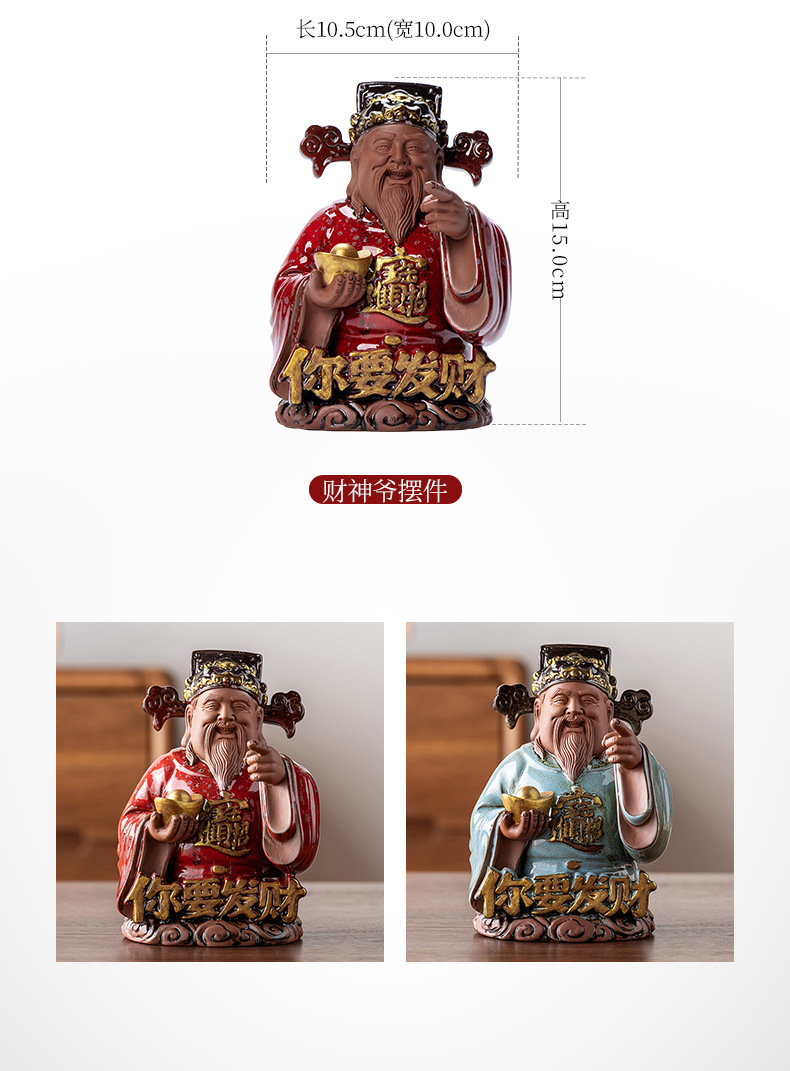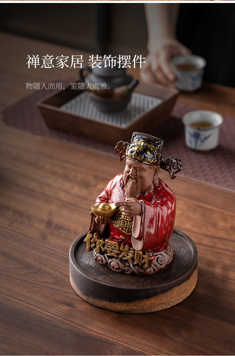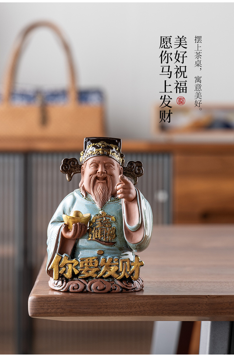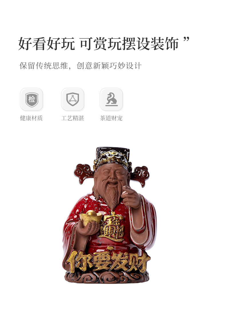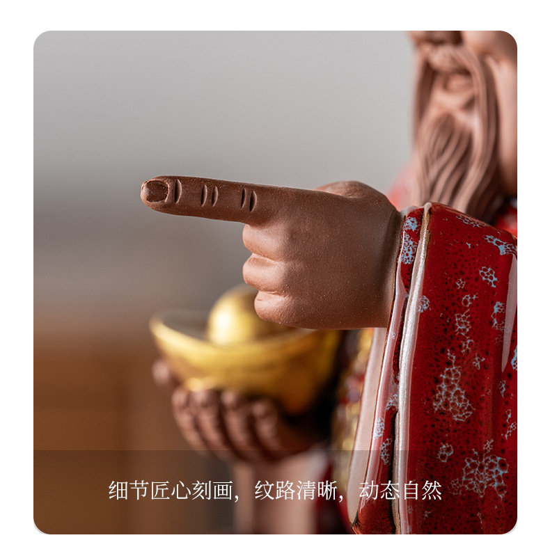 紫砂财神爷茶宠摆件家用办公桌面装饰茶室博古架摆设乔迁开业礼品