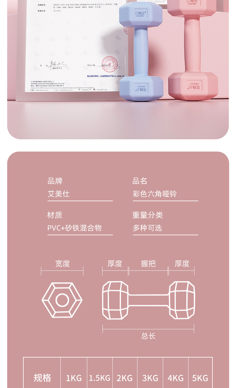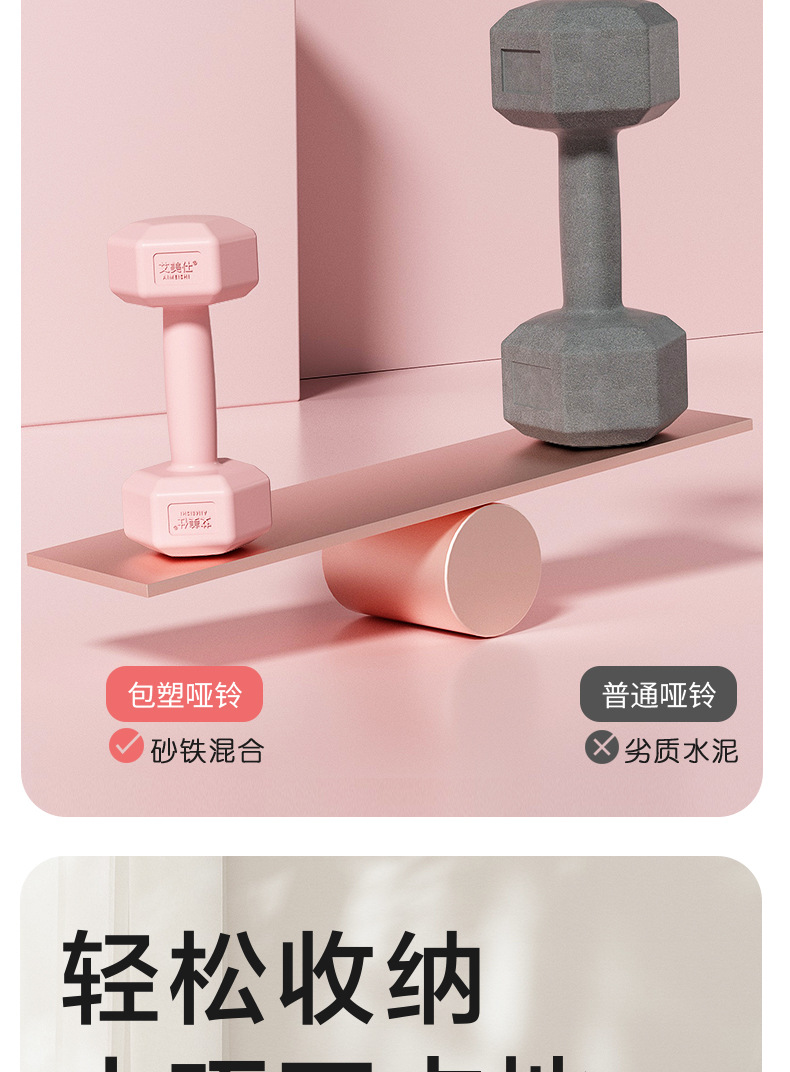 艾美仕家用女士彩色哑铃 跳操健身私教 瘦手臂练臂肌女士水泥哑铃