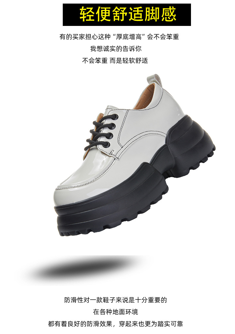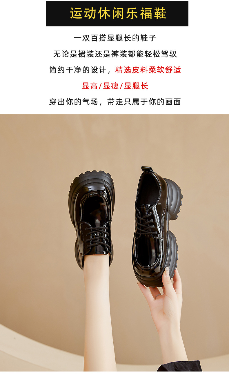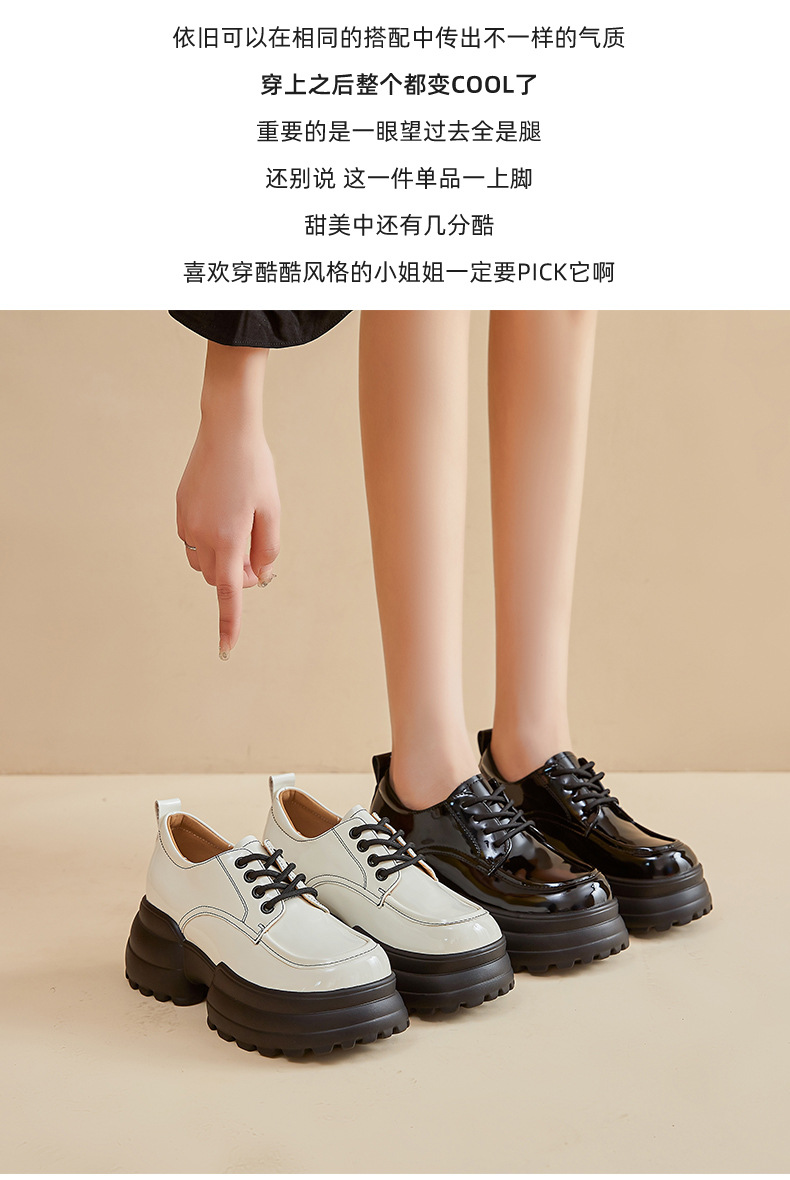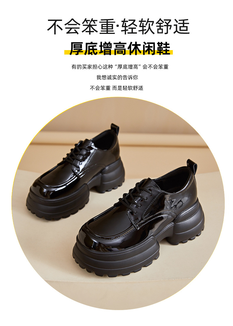 漆皮小皮鞋女2024春季新款8cm学院风单鞋百搭厚底内增高女鞋子潮