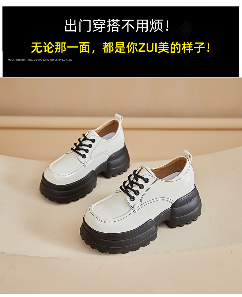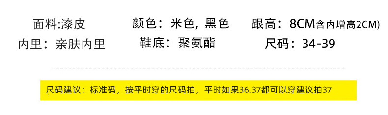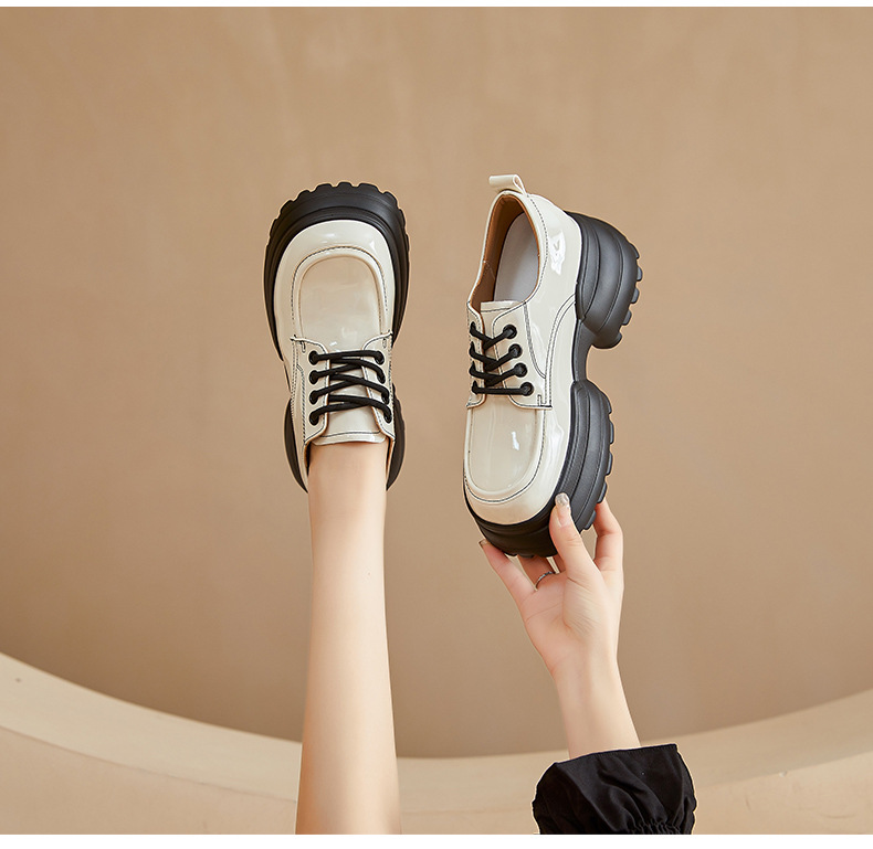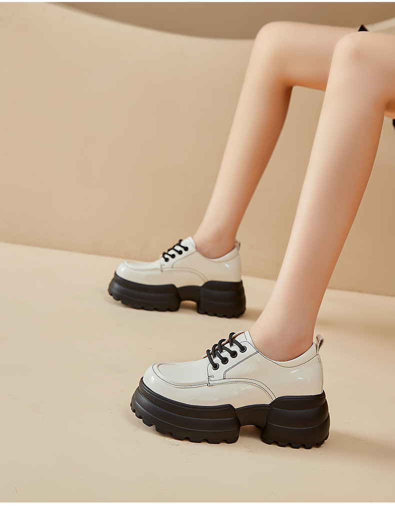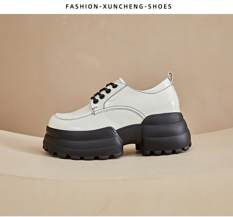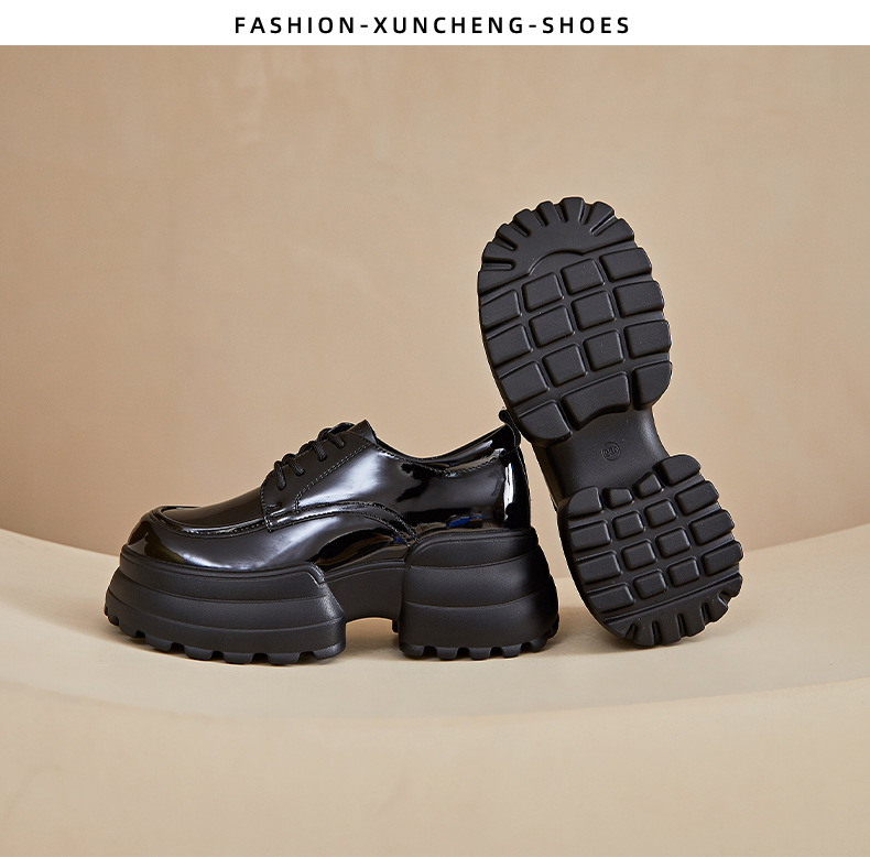 漆皮小皮鞋女2024春季新款8cm学院风单鞋百搭厚底内增高女鞋子潮