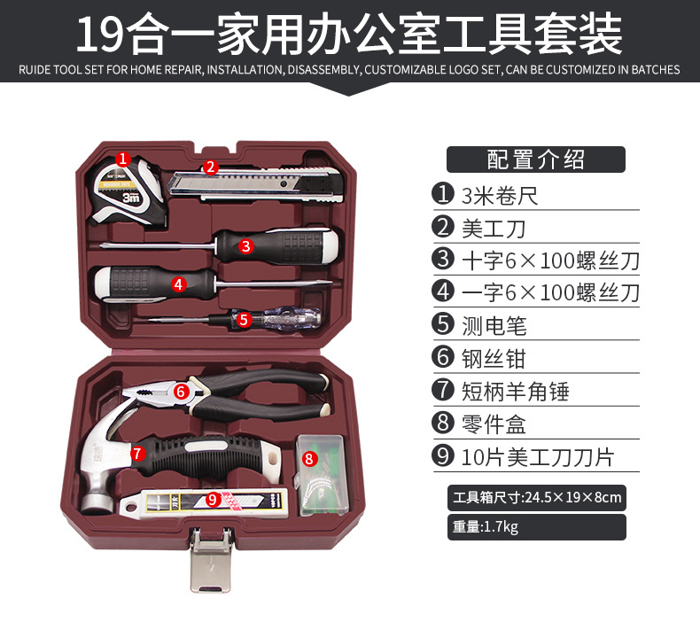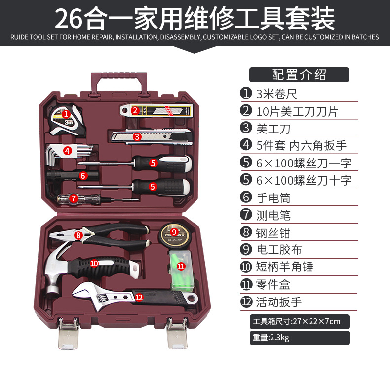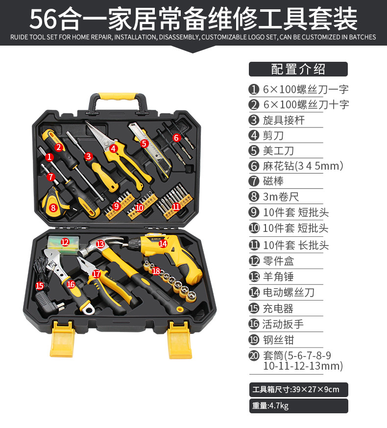 家用工具箱套装日常维修五金扳手螺丝刀钳子万能全套家庭大全组合