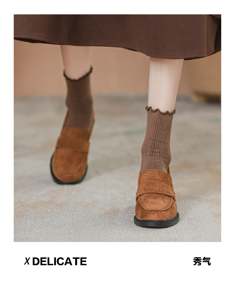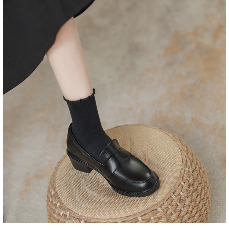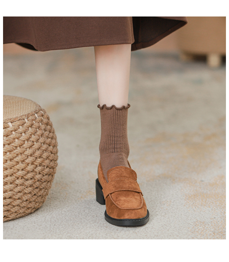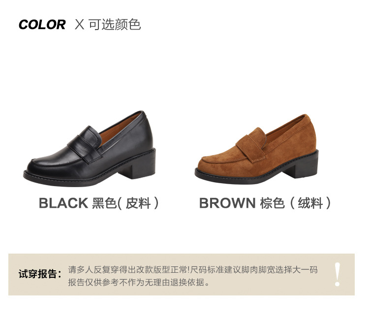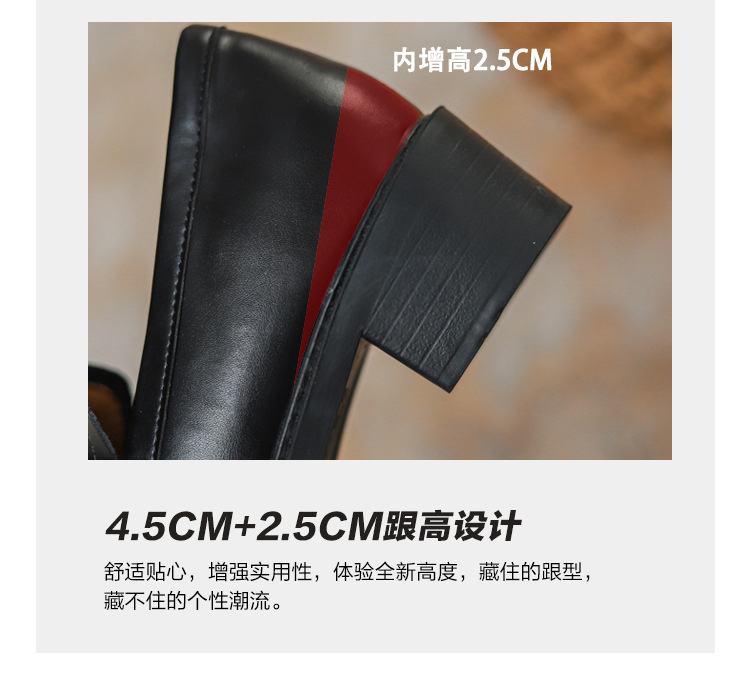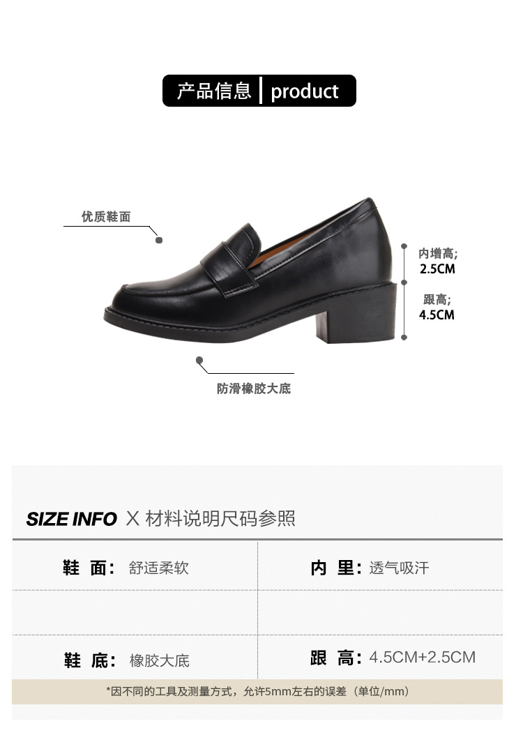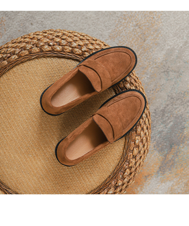 2024新款绒面内增高乐福鞋一脚蹬粗跟坡跟小皮鞋女百搭气质女鞋子