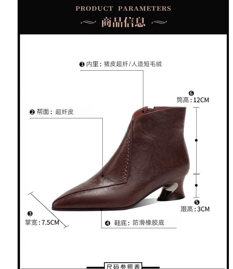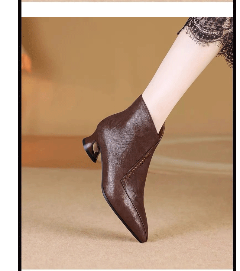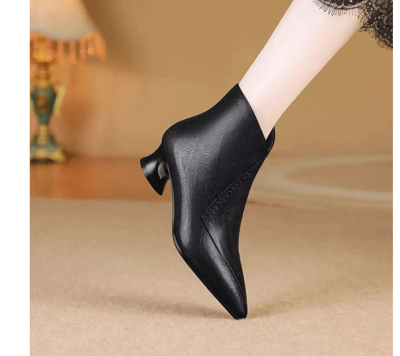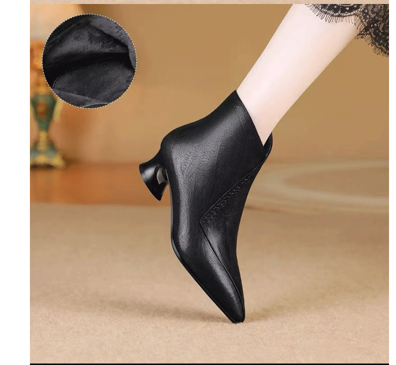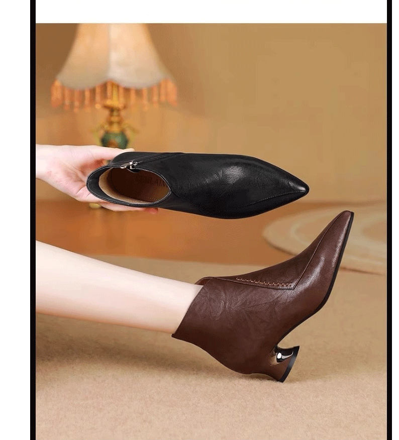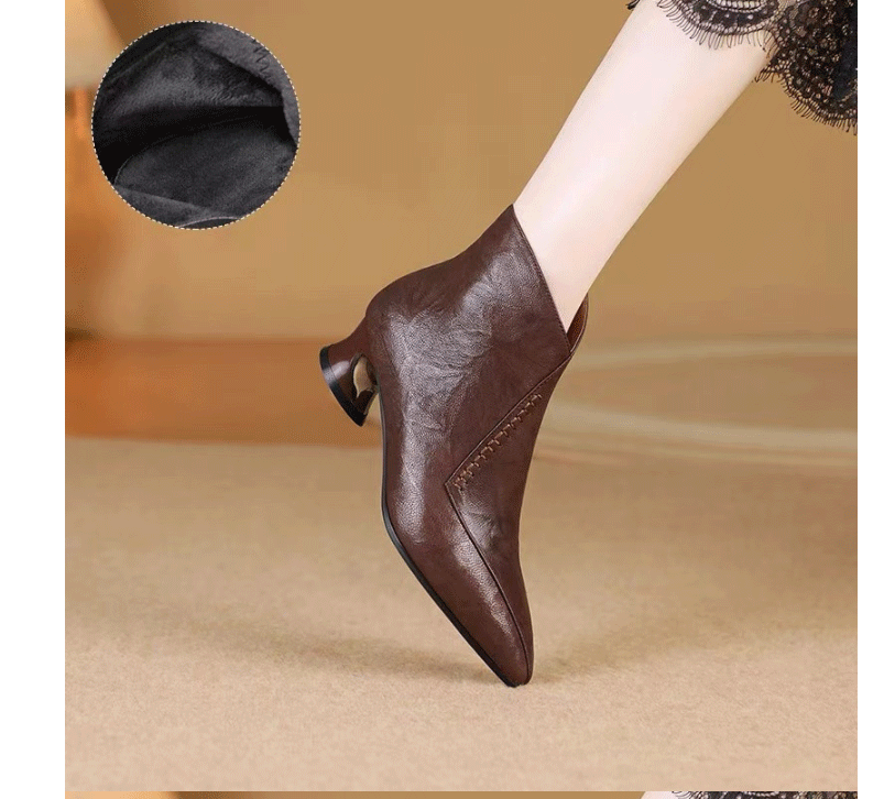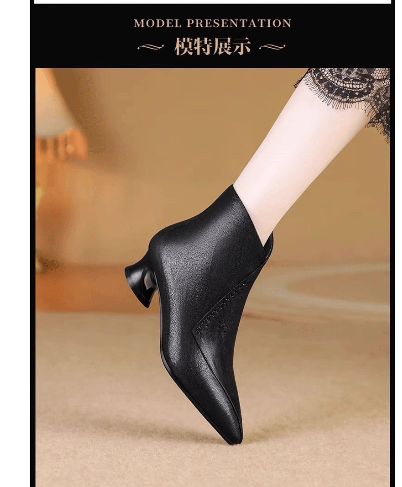 欧美风尖头切尔西靴粗跟百搭马丁靴2025秋冬新款加绒时装靴女皮鞋