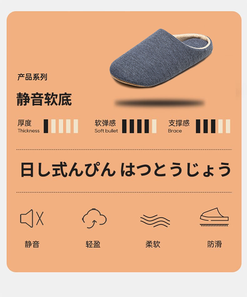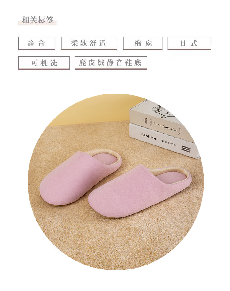 拖鞋秋冬日式开口可机洗无声布底静音拖鞋女士软底家居室内棉拖鞋