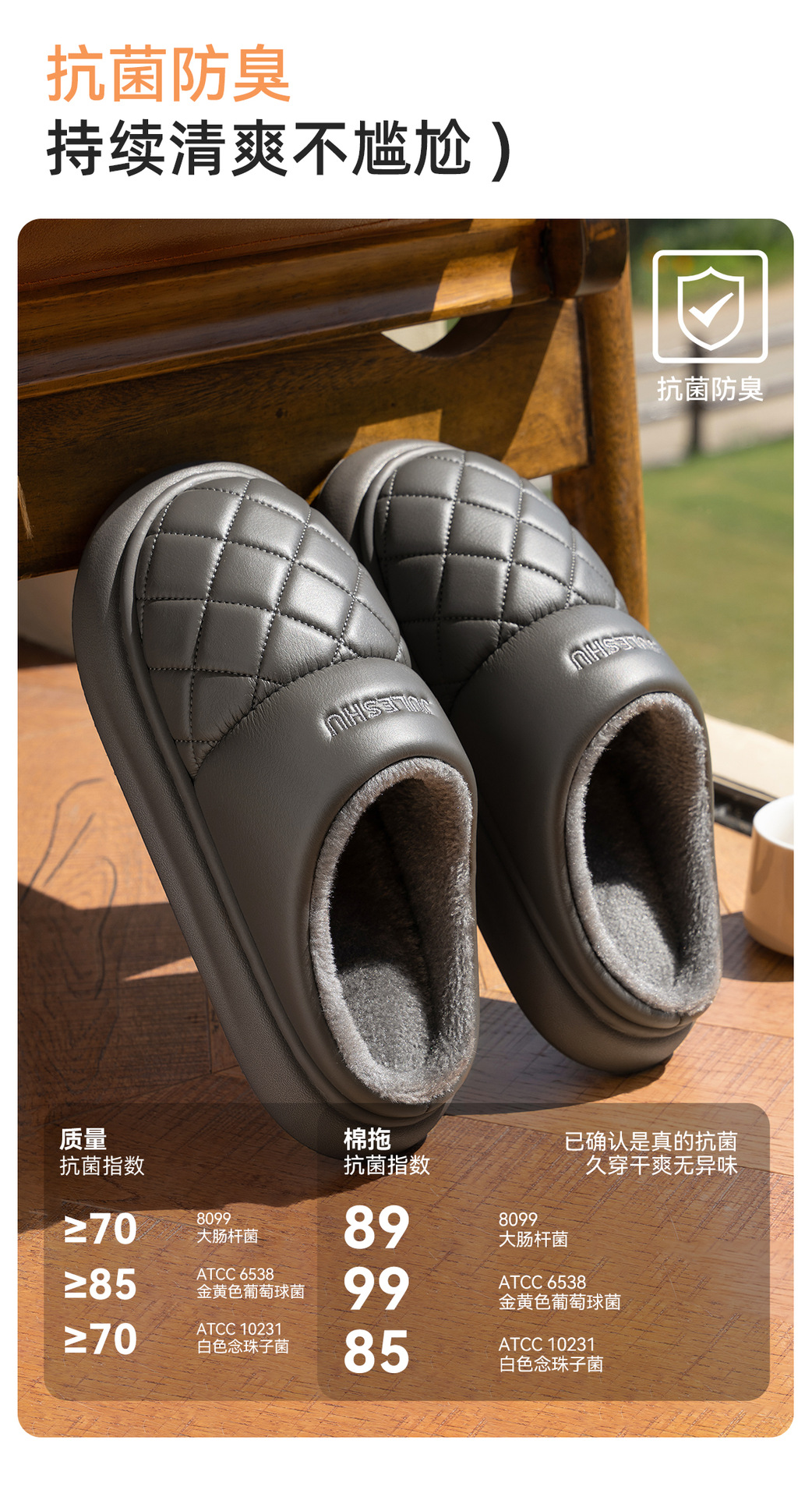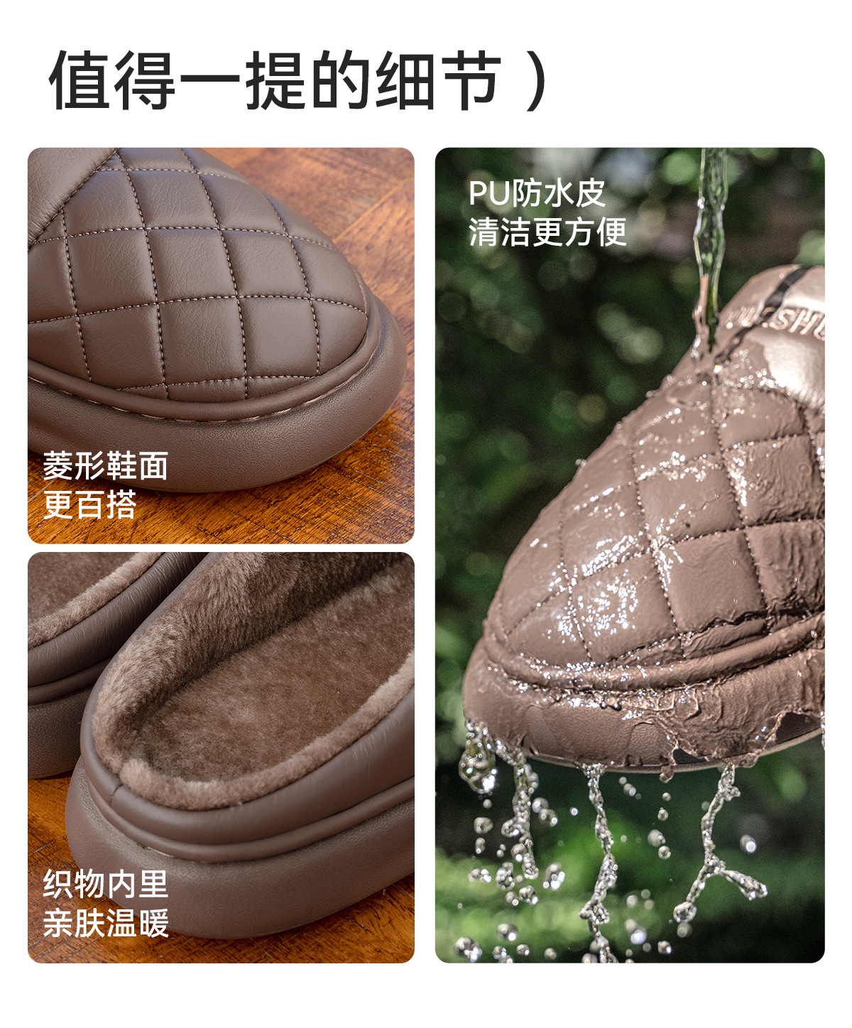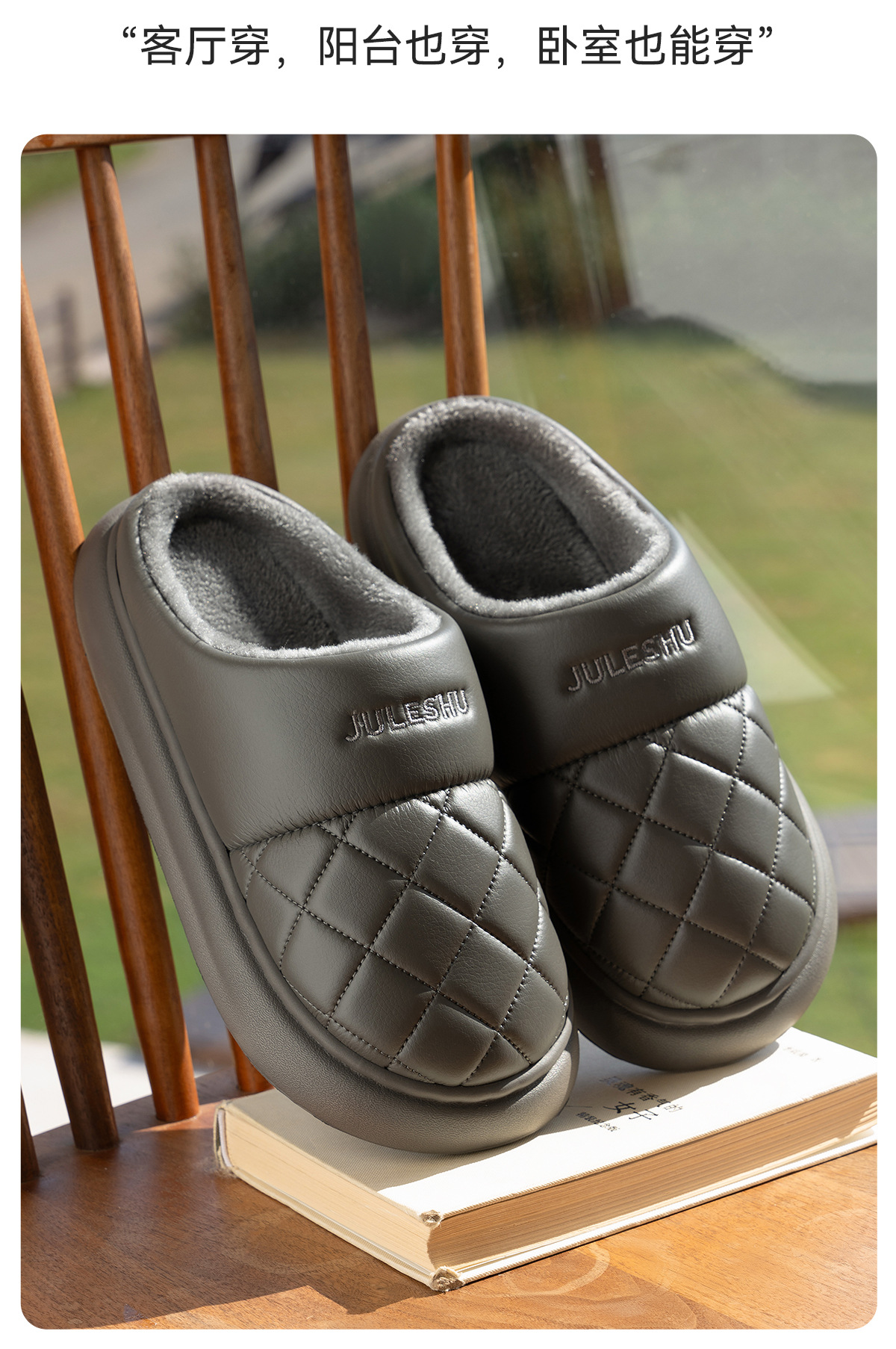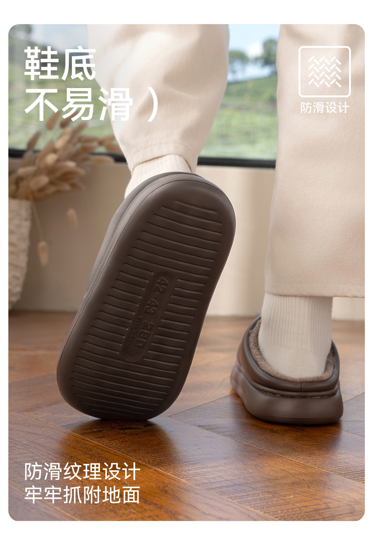 洁丽雅防水棉拖鞋男秋冬季2025新款加绒加厚室内家居防滑皮棉拖女