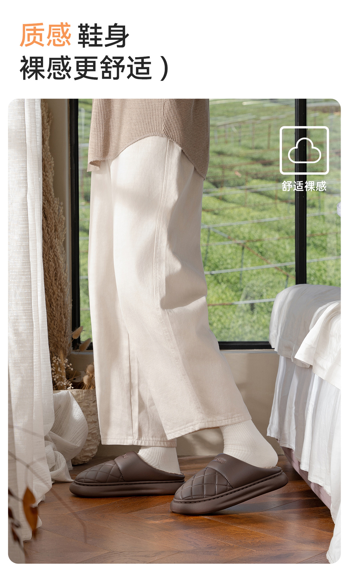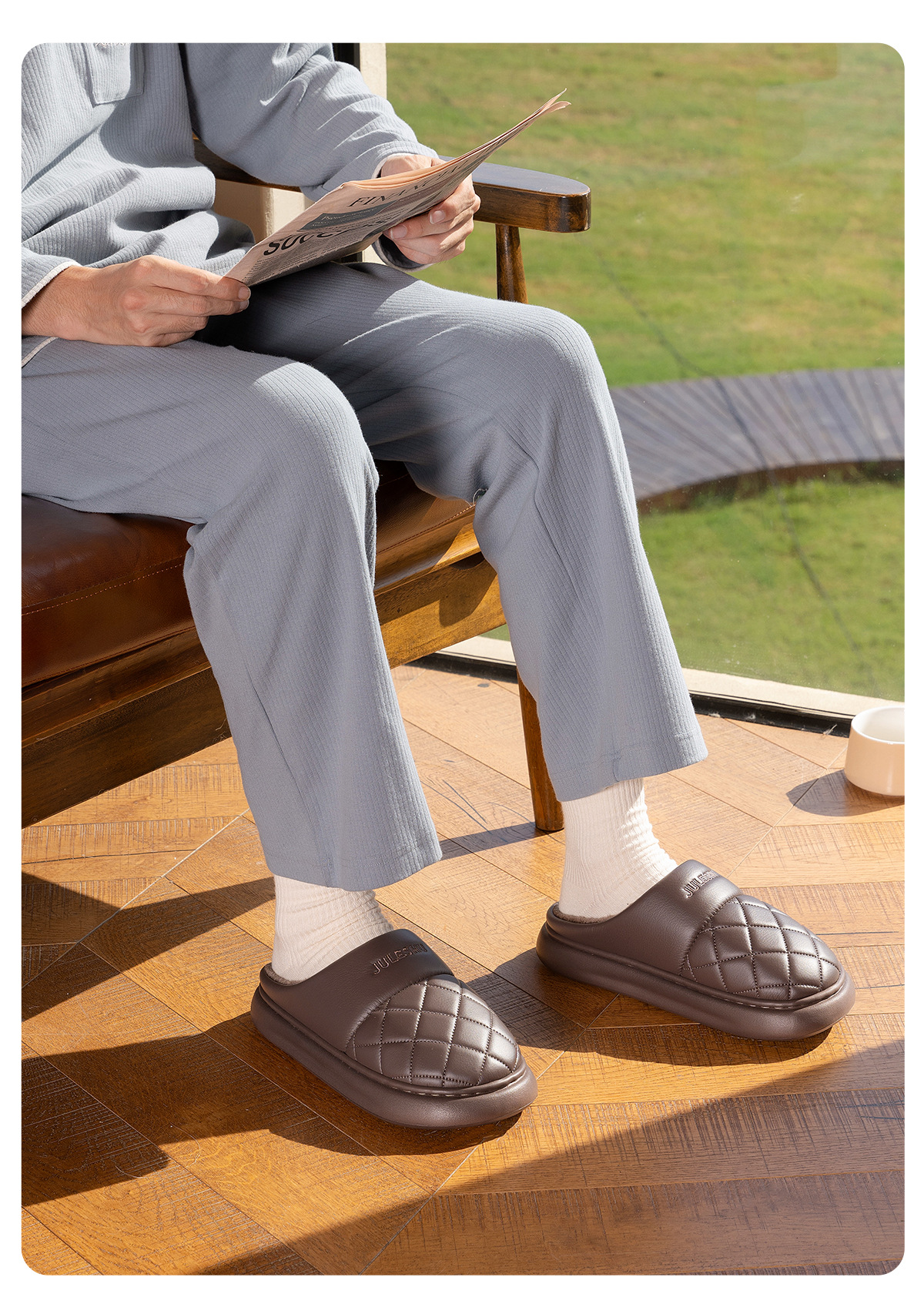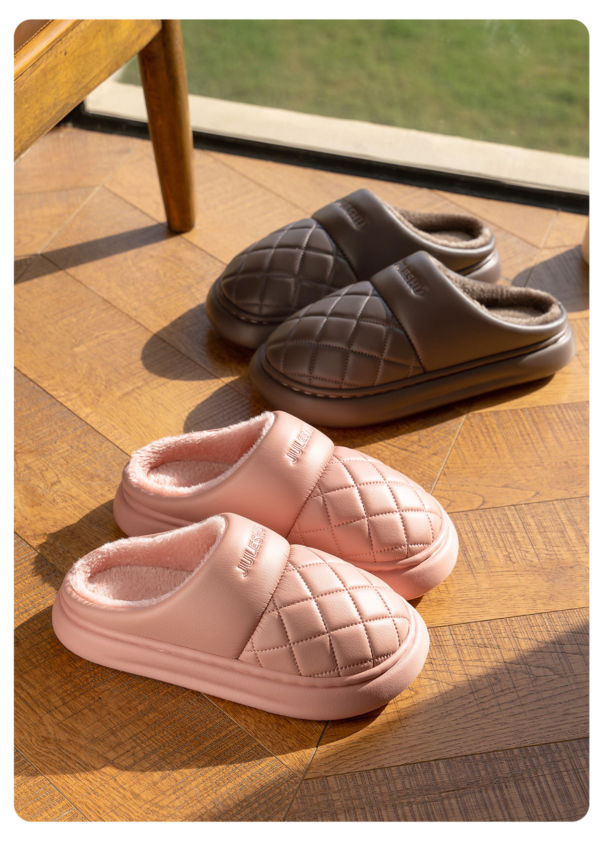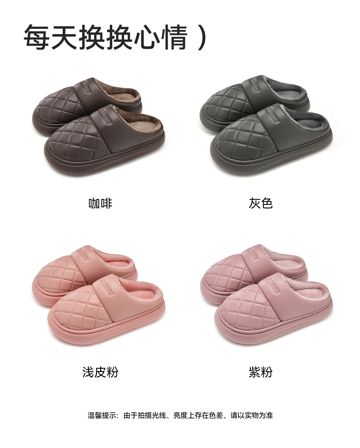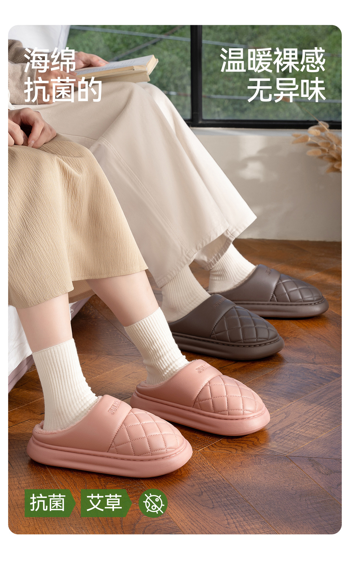 洁丽雅防水棉拖鞋男秋冬季2025新款加绒加厚室内家居防滑皮棉拖女