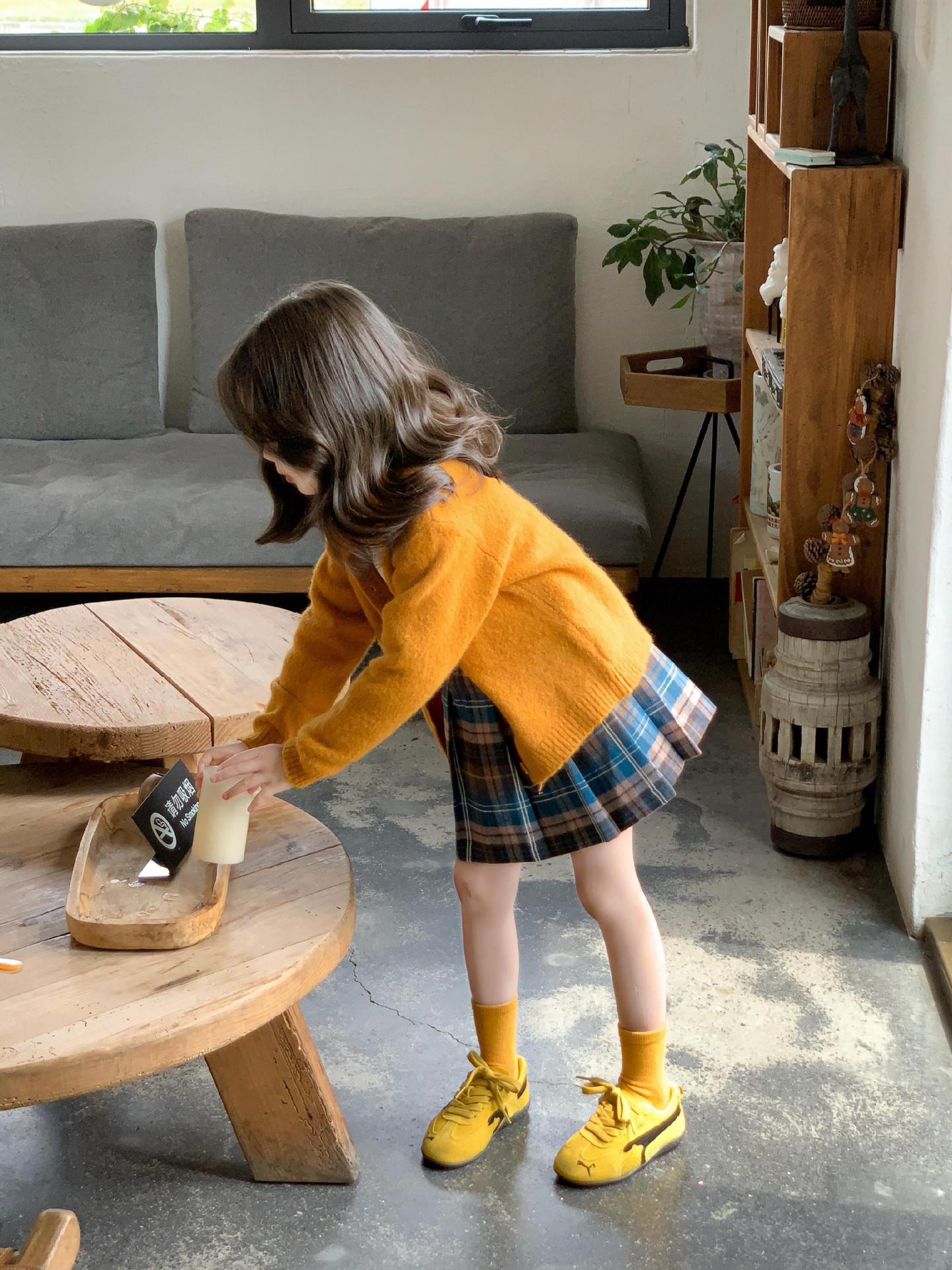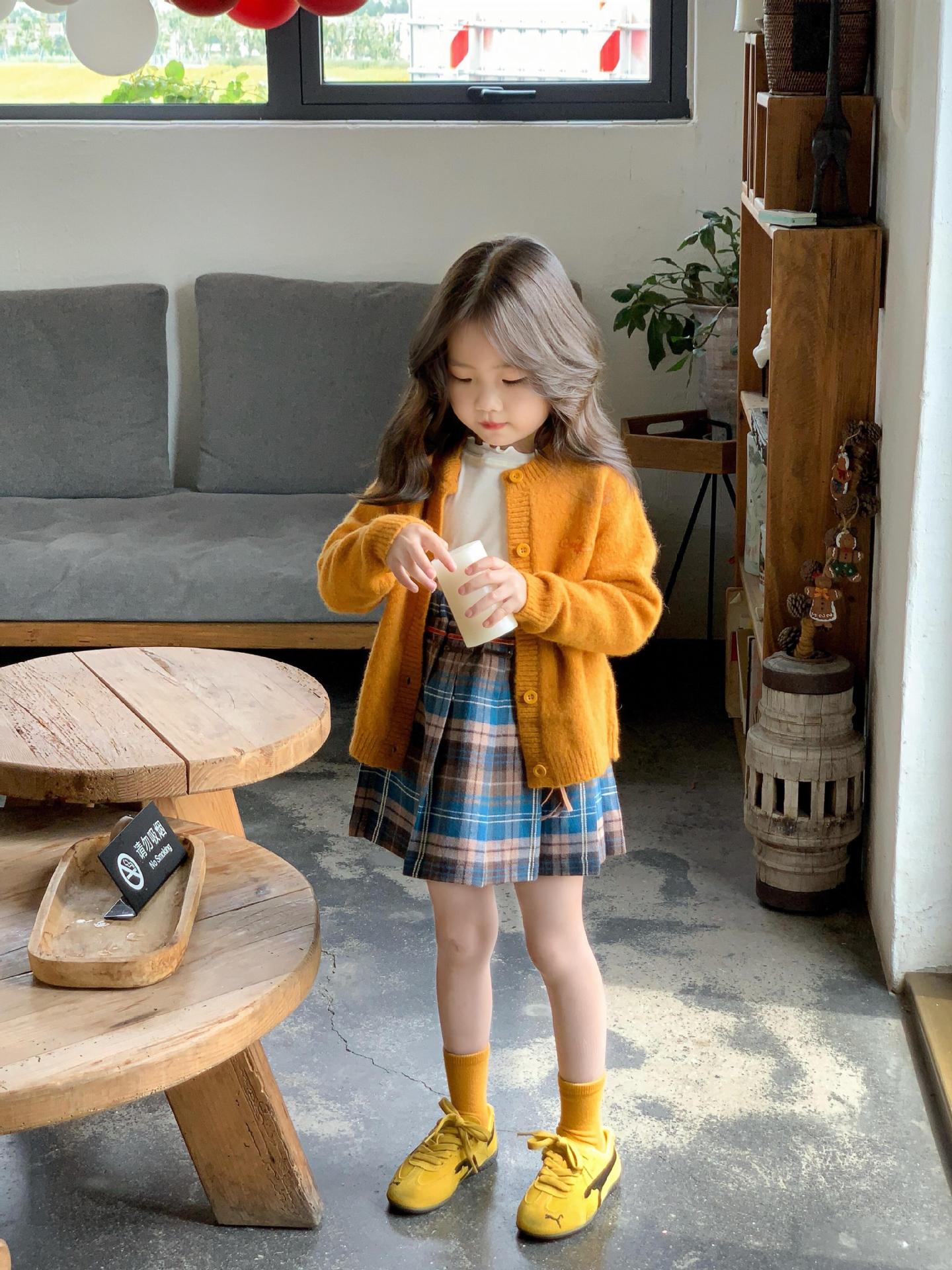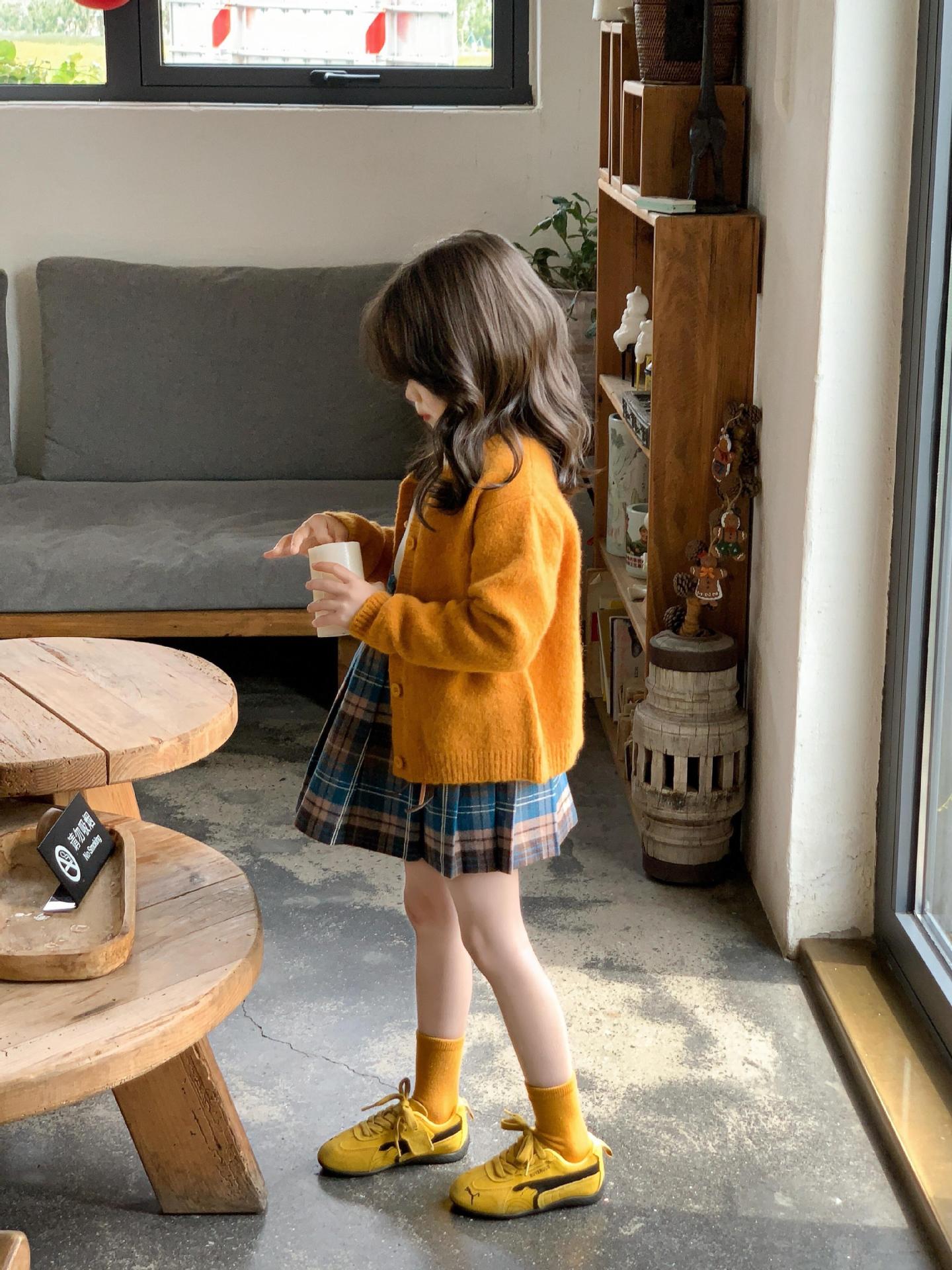 韩版童装女童毛衣开衫秋2025新款女宝洋气甜美橘色针织衫儿童外套