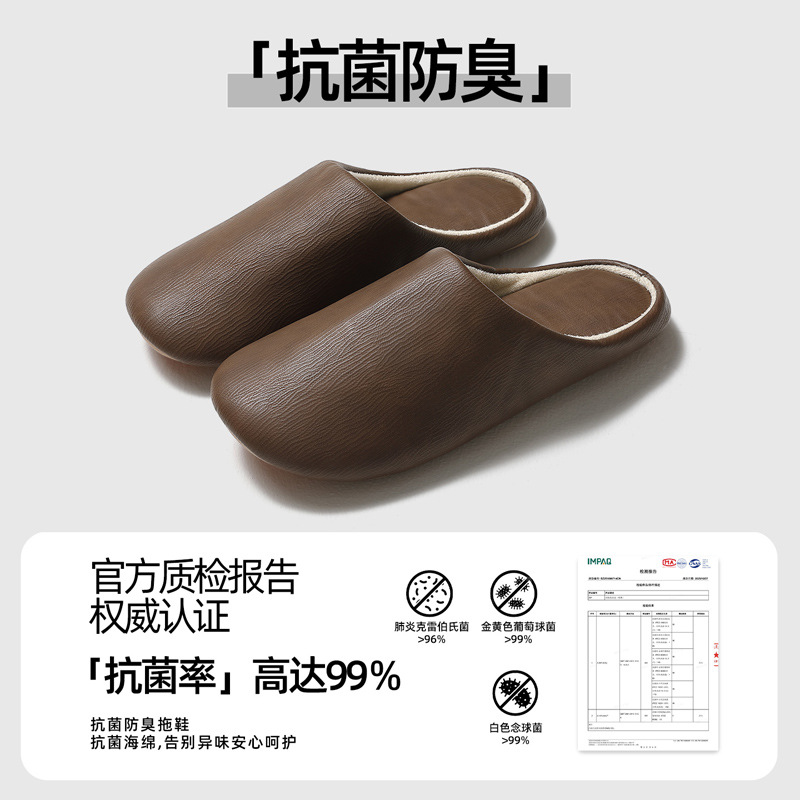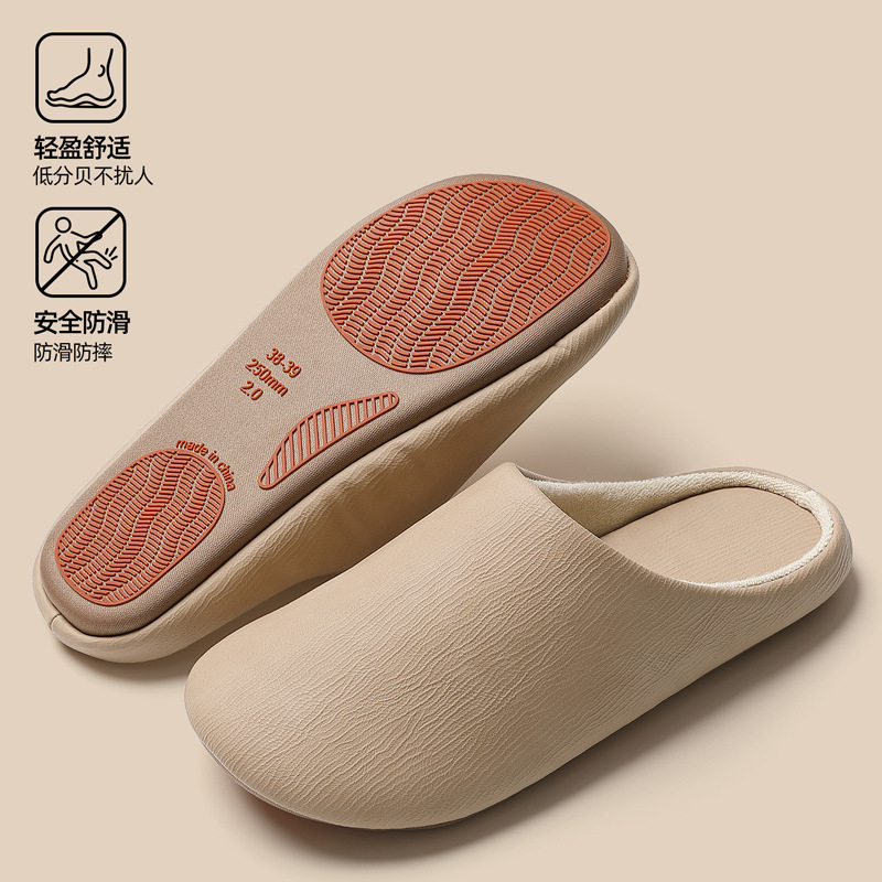 pu防水棉拖鞋女冬季毛绒保暖男士室内家用软底静音防滑秋冬棉拖男