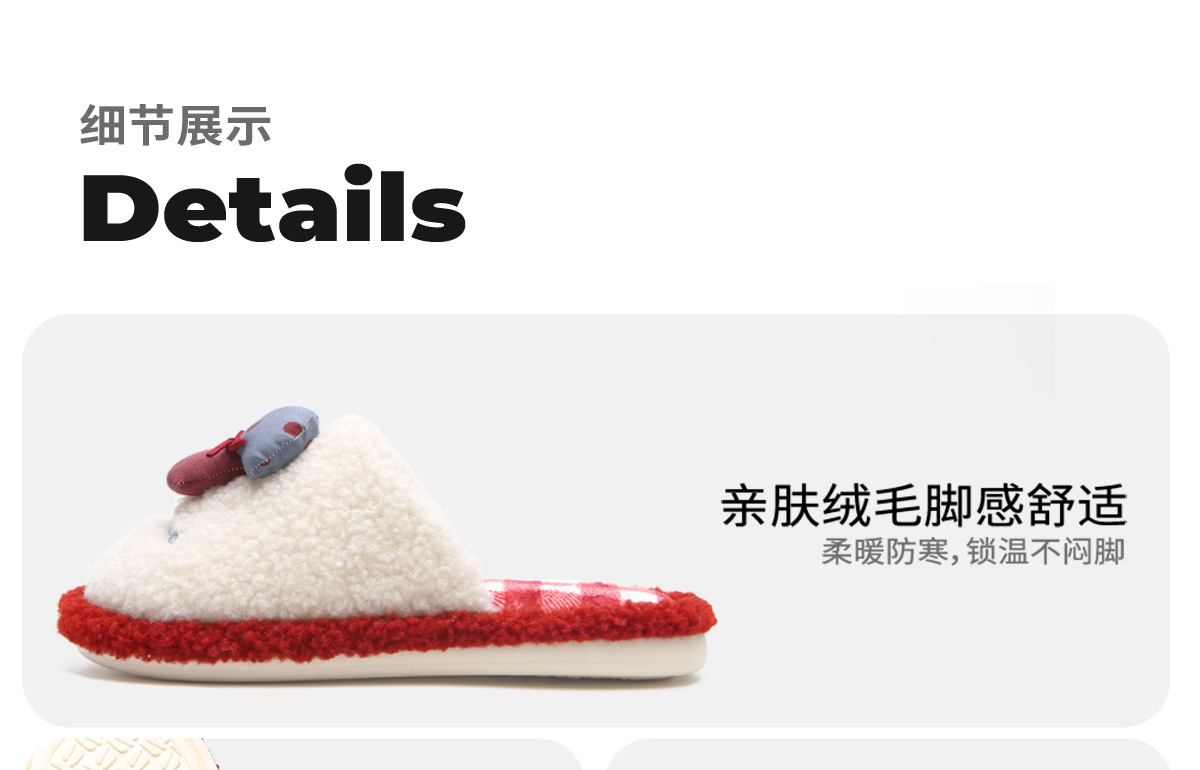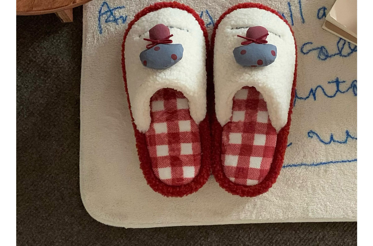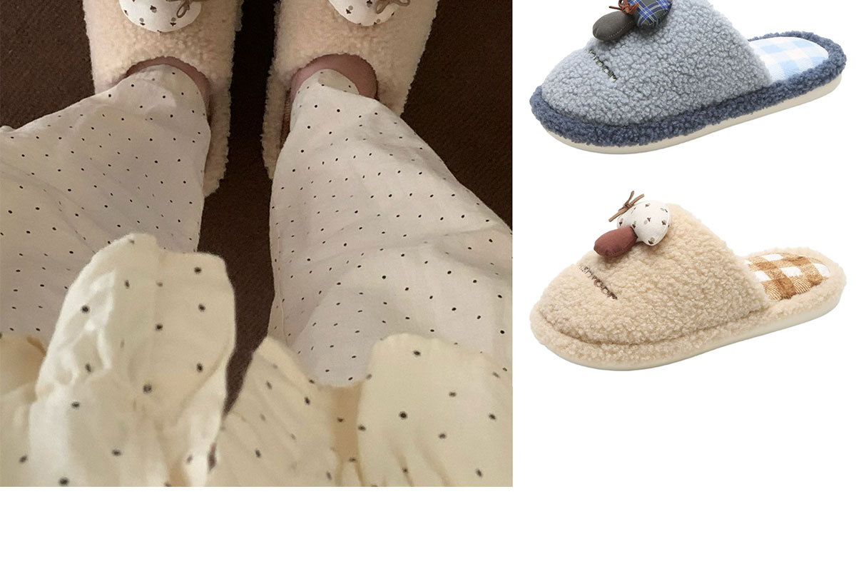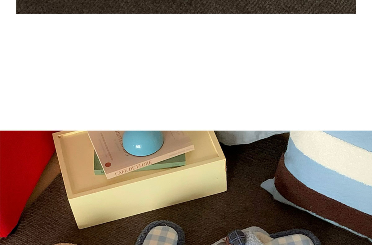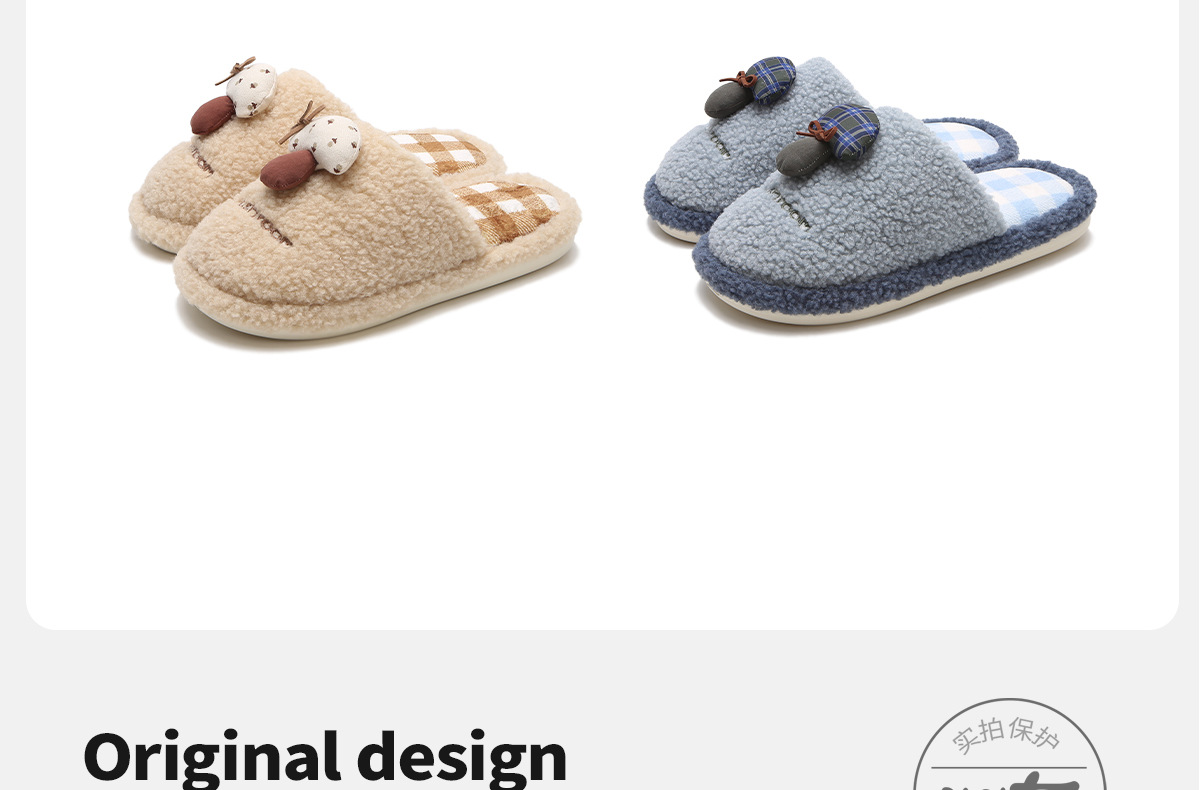 细细条 复古撞色小蘑菇棉拖鞋女秋冬保暖可爱学生居家舒适毛毛鞋