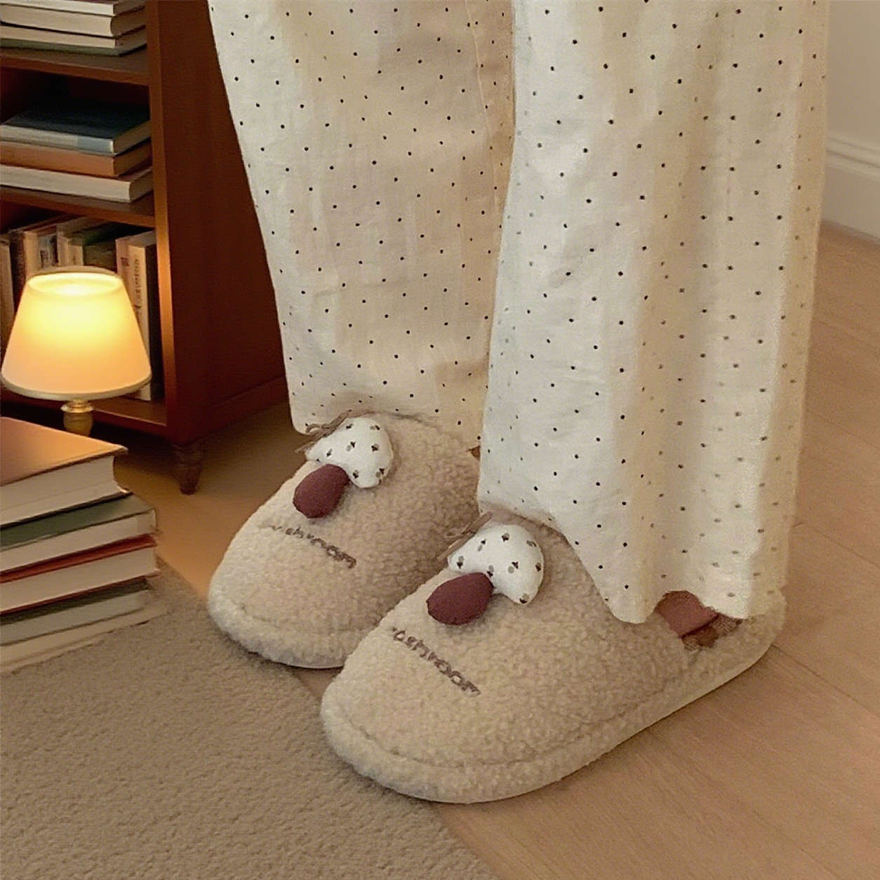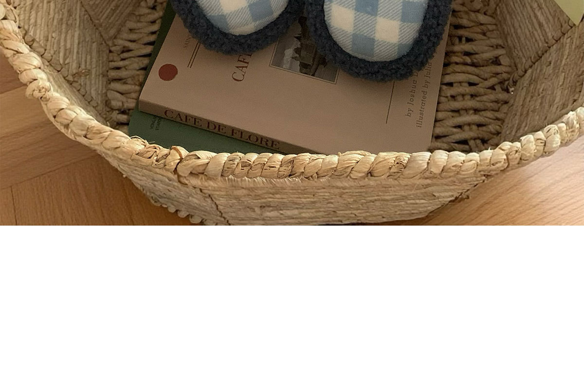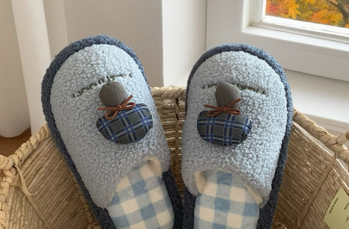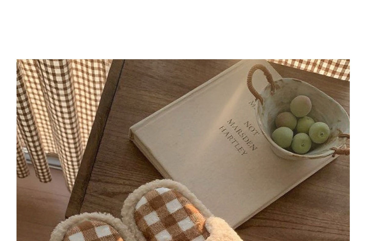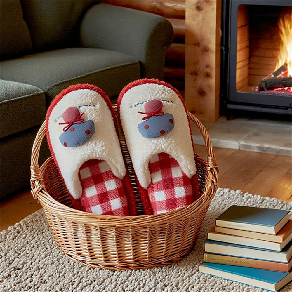 细细条 复古撞色小蘑菇棉拖鞋女秋冬保暖可爱学生居家舒适毛毛鞋