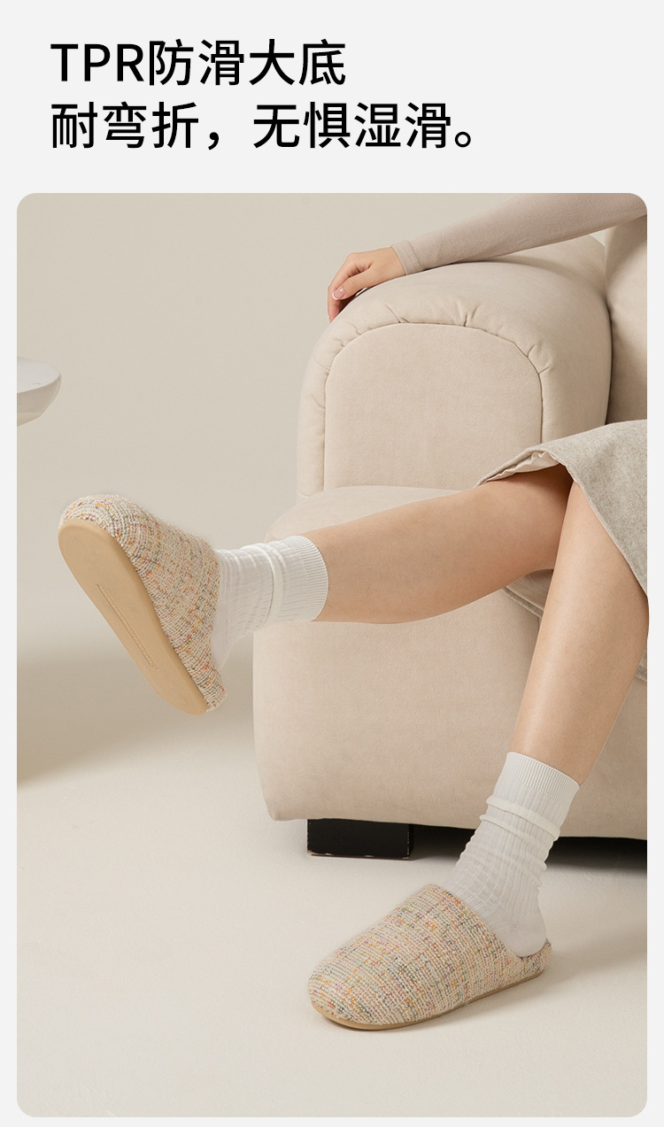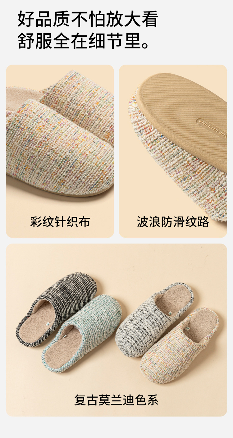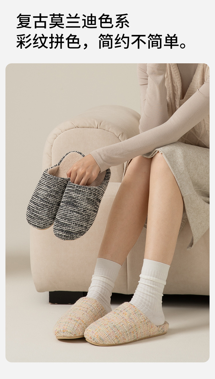 朴西知己棉拖鞋女士防滑舒适高级感地板拖鞋家居经典复古保暖拖鞋