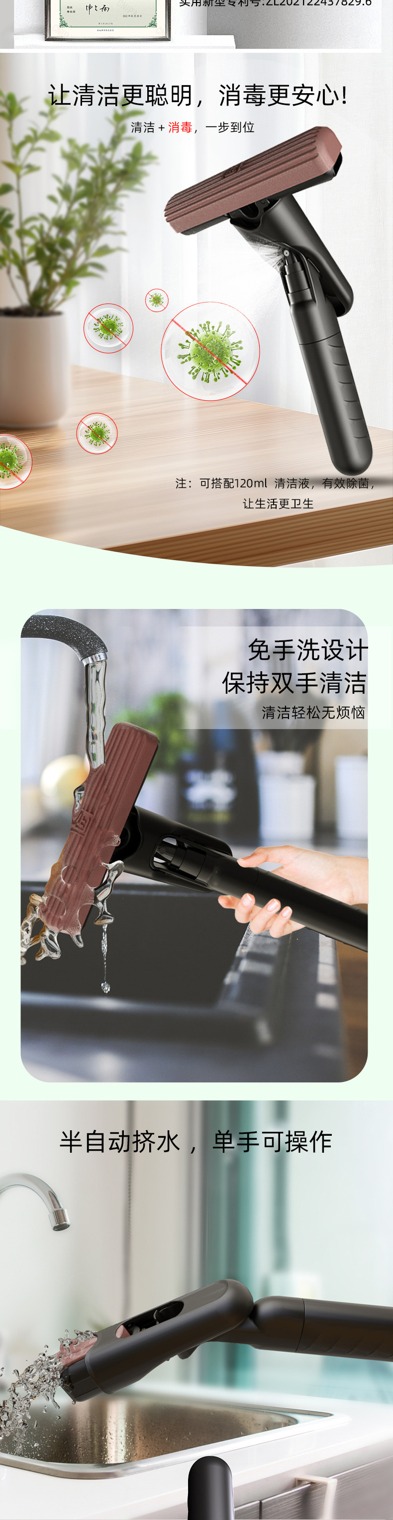 桌面手持迷你喷水小拖把免手洗便携厨房用多功能吸水海绵清洁用品