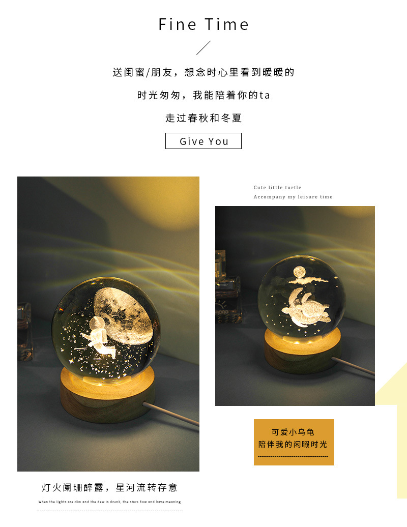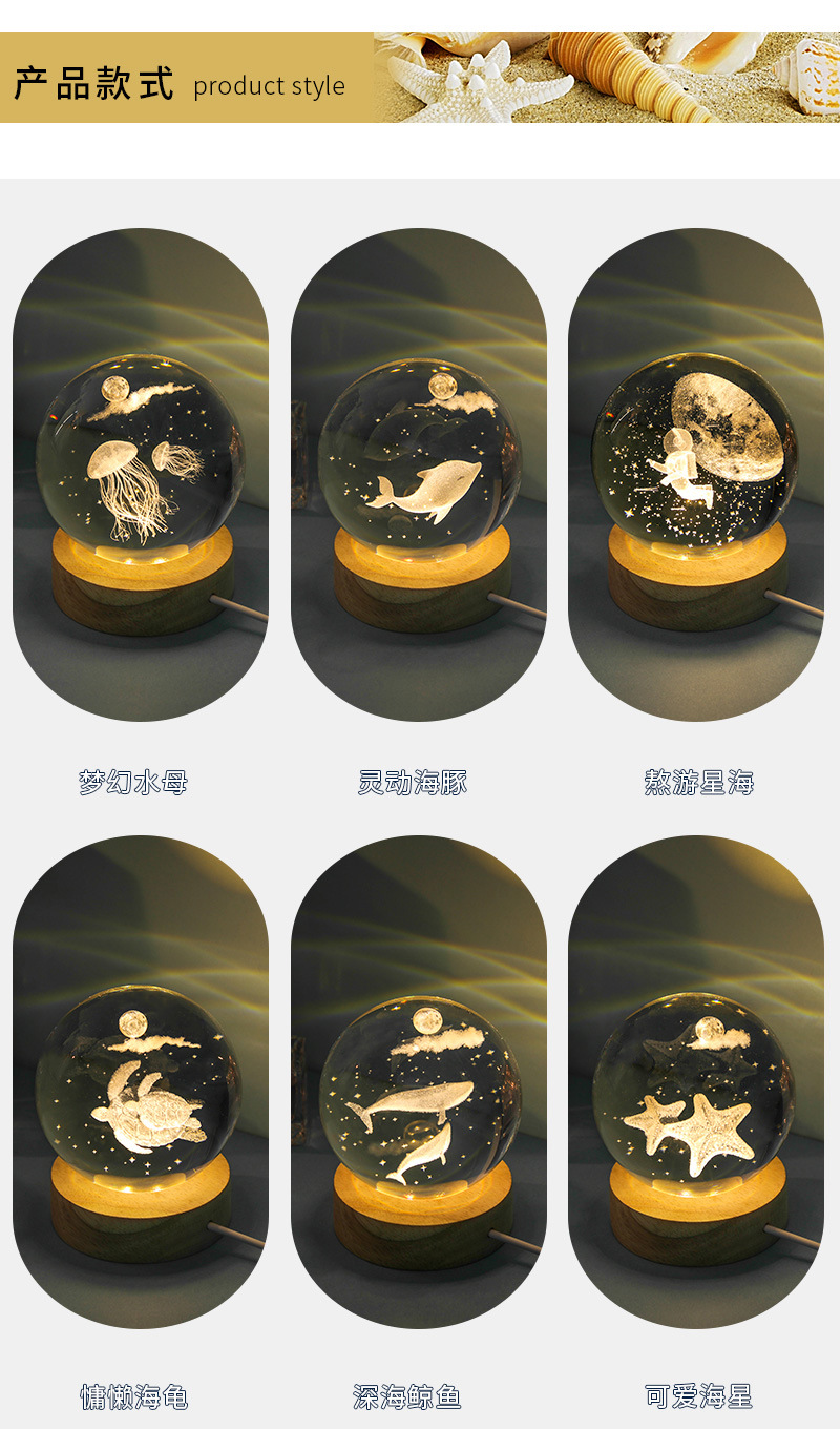 发光3d海洋水母内雕水晶球小夜灯创意卧室桌面摆件工艺品生日礼物