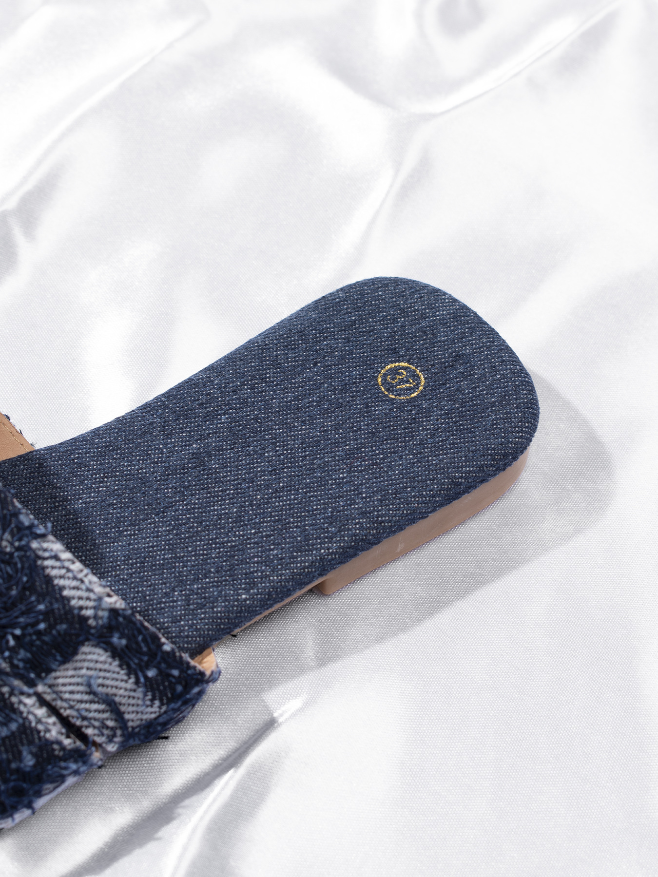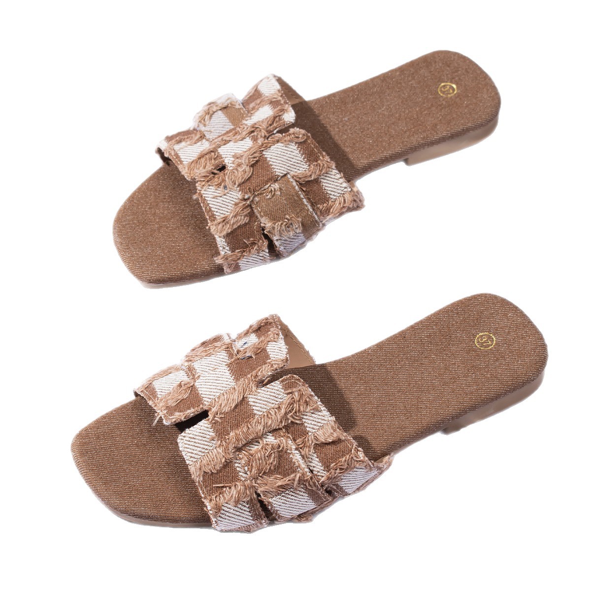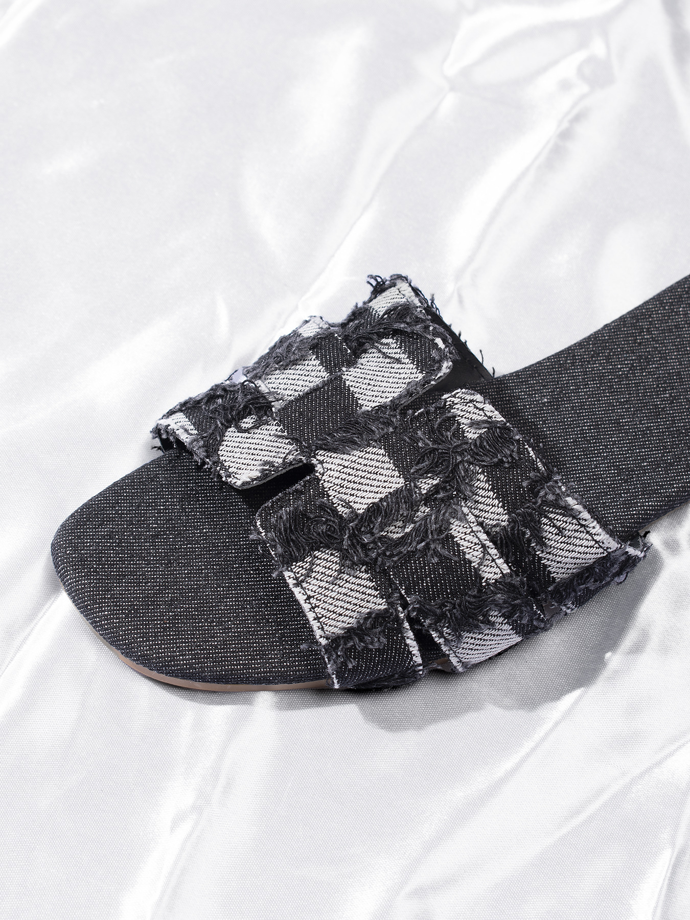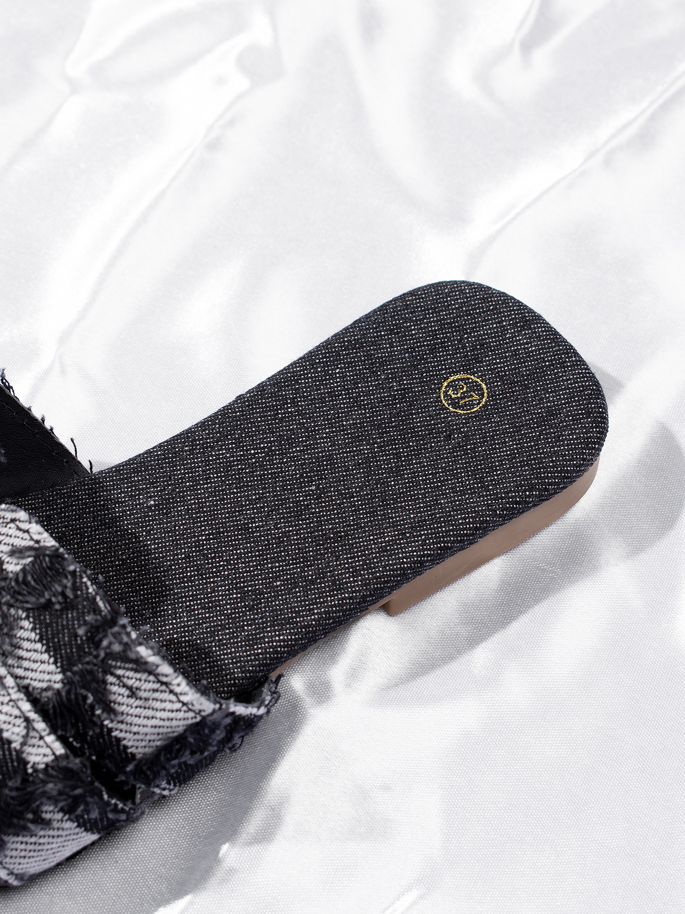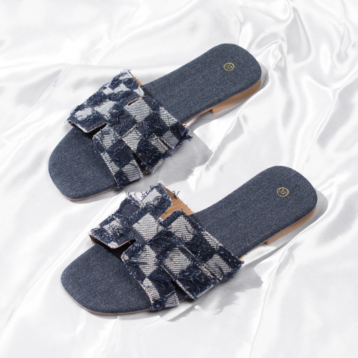 平底大码方头女士黑色加肥外贸一字拖百搭露趾大码半托外穿平底拖