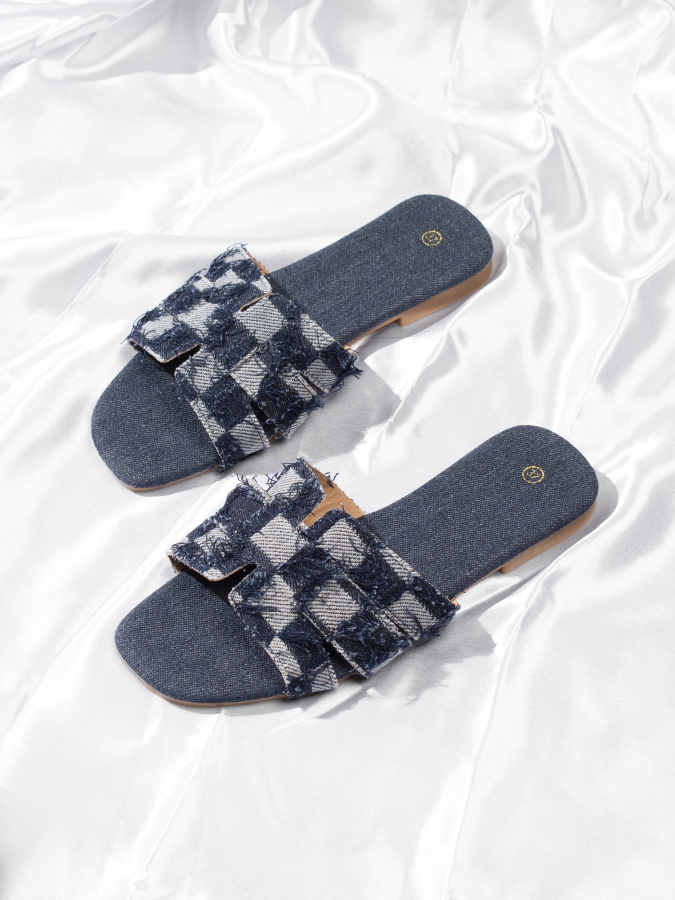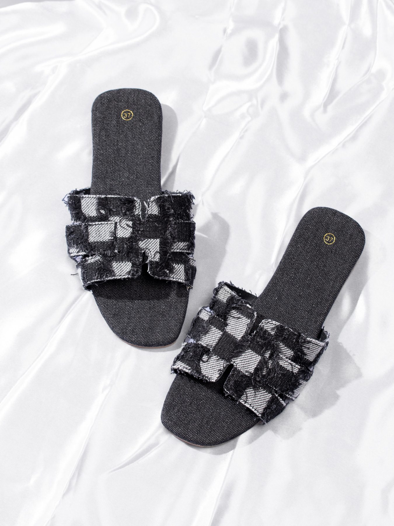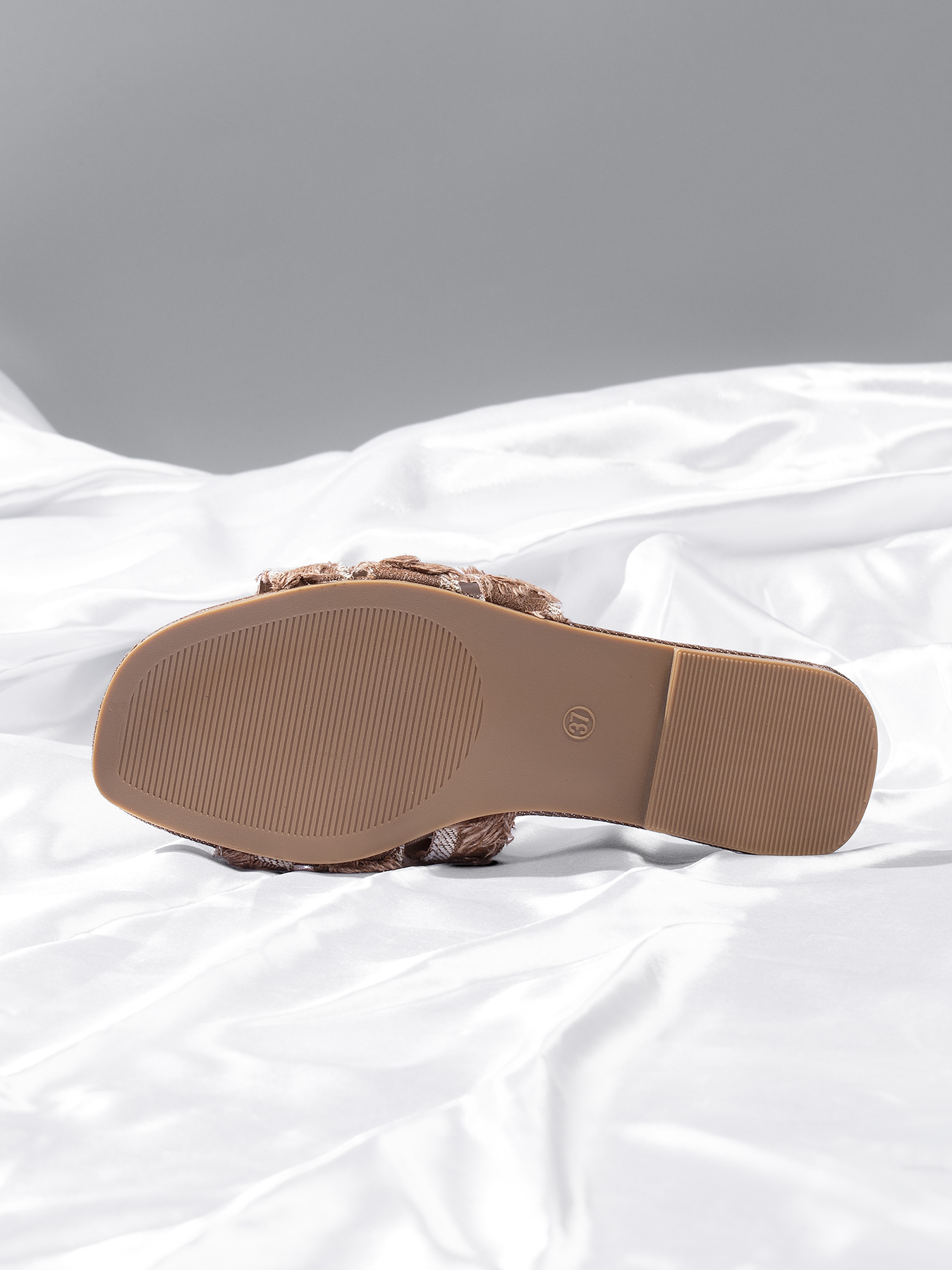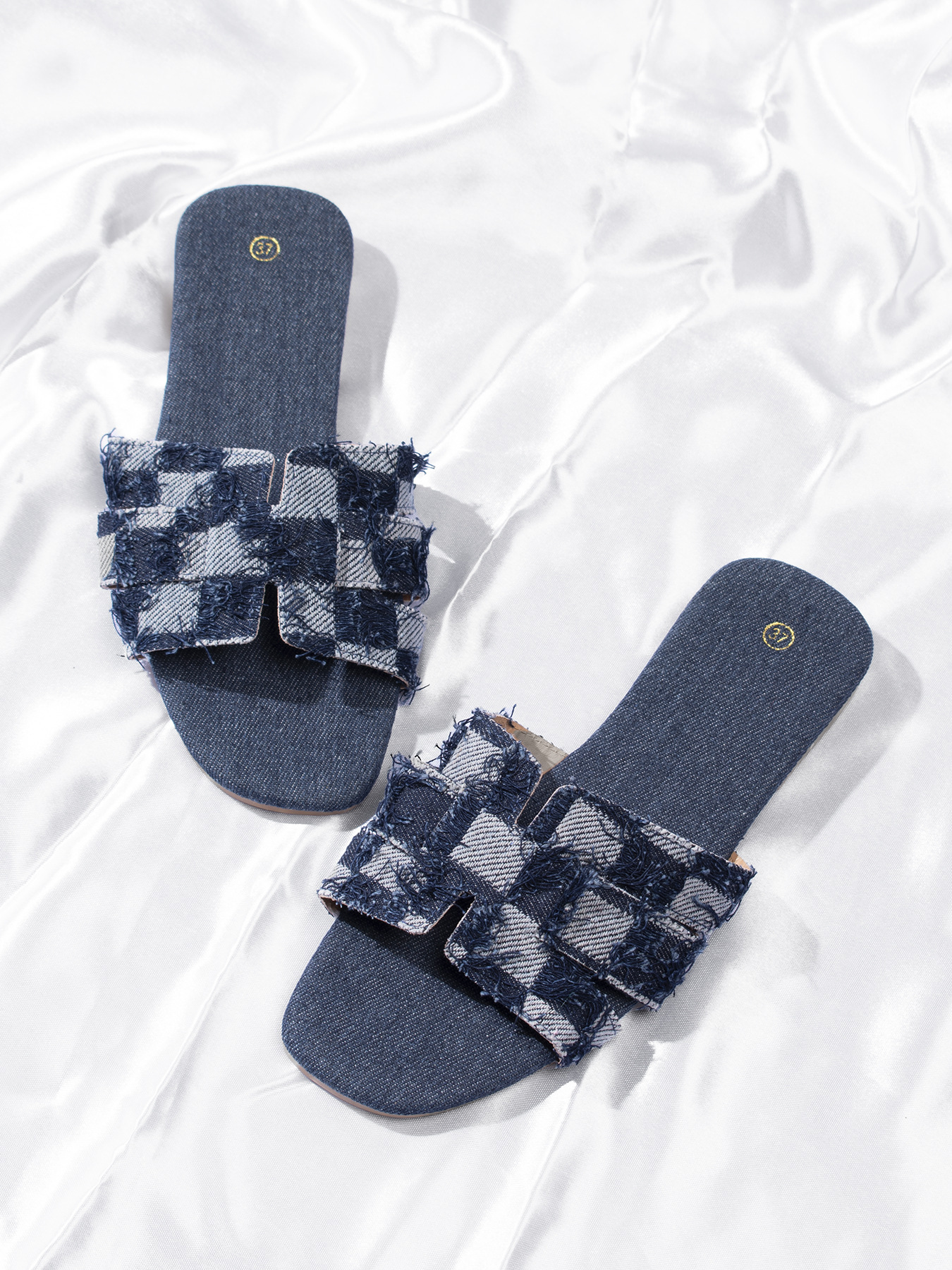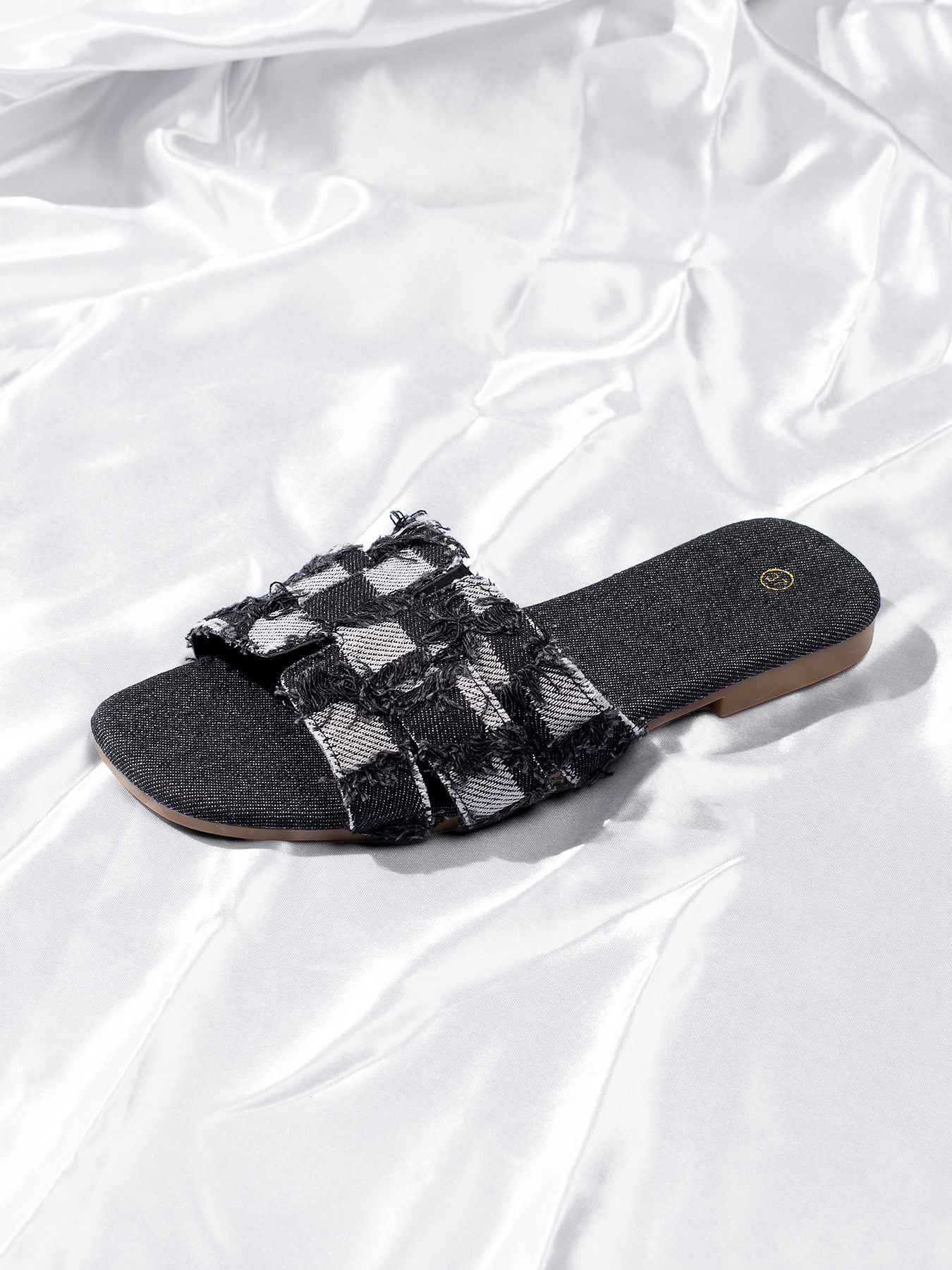 平底大码方头女士黑色加肥外贸一字拖百搭露趾大码半托外穿平底拖