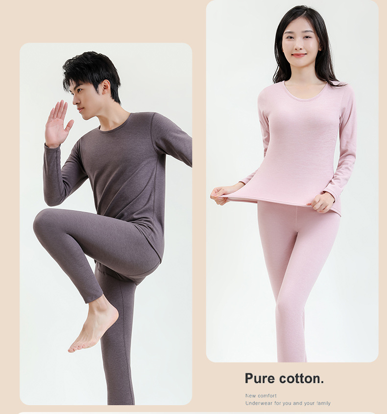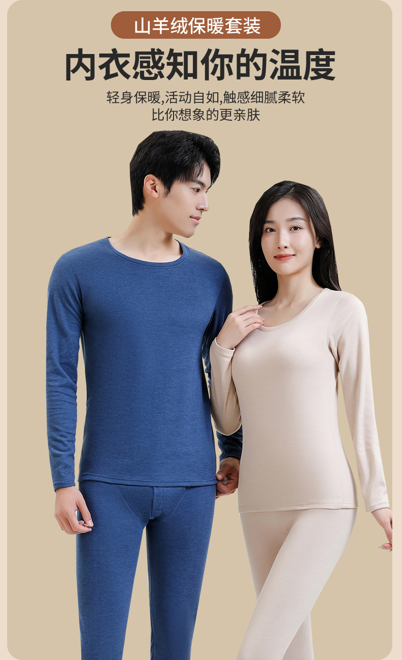 秋冬抖音情侣男女士羊绒蚕丝保暖套装双面磨毛秋衣秋裤内衣代批发