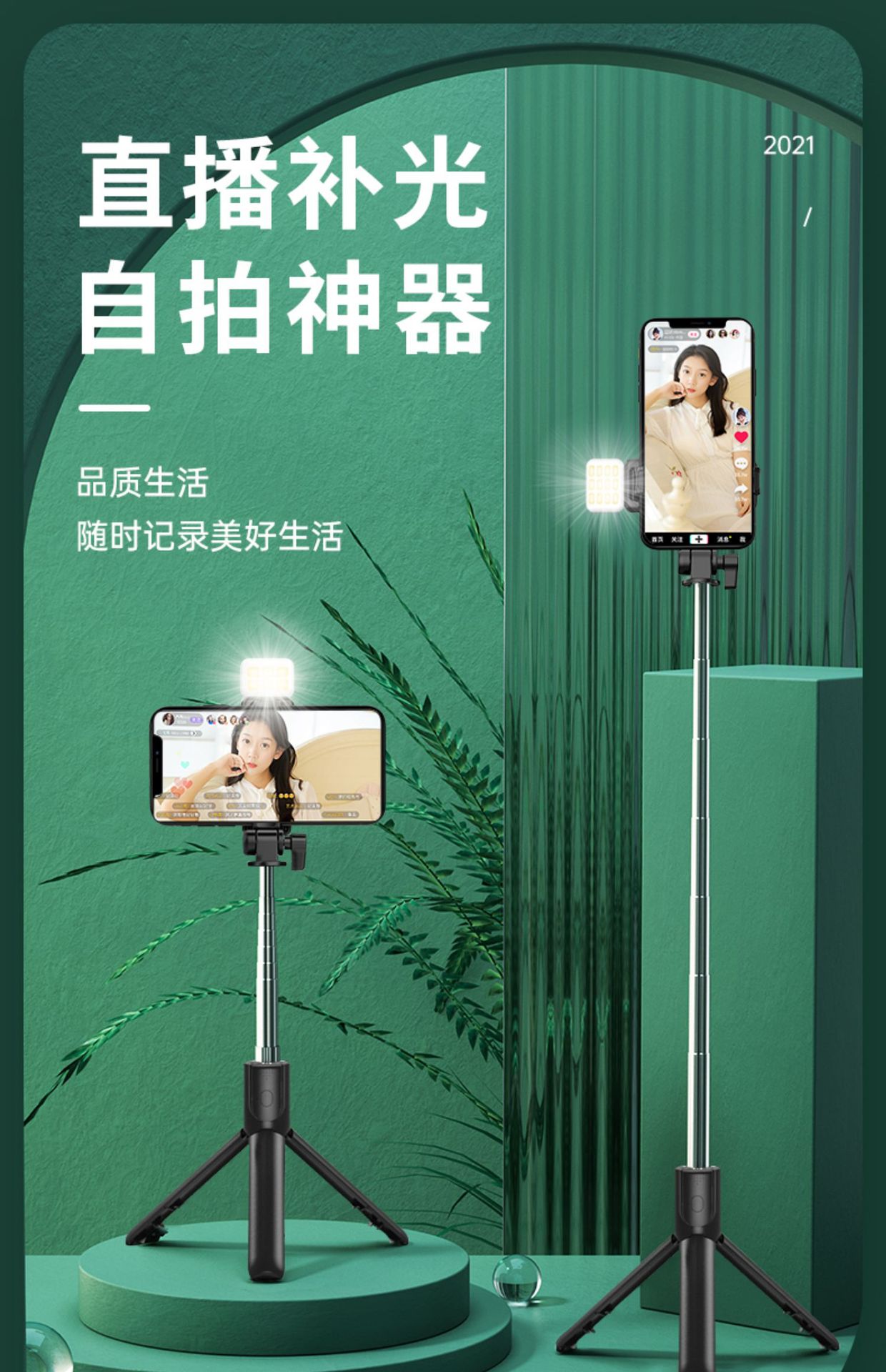 1.7米蓝牙自拍杆三脚架落地手机支架直播拍照神器通用旅游自拍杆
