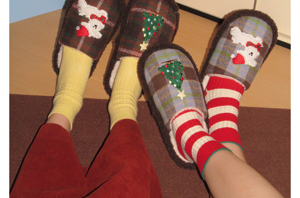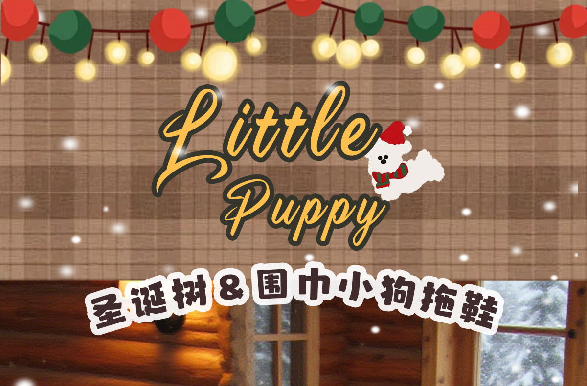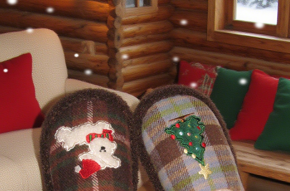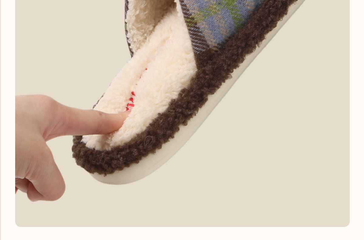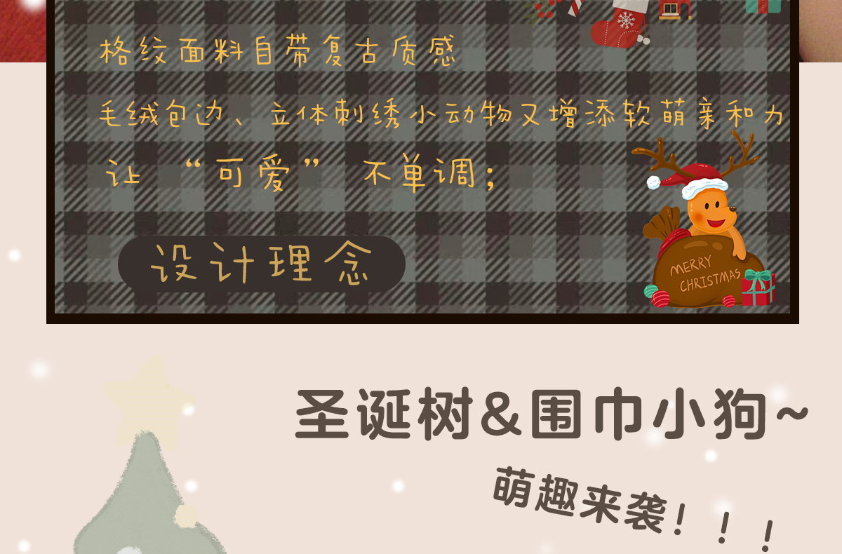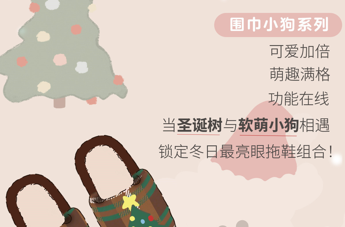 卧室趣味刺绣小狗女士棉拖鞋复古格子居家保暖创意圣诞树毛毛鞋冬