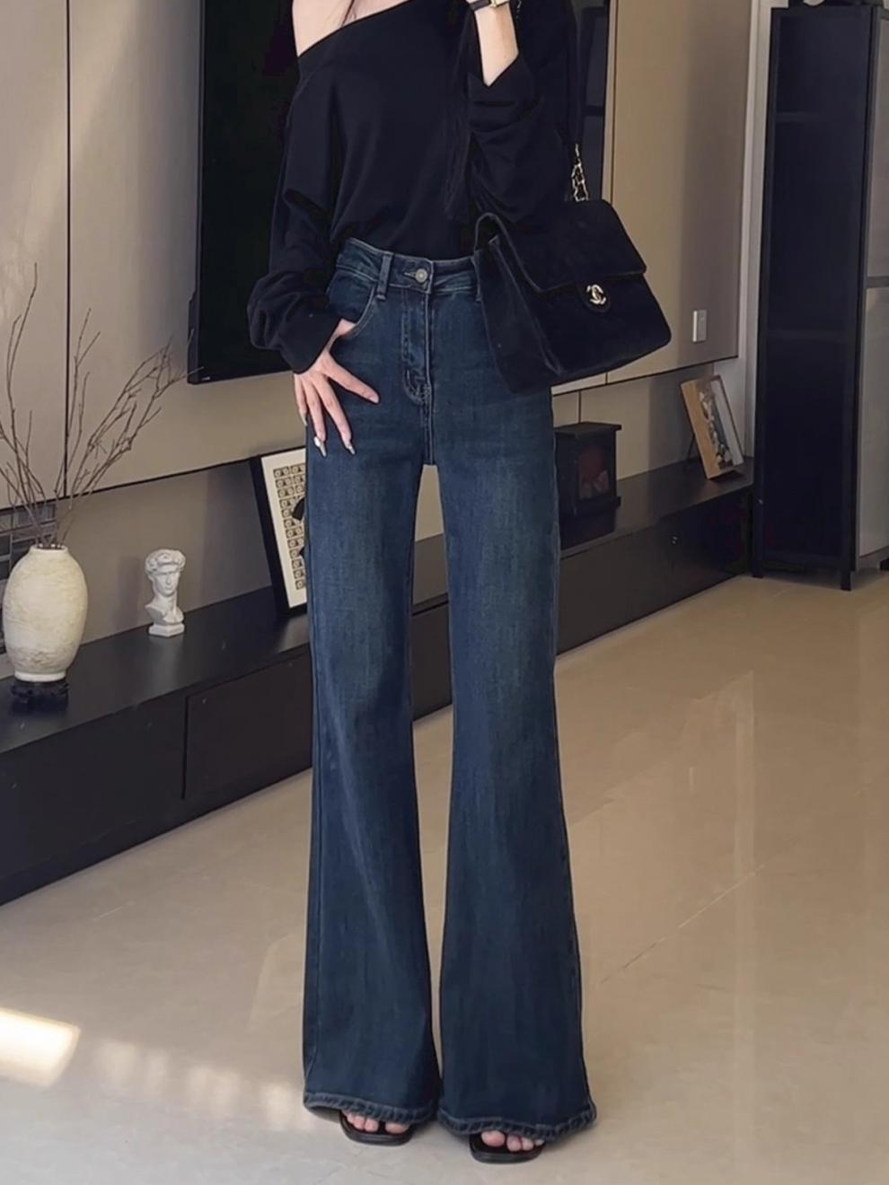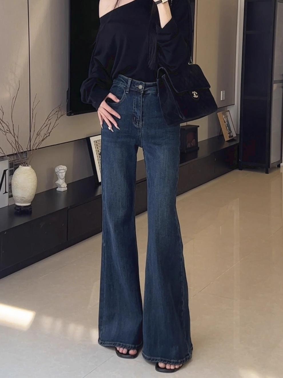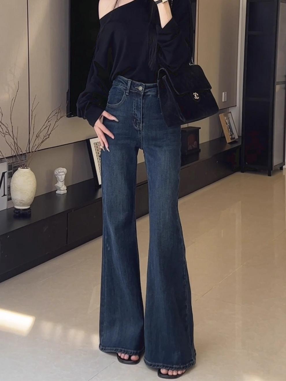复古蓝高腰微喇牛仔裤女2025年秋季新款宽松显瘦不贴腿百搭喇叭裤