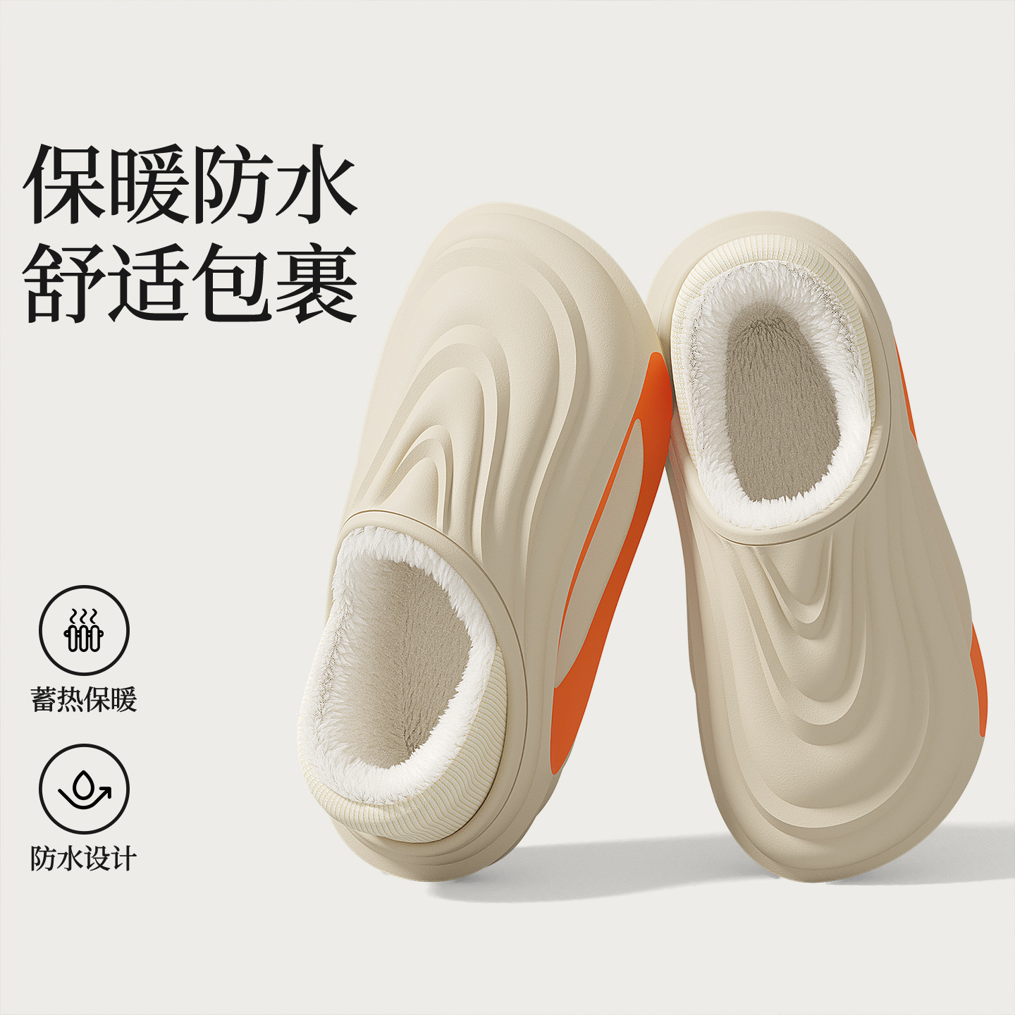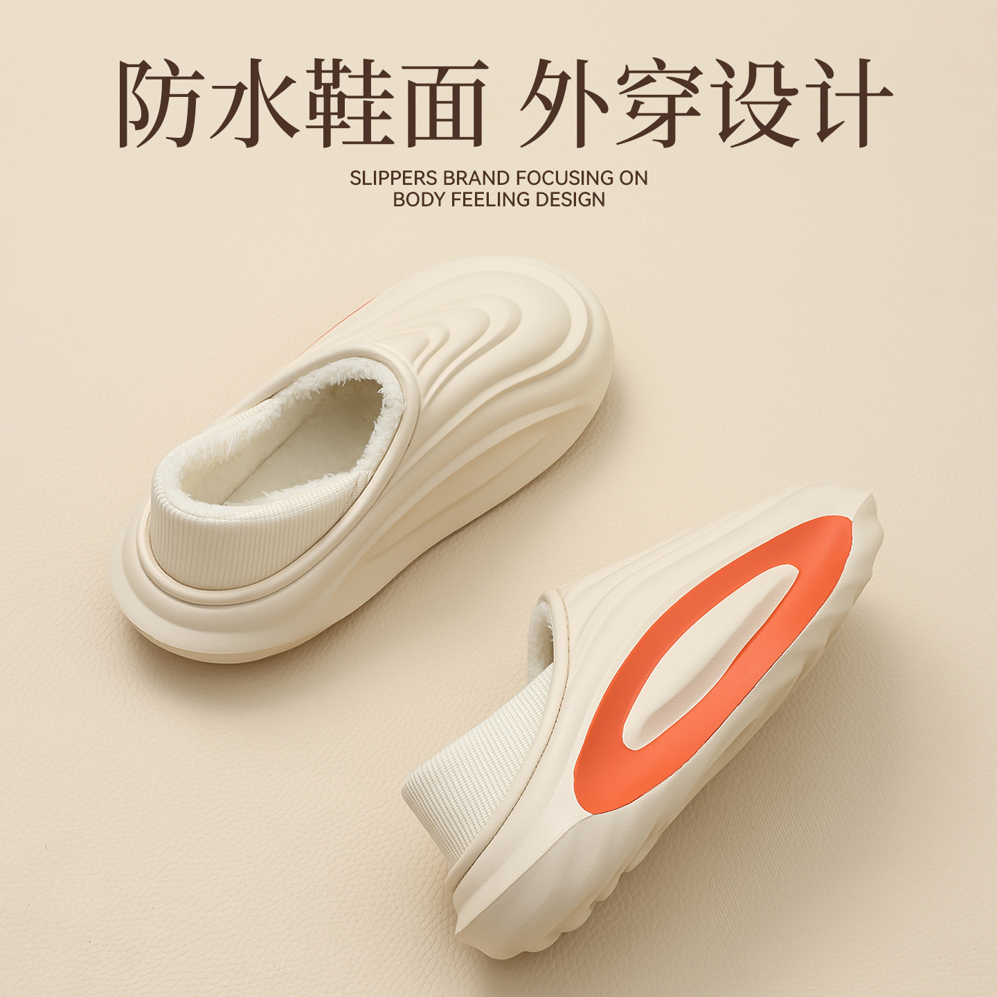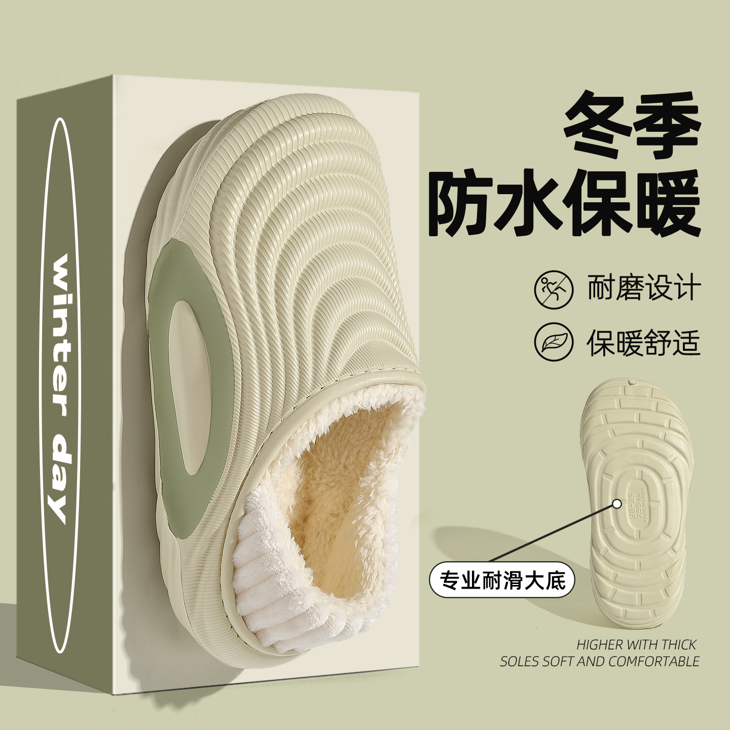 防水包跟棉拖鞋男士冬季新款防滑厚底居家保暖加绒外穿棉拖女批发