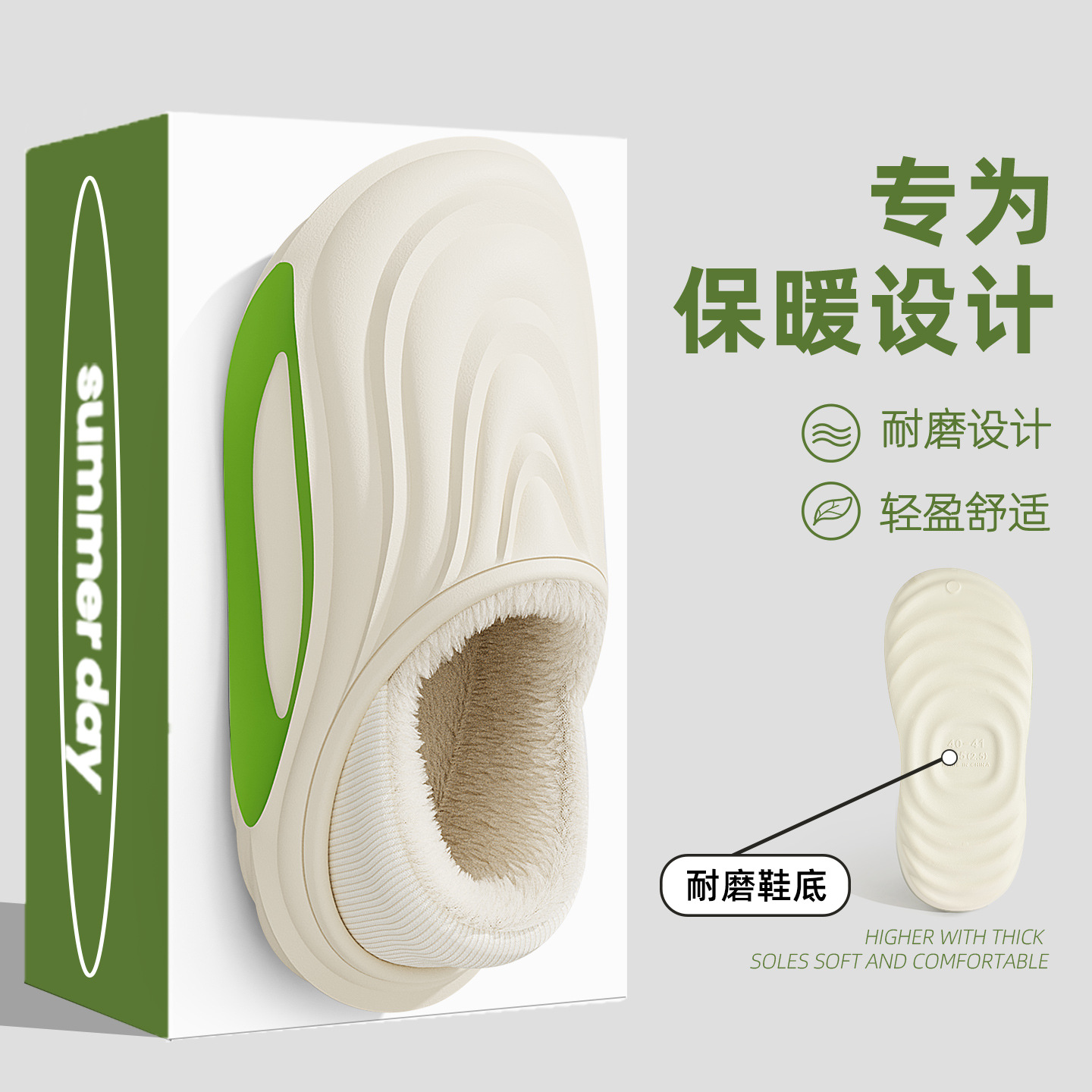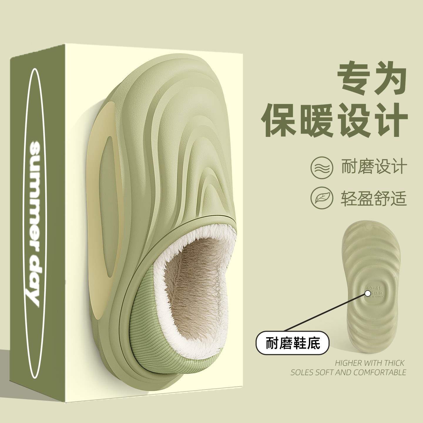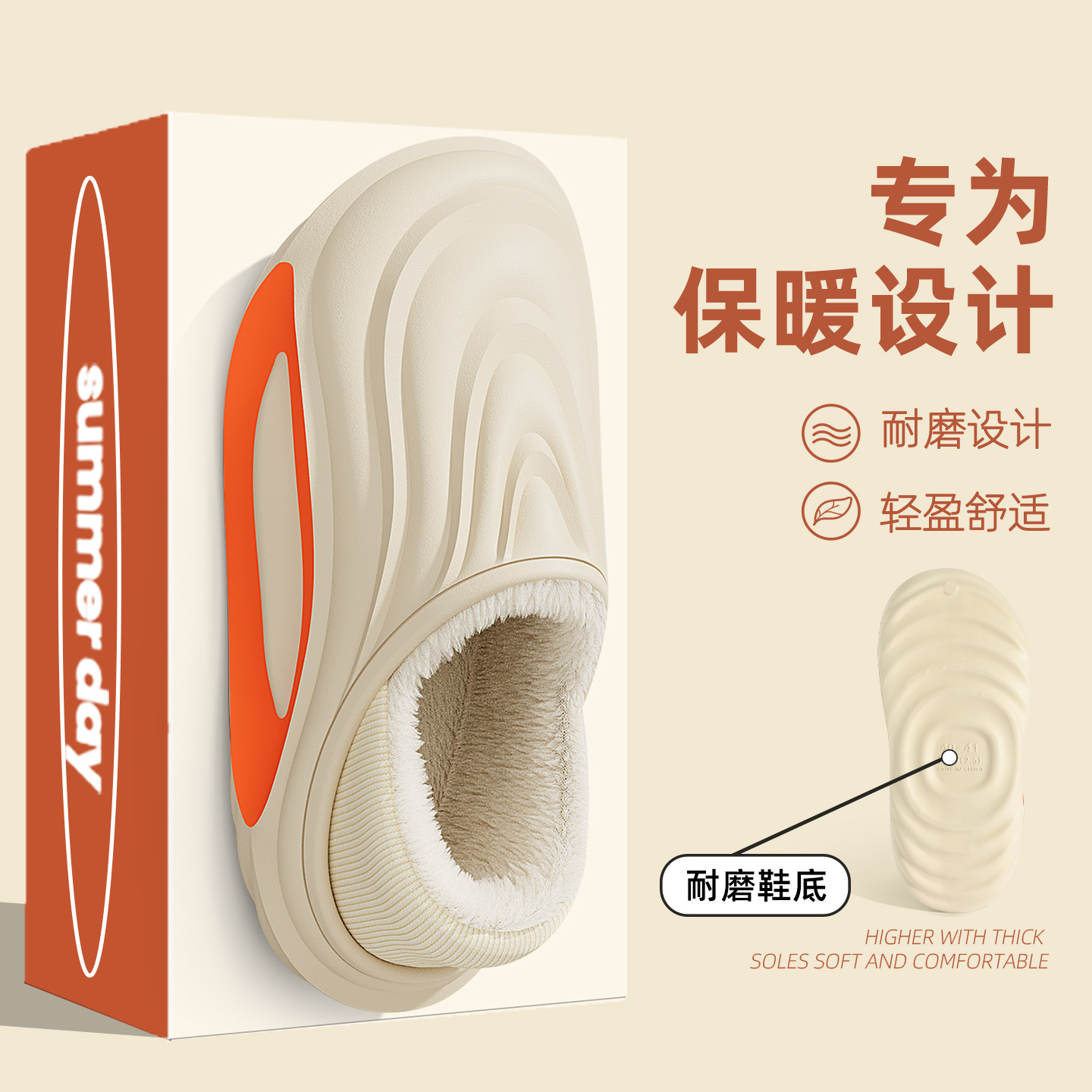防水包跟棉拖鞋男士冬季新款防滑厚底居家保暖加绒外穿棉拖女批发