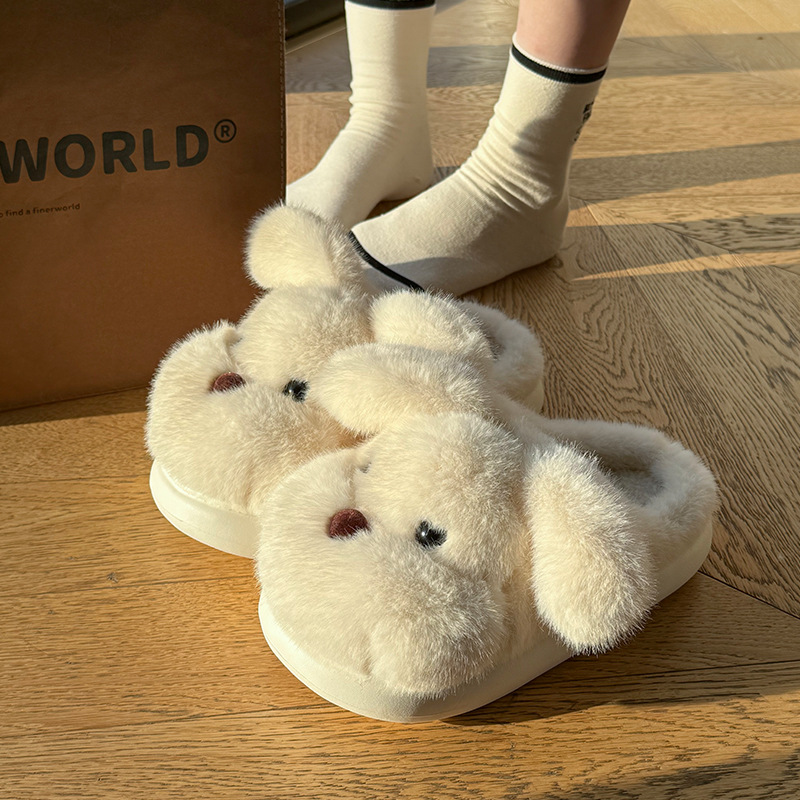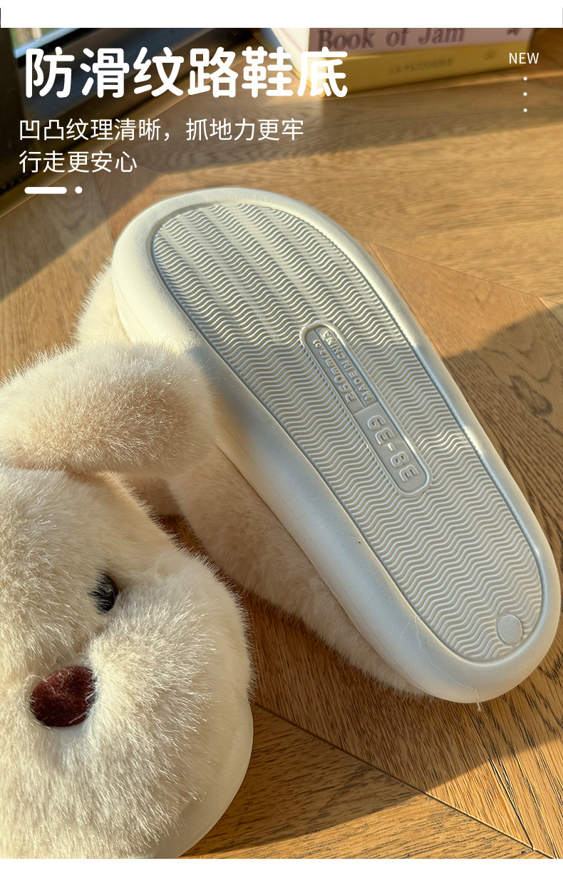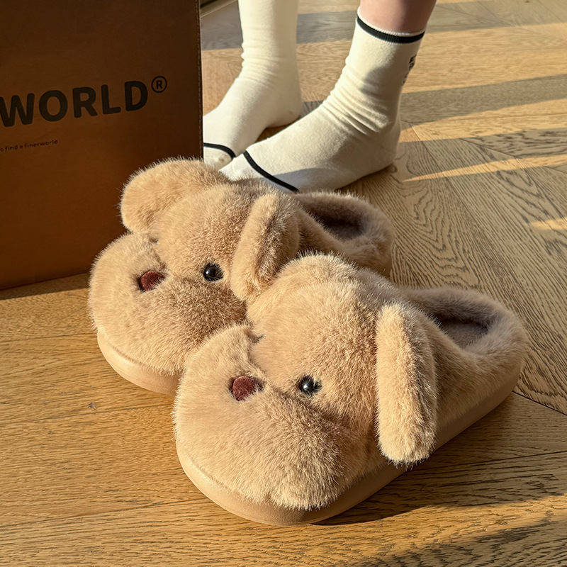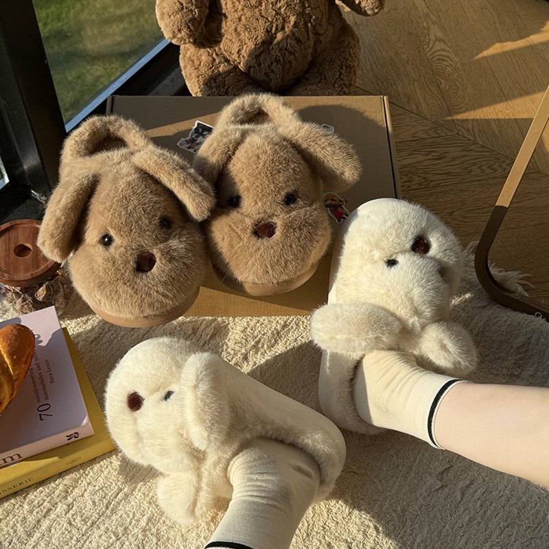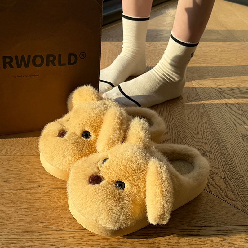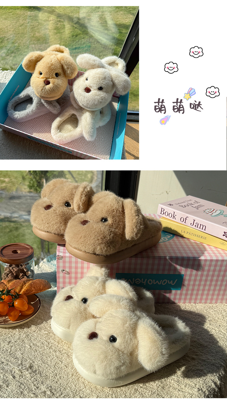 毛绒小狗棉拖鞋女秋冬季情侣加绒厚底居家室内保暖防滑毛毛拖鞋男