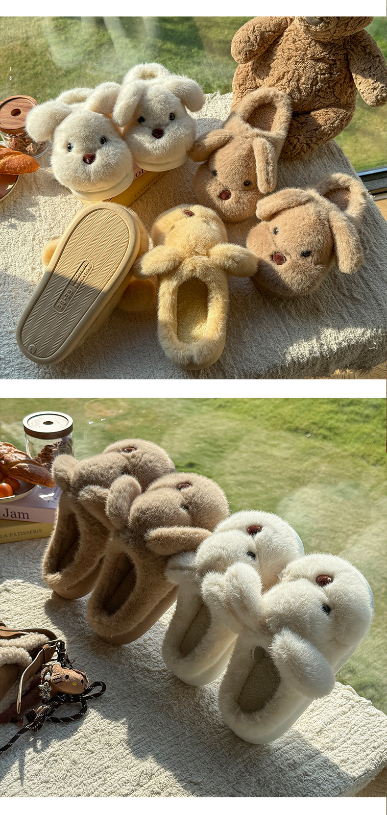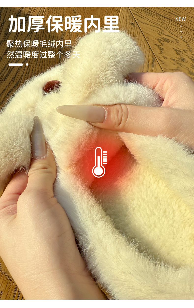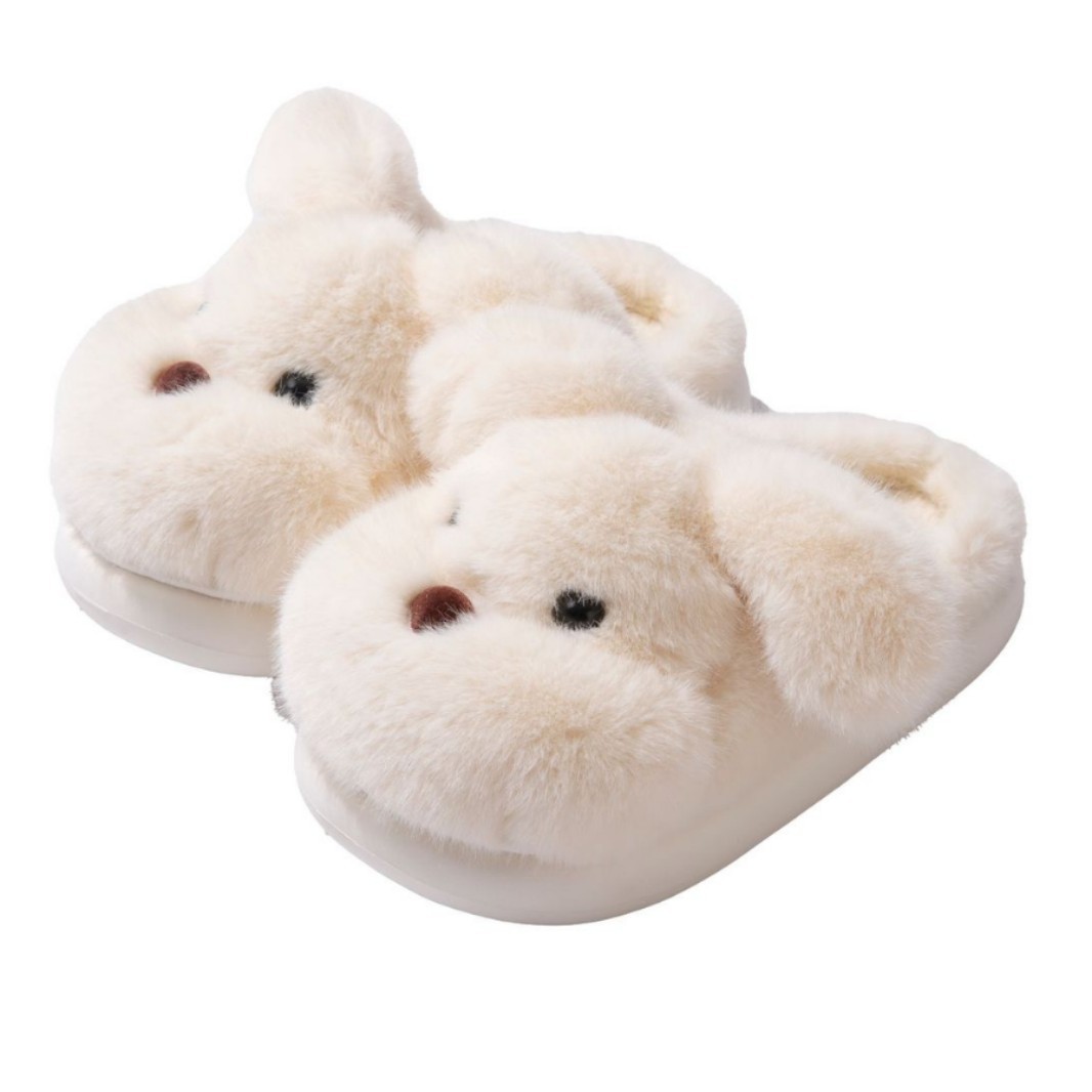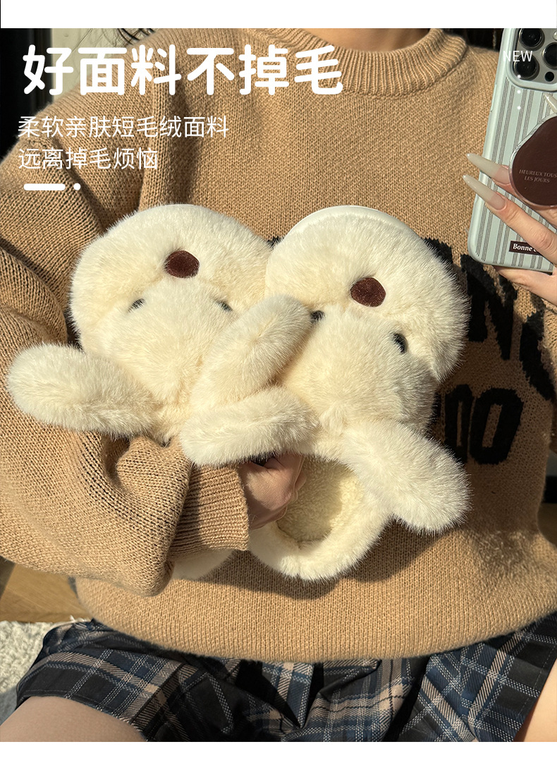 毛绒小狗棉拖鞋女秋冬季情侣加绒厚底居家室内保暖防滑毛毛拖鞋男