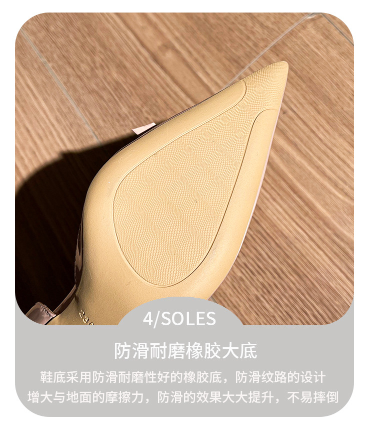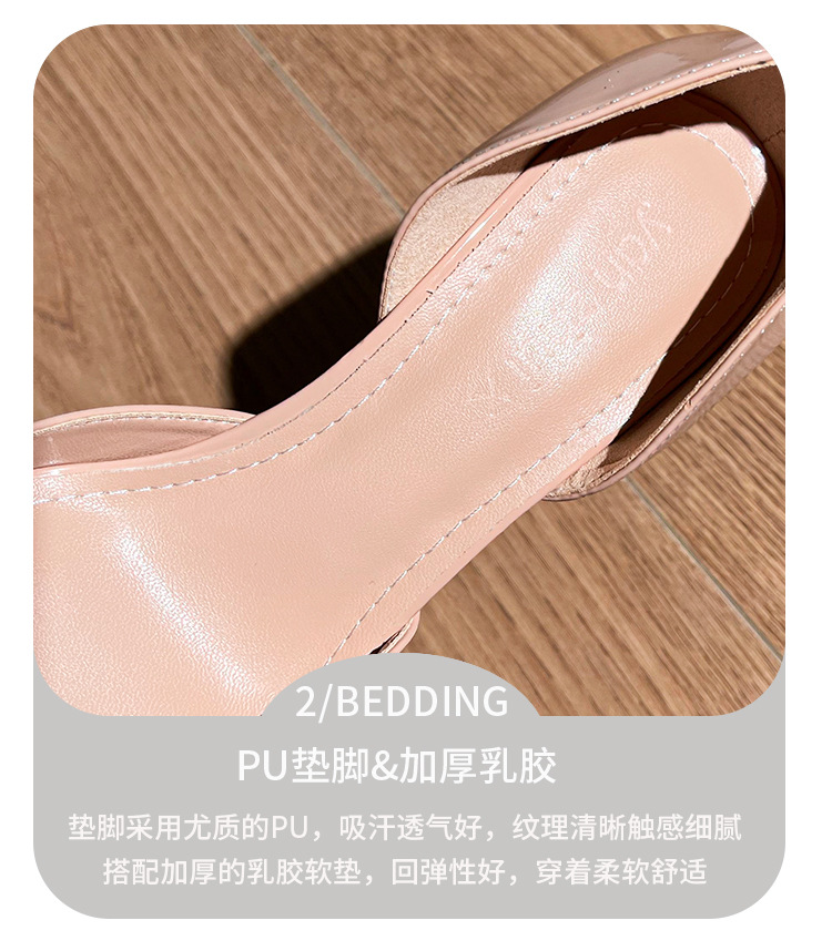 2025秋季新款高跟鞋细跟尖头漆皮蝴蝶结中空韩版包头夏季女凉鞋