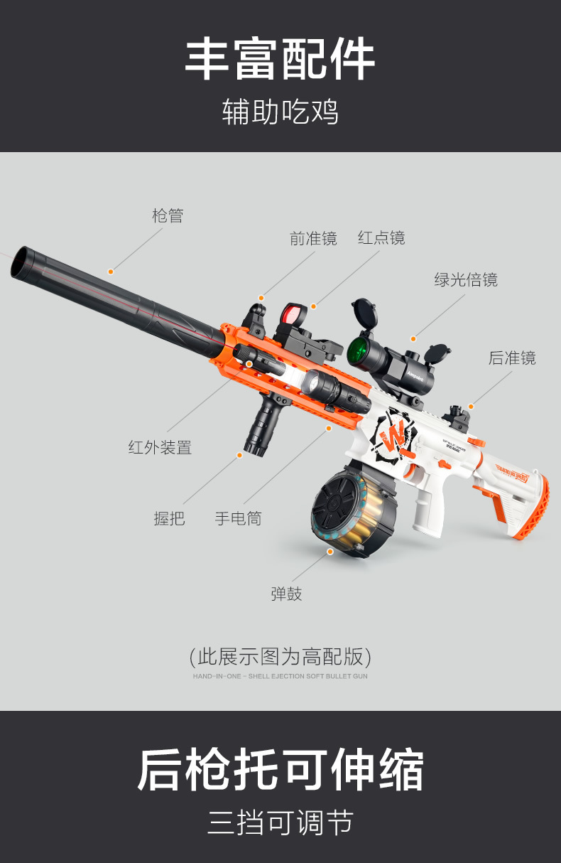 M416抛壳软弹枪儿童电动连发玩具枪手自一体加特林玩具男孩狙击