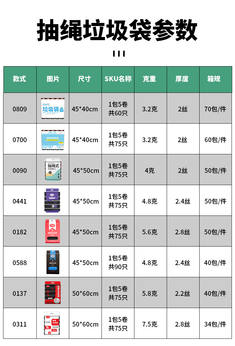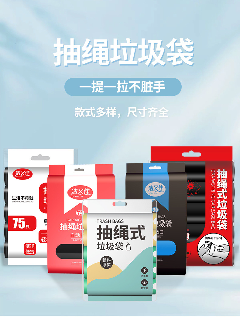 抽绳垃圾袋家用加厚加大号50*60点断厨房自动收口手提塑料袋批发