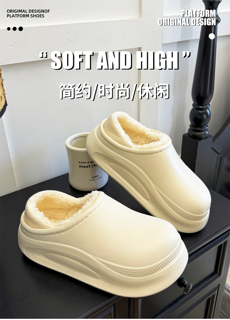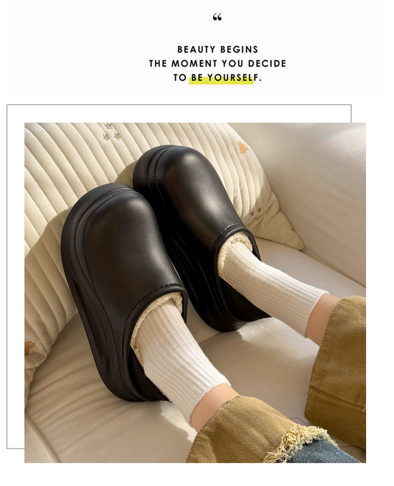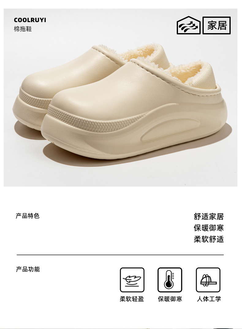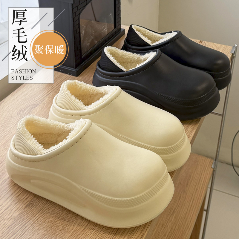 全包跟防水棉拖鞋男秋冬季外穿踩屎感厚底防滑加绒保暖毛绒棉鞋女