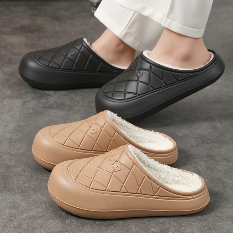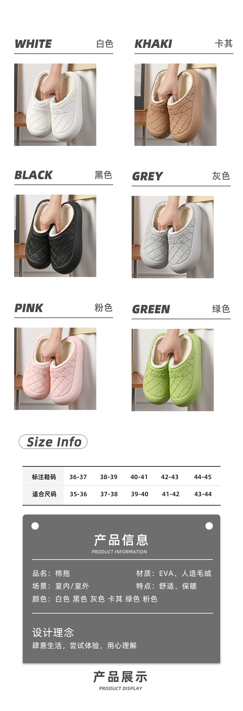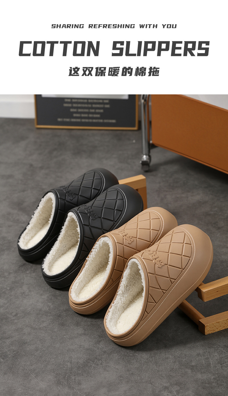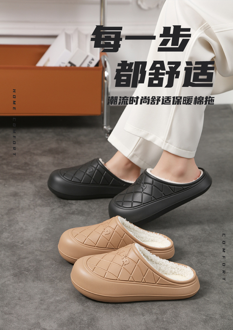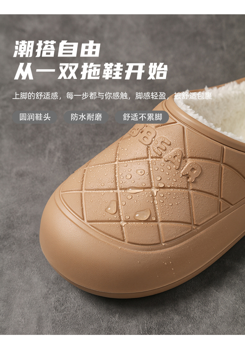 防水棉拖鞋家居室内保暖月子鞋女秋冬季包跟情侣外穿踩屎感棉鞋男