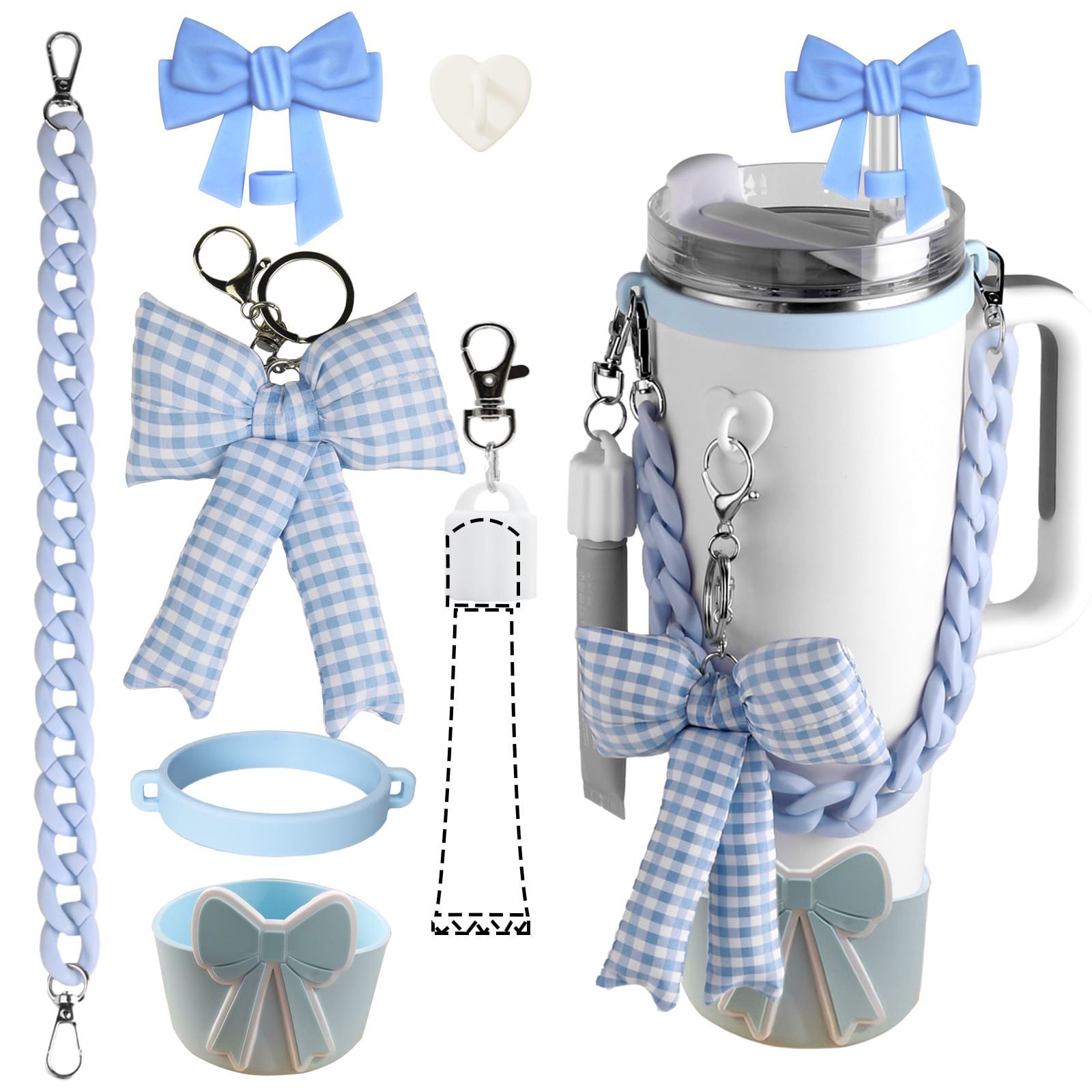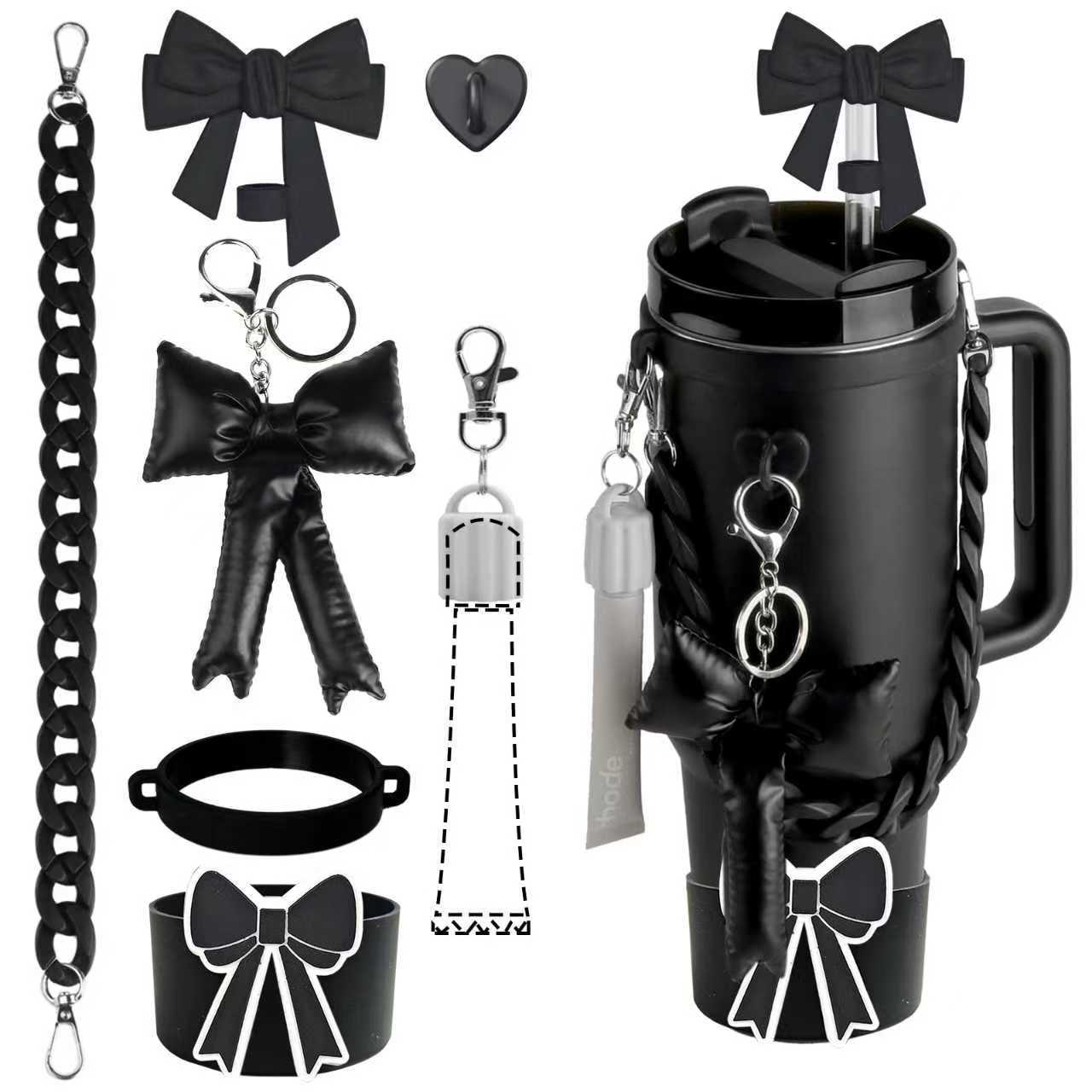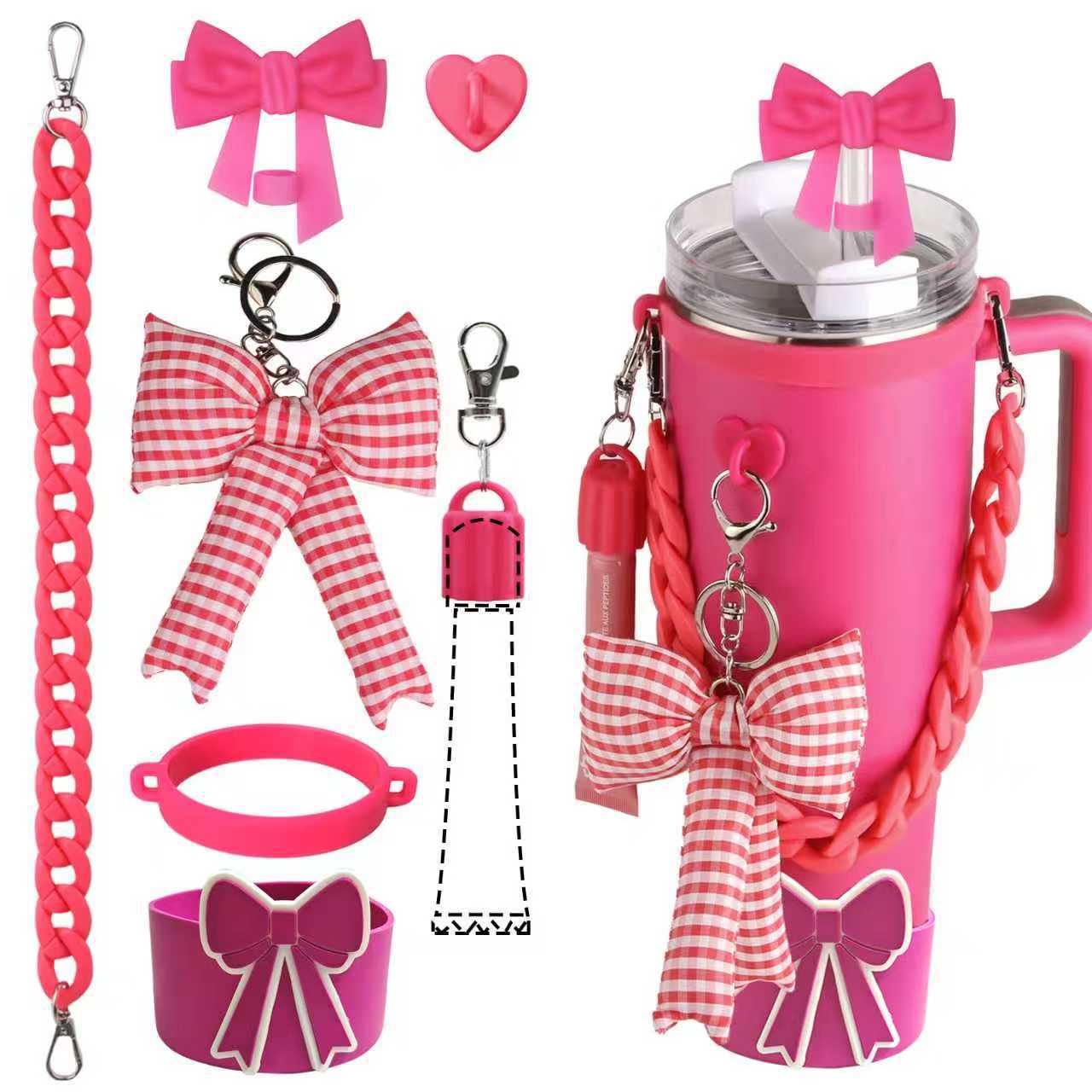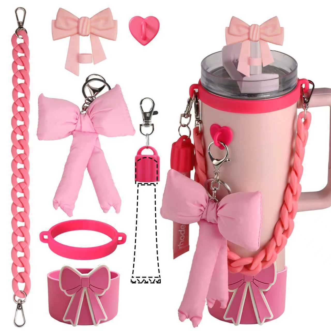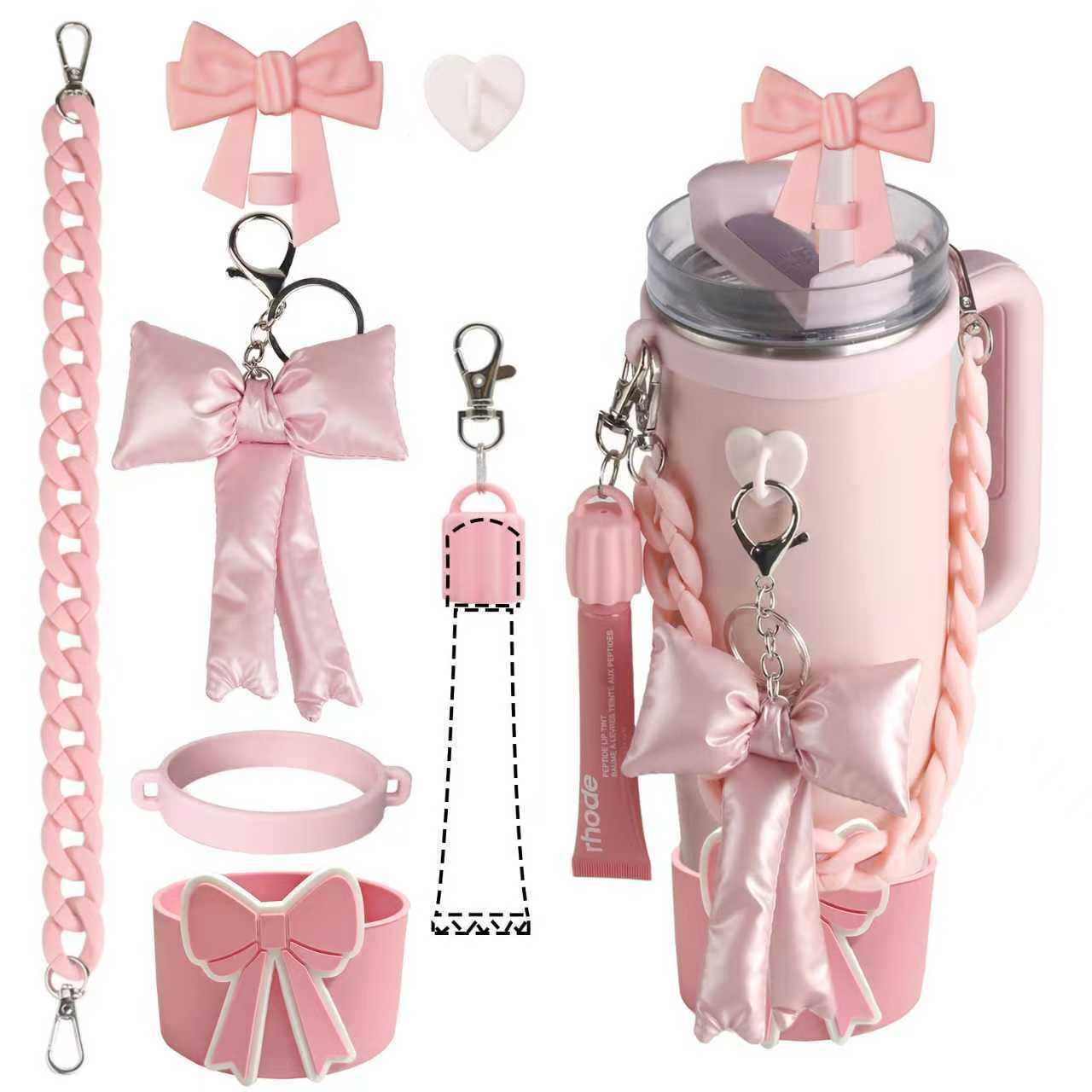 爆款Stanley水杯配件防摔杯套充棉蝴蝶结挂件吸管帽亚克力手提绳