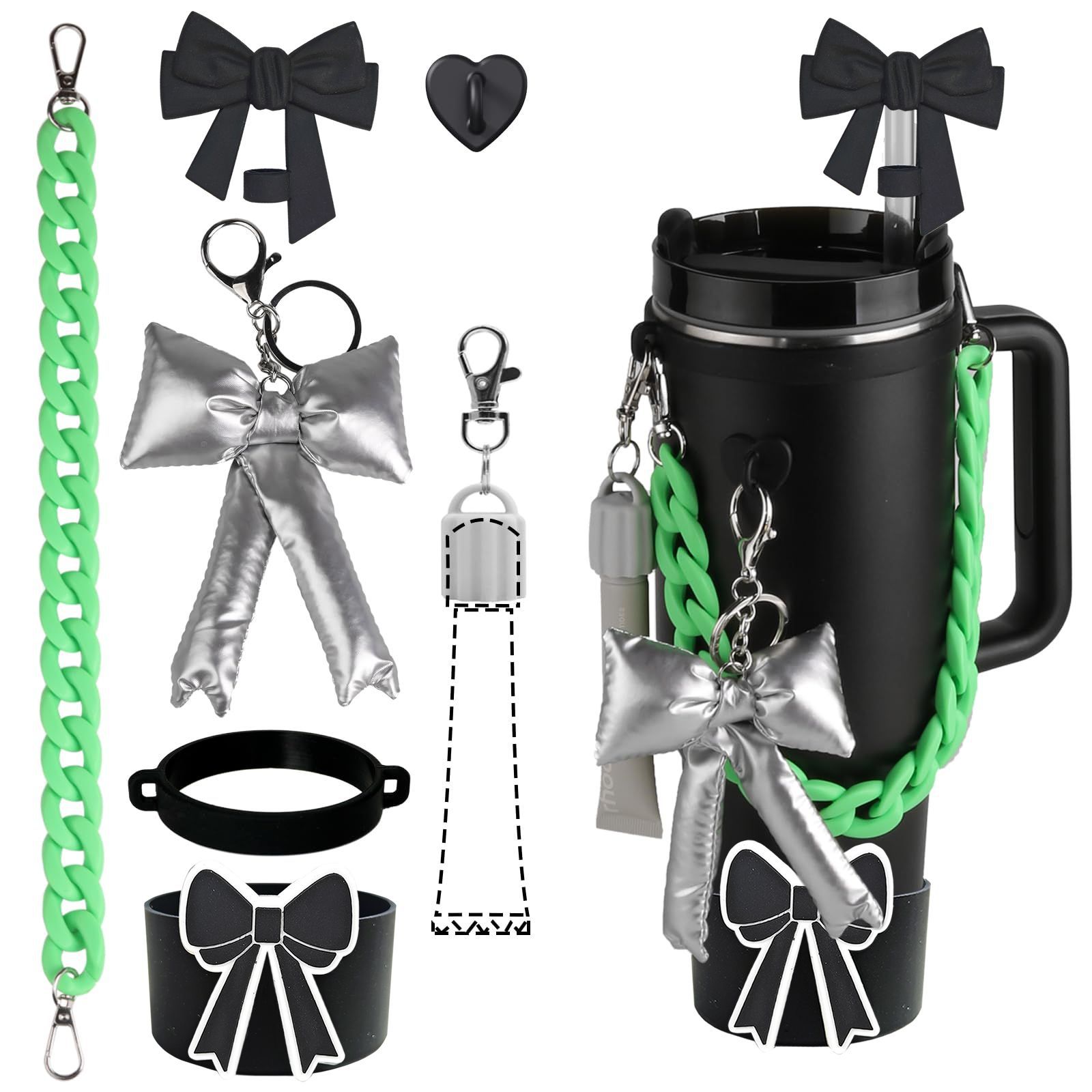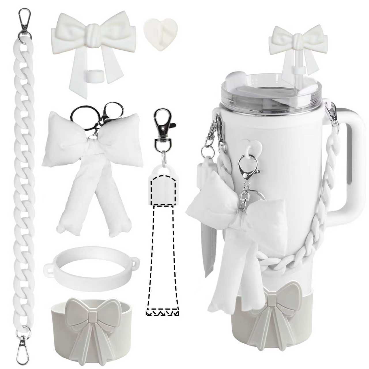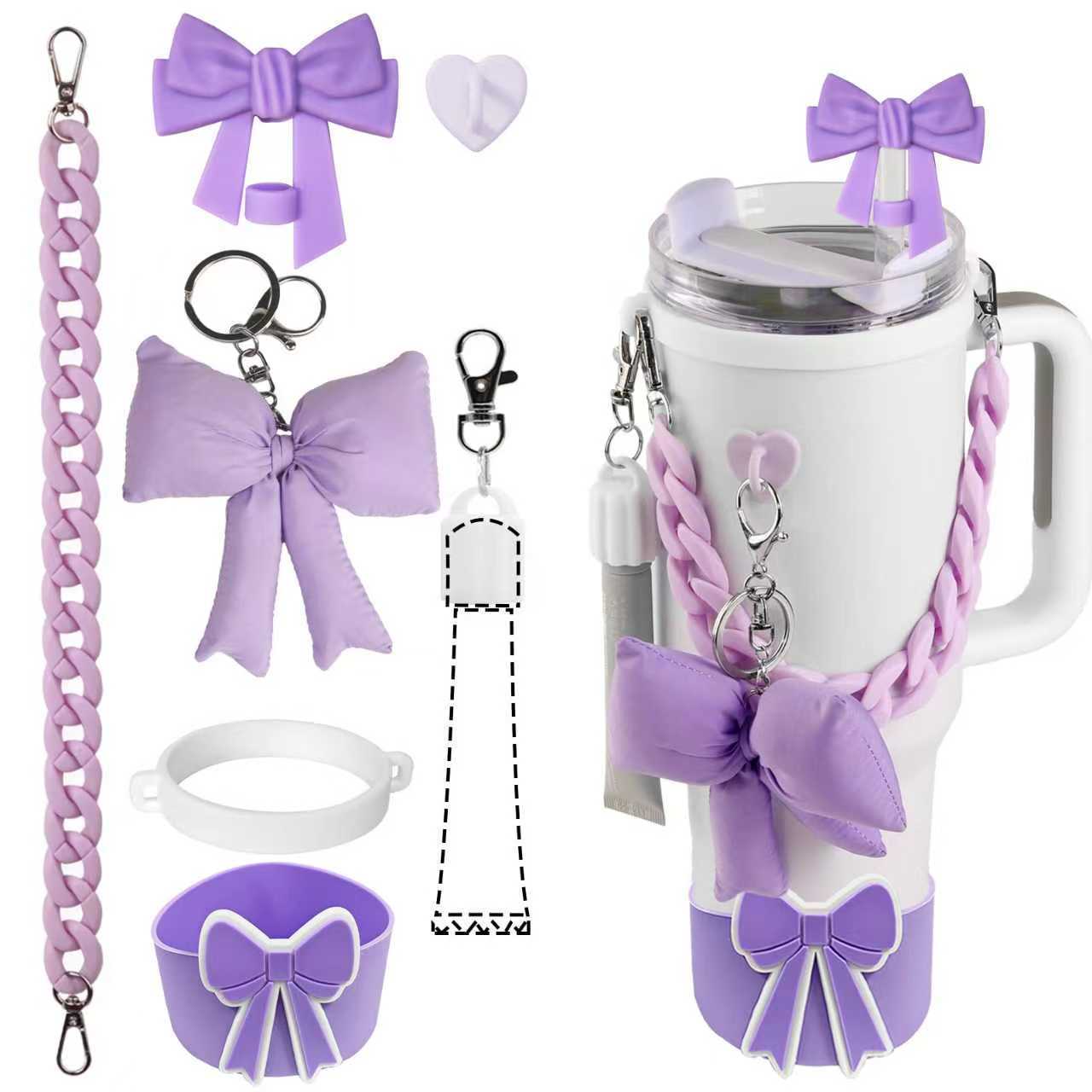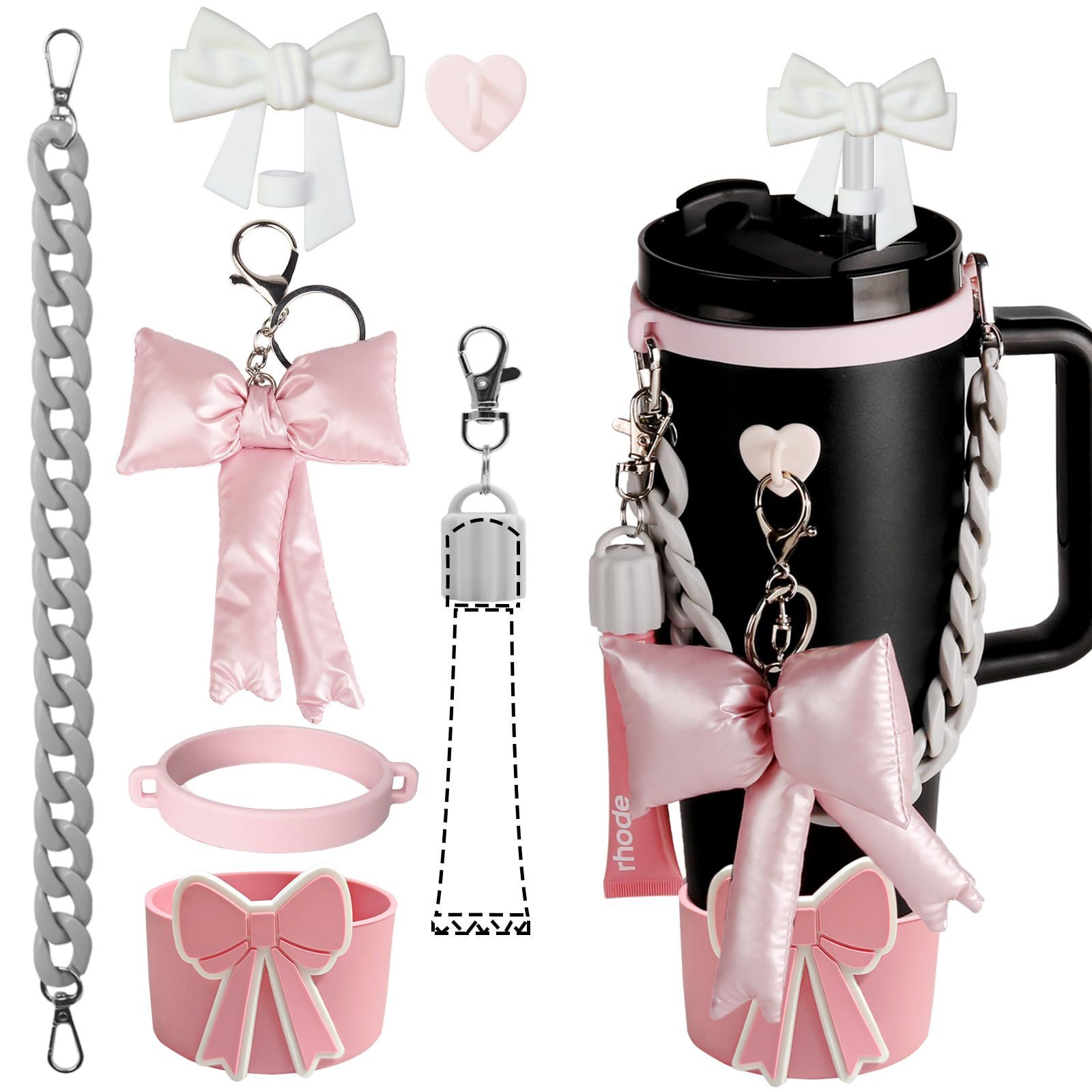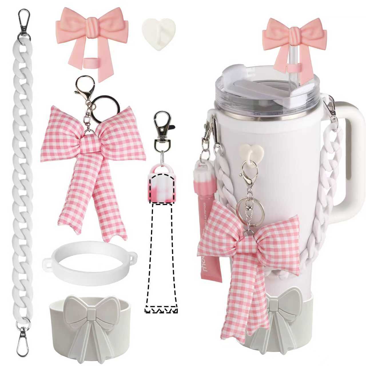爆款Stanley水杯配件防摔杯套充棉蝴蝶结挂件吸管帽亚克力手提绳