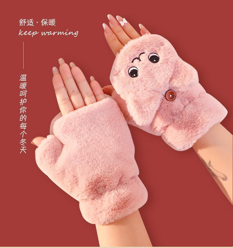 猫爪手套女冬季可爱2025爪猫咪防寒半指翻盖加绒毛绒保暖卡通学生