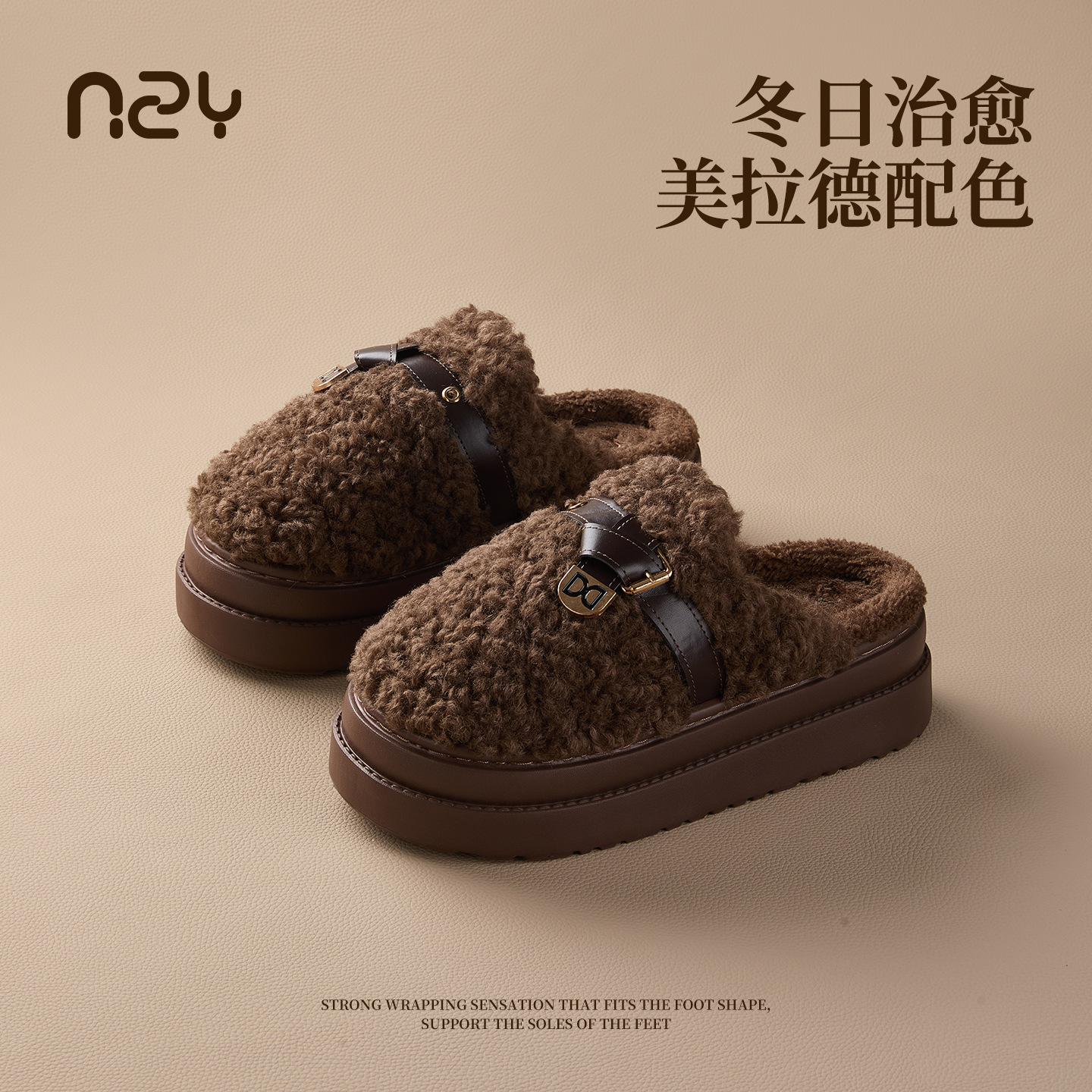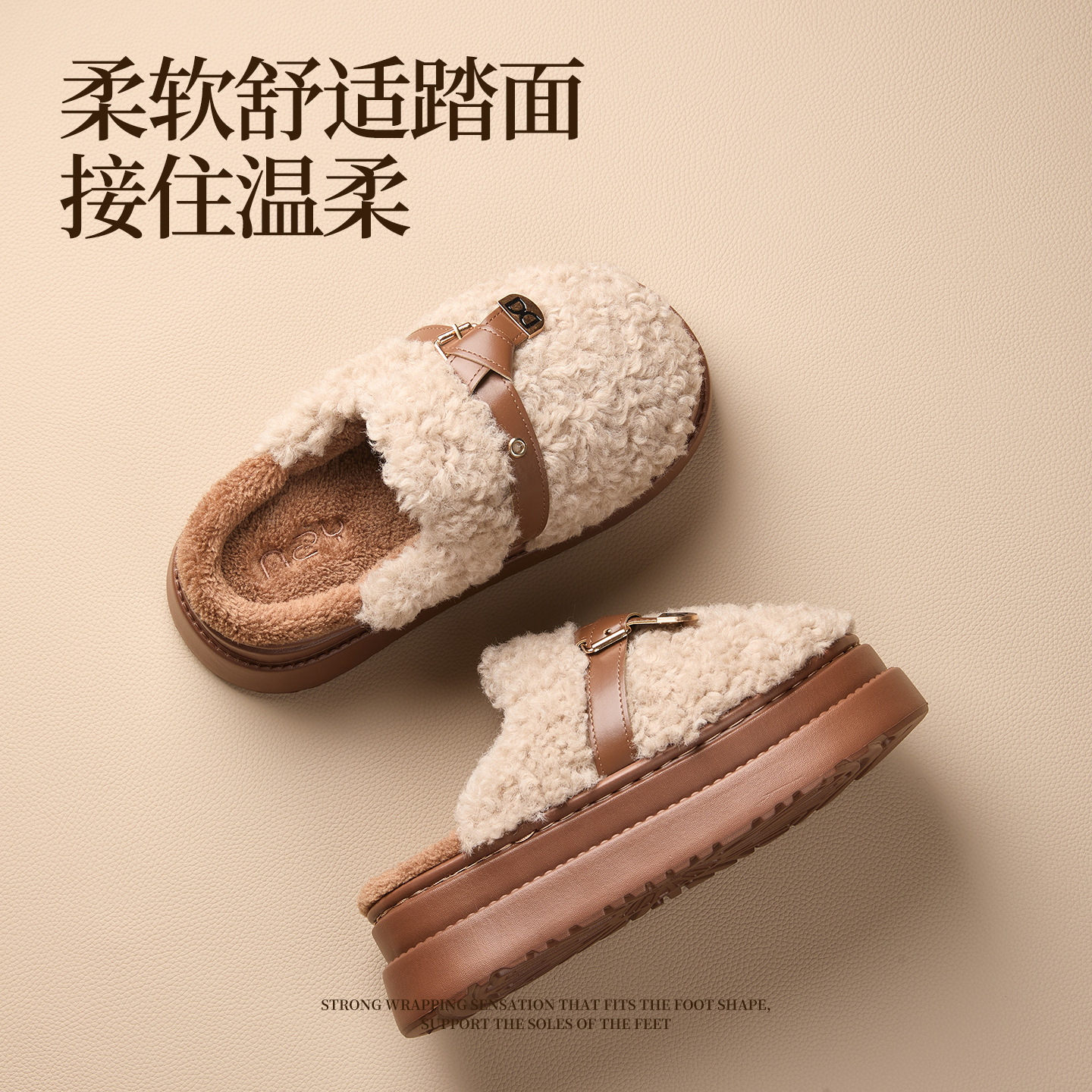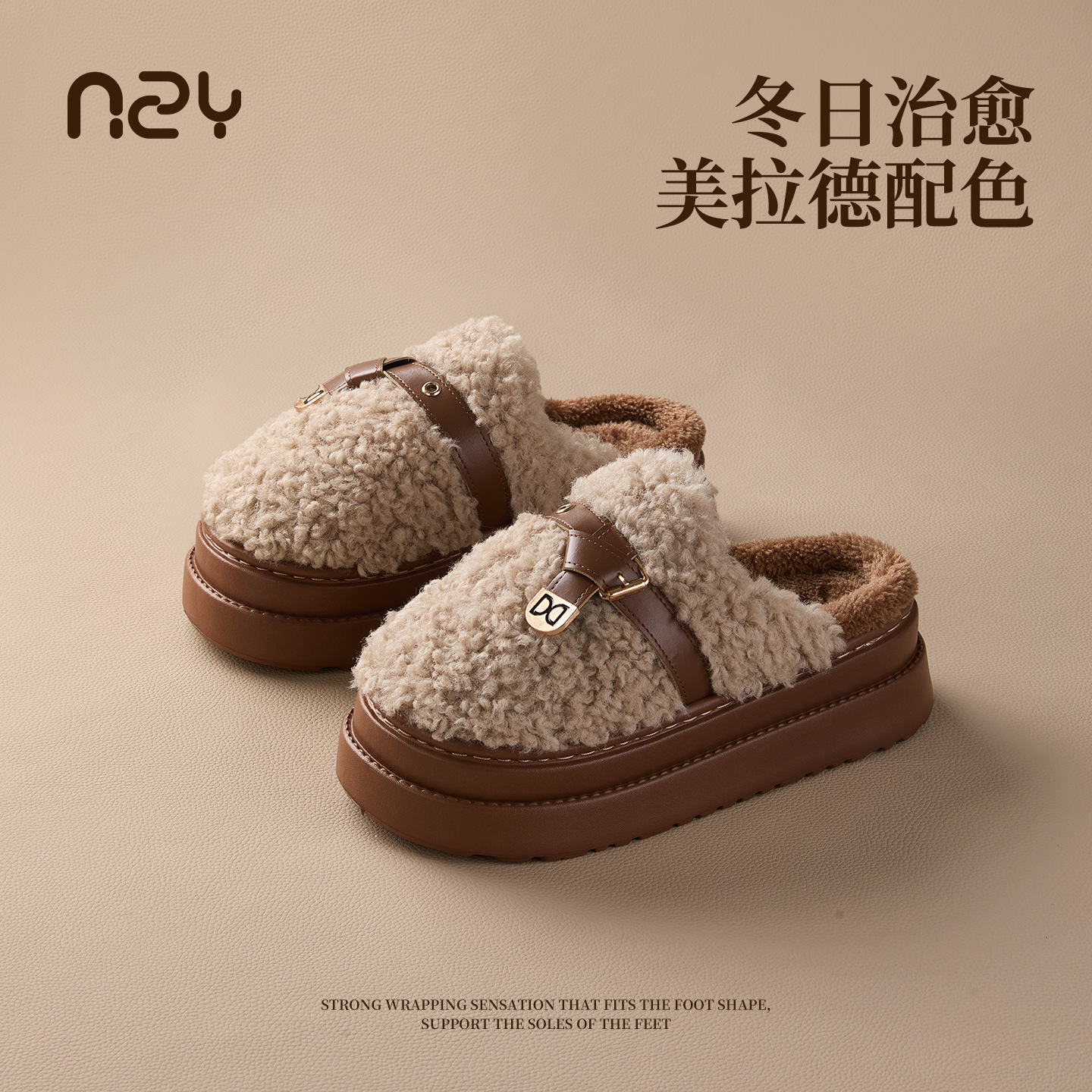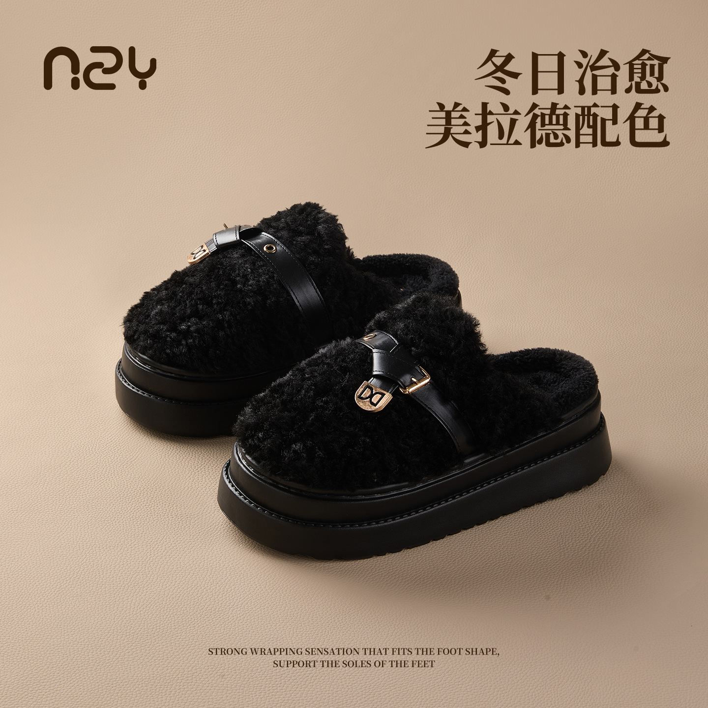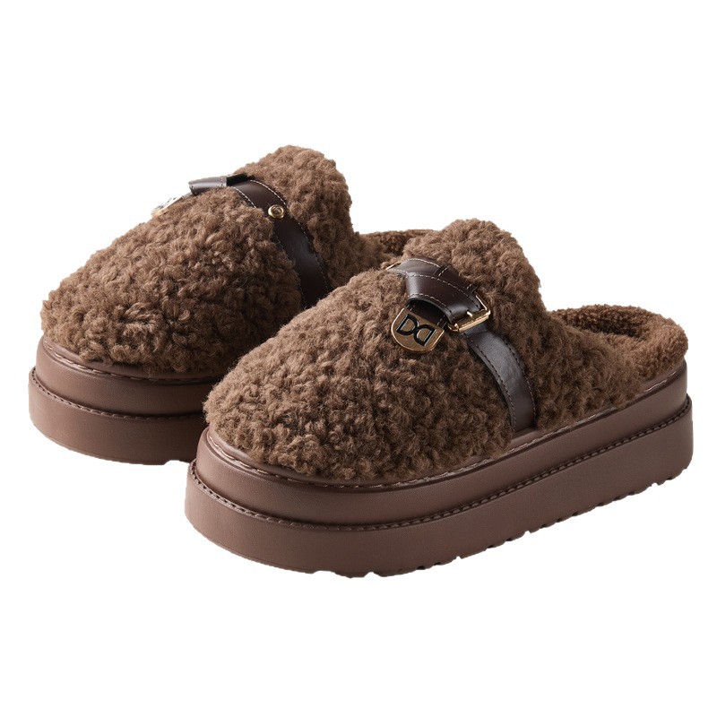 奇丹鞋厂棉拖鞋女秋冬季新款厚底居家踩屎感防滑加绒保暖毛毛棉拖