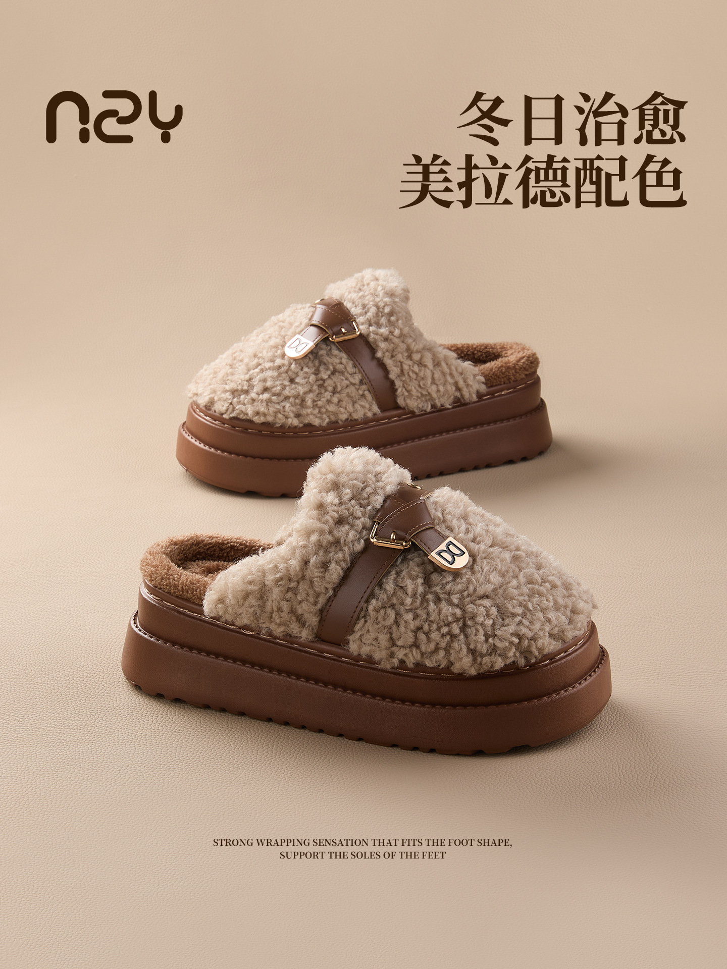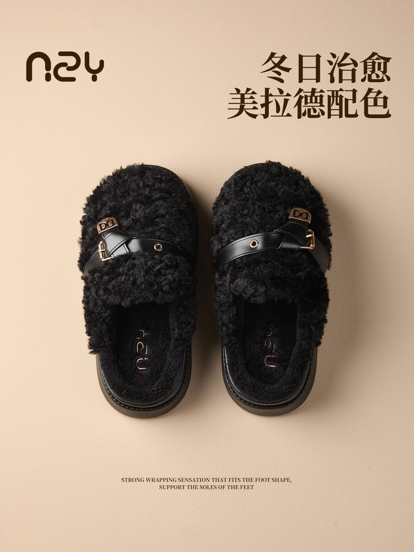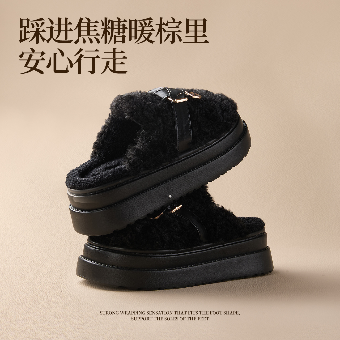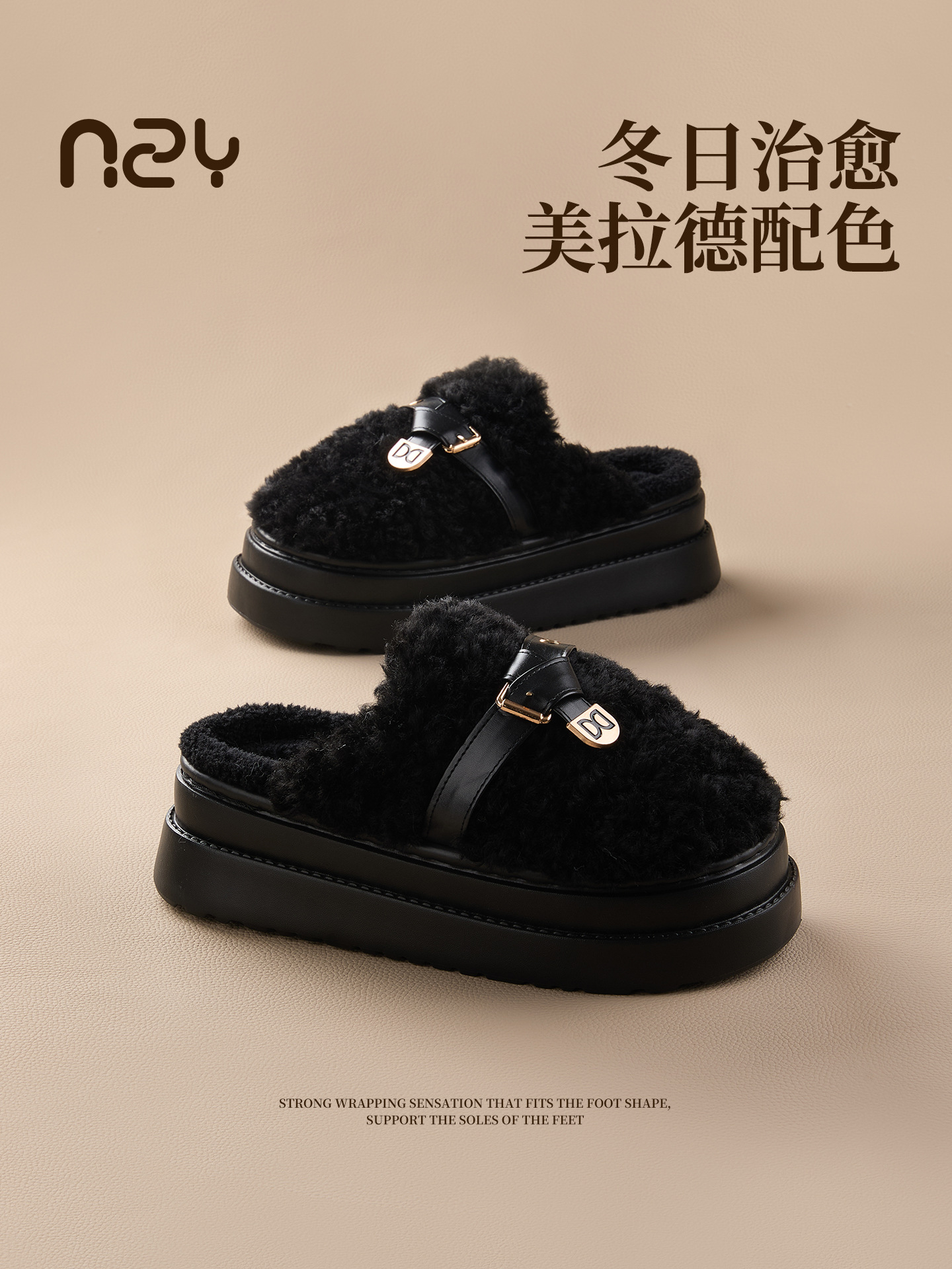 奇丹鞋厂棉拖鞋女秋冬季新款厚底居家踩屎感防滑加绒保暖毛毛棉拖