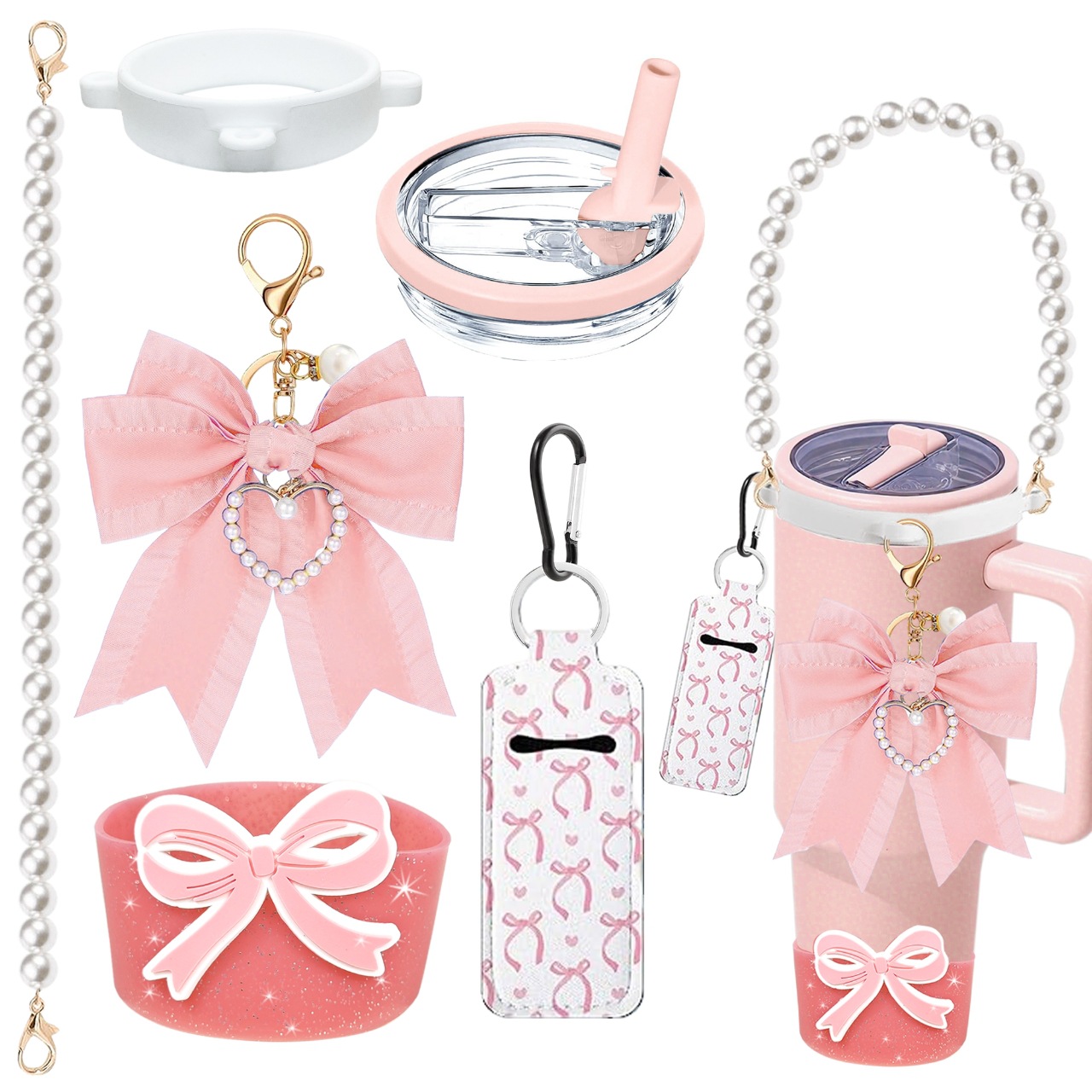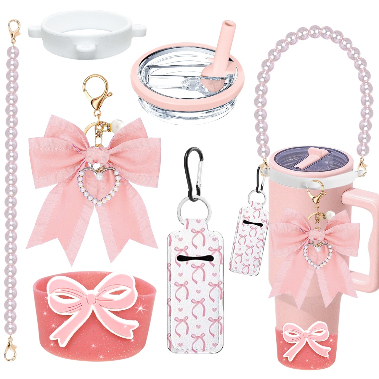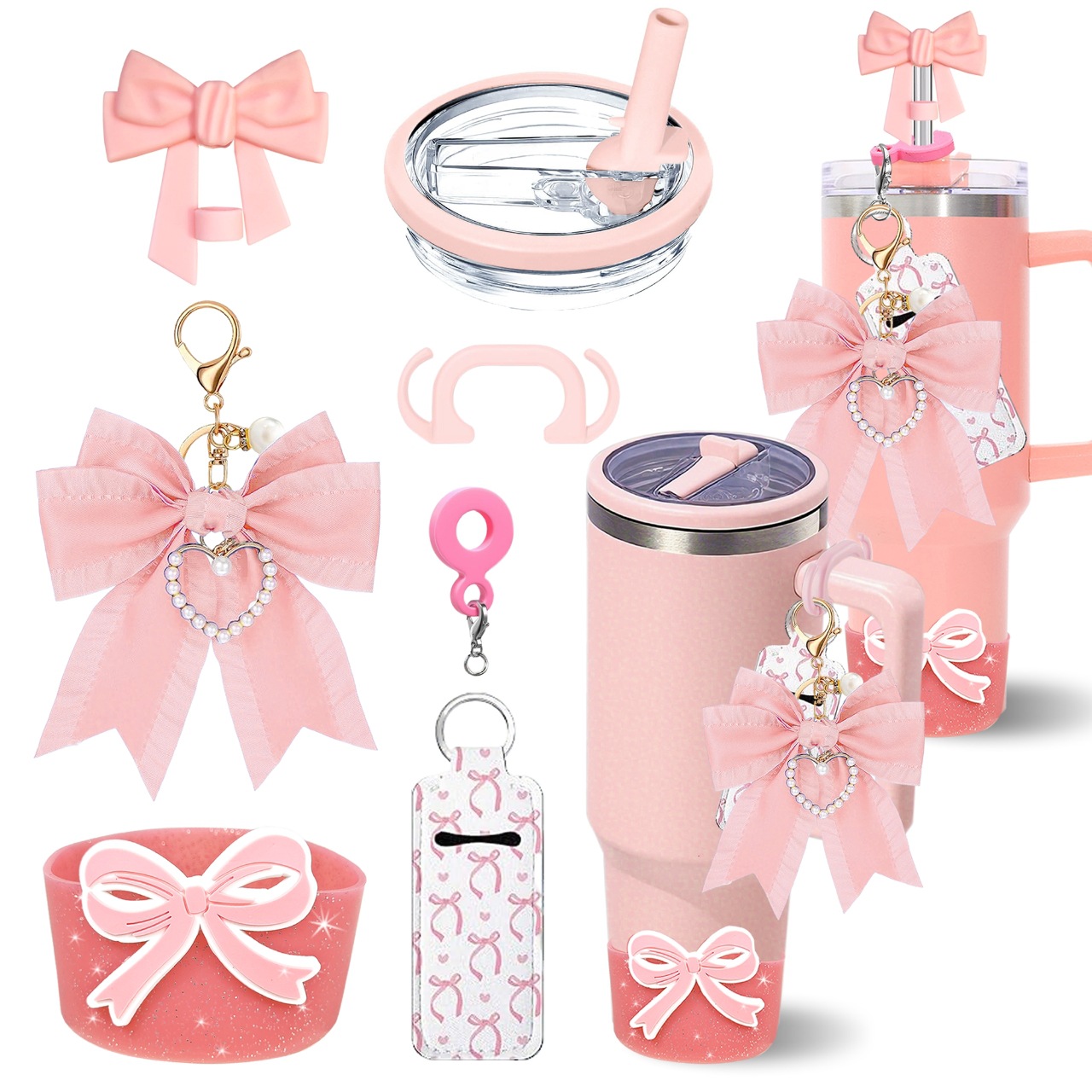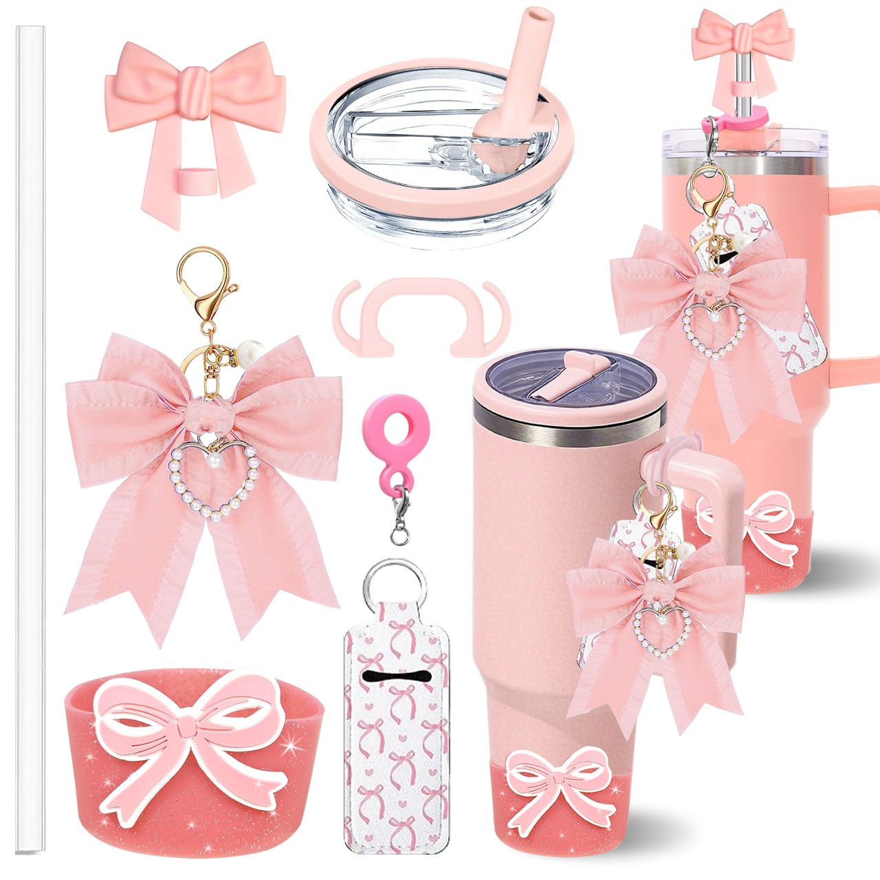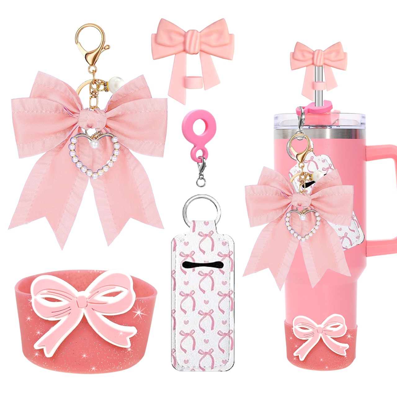 Stanley杯蝴蝶结吸管帽褶皱丝带蝴蝶结爱心汽车钥匙扣手提绳杯套