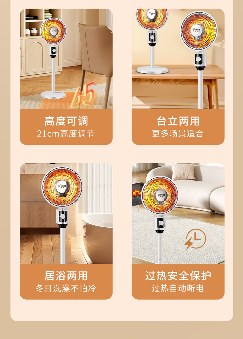 扬子小太阳取暖器家用客厅电热器速热客厅台地两用加热器烤火炉