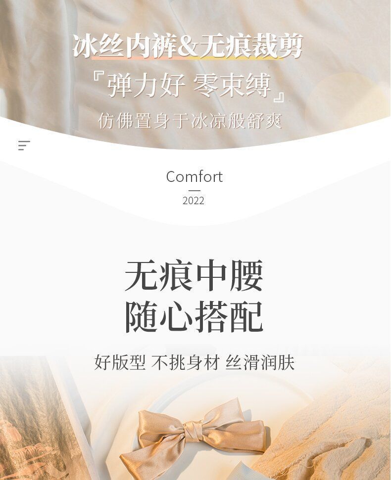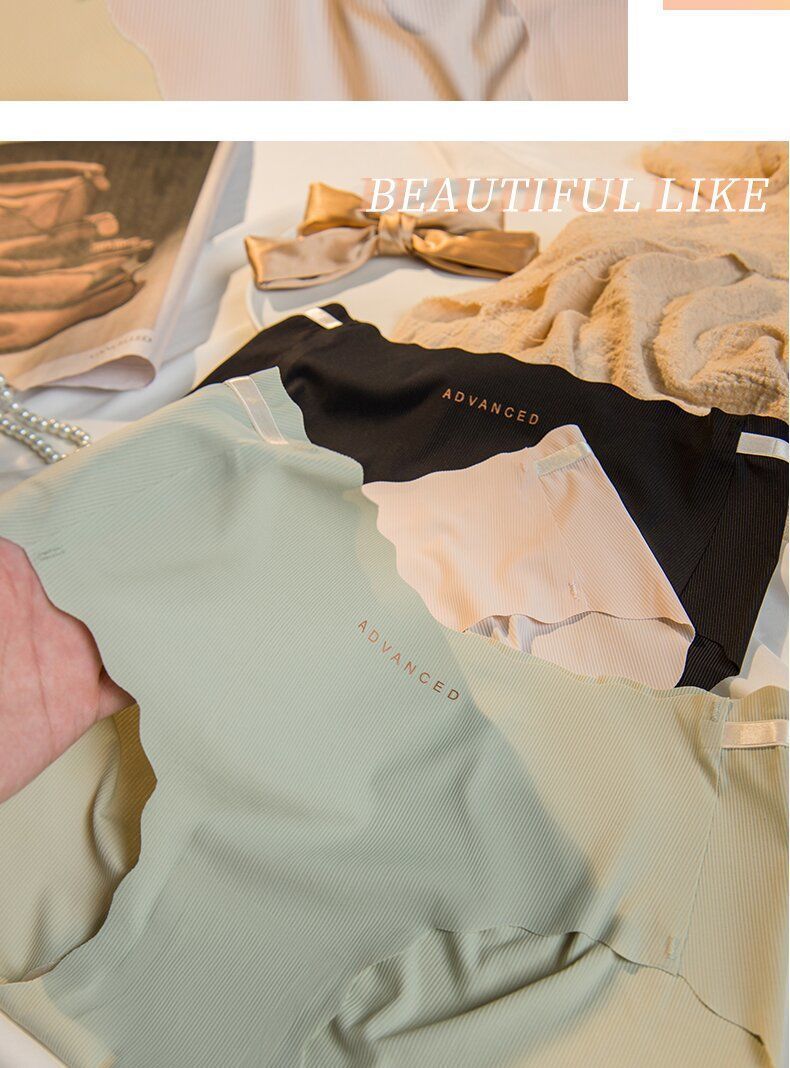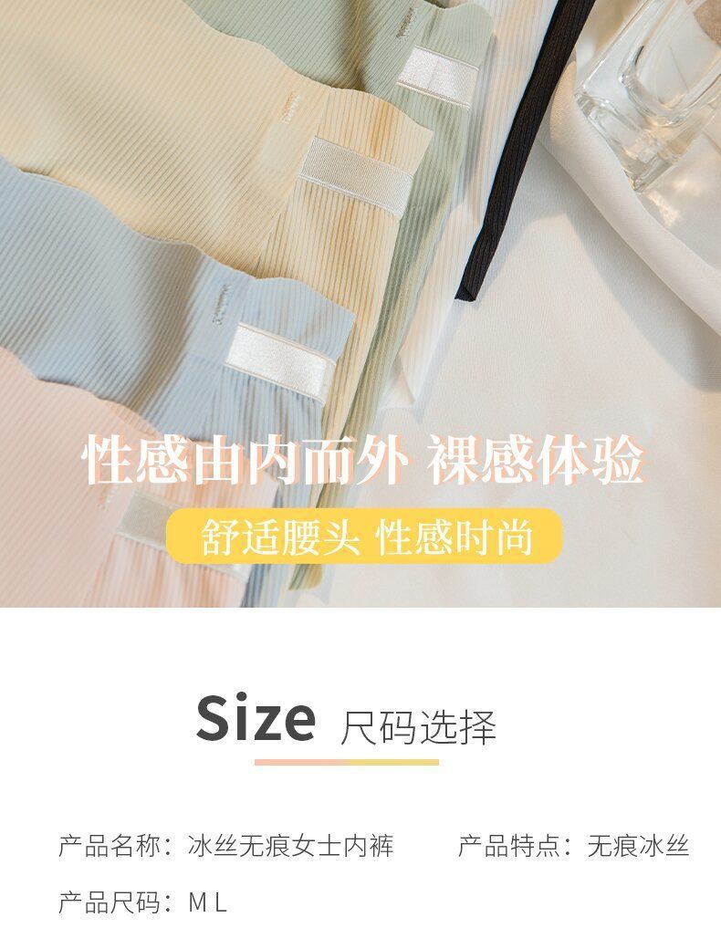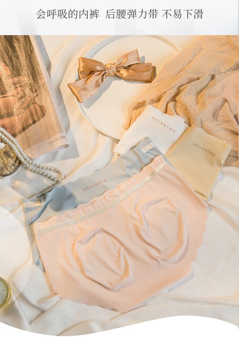 网红直播爆款冰丝无痕内裤中腰薄款甜美少女蜜桃臀速干提臀三角裤