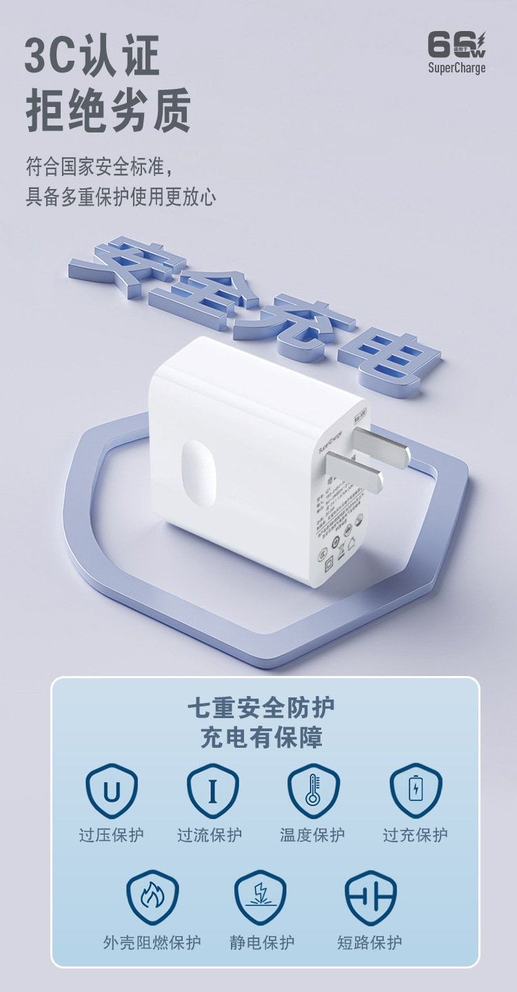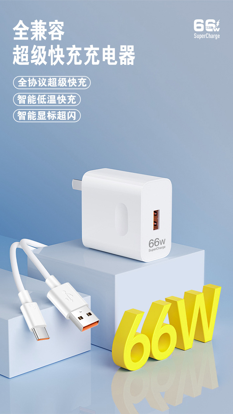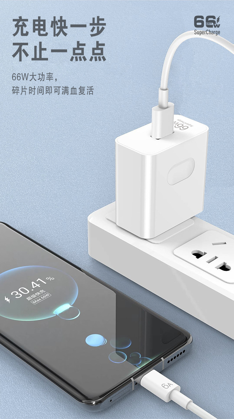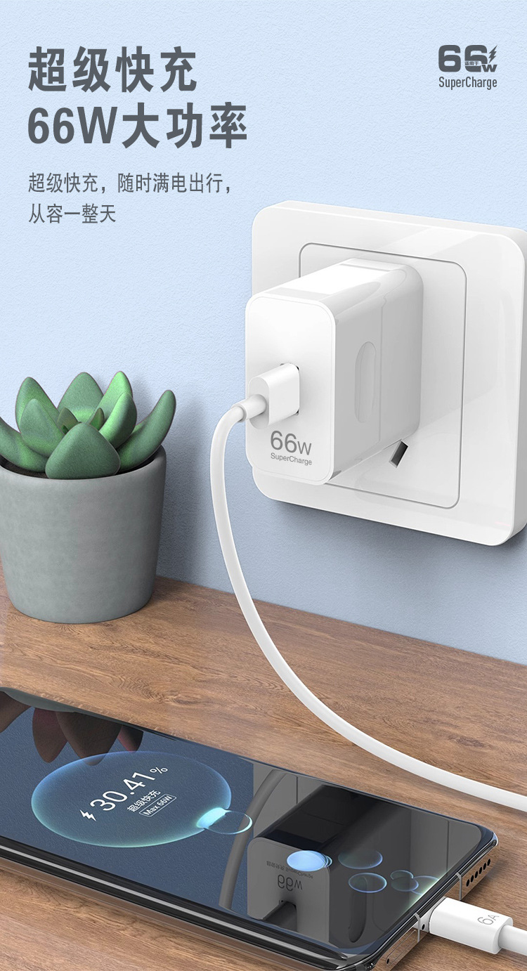 3C认证兼容66W超级快充充电器适用华为荣耀手机双引擎闪充充电头