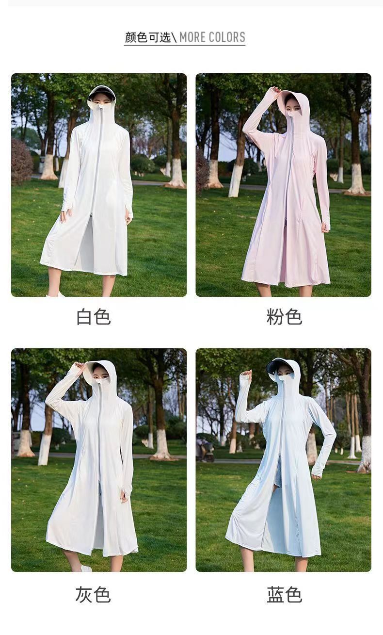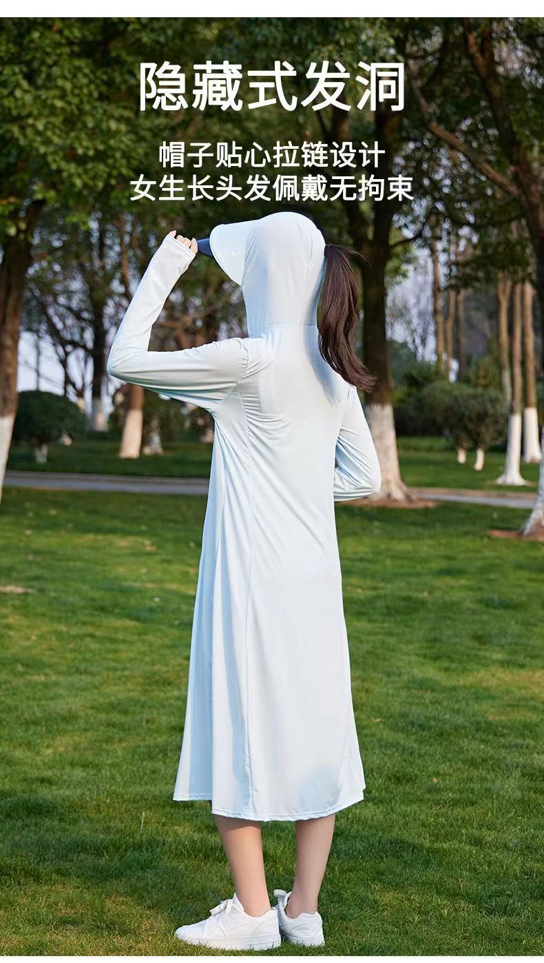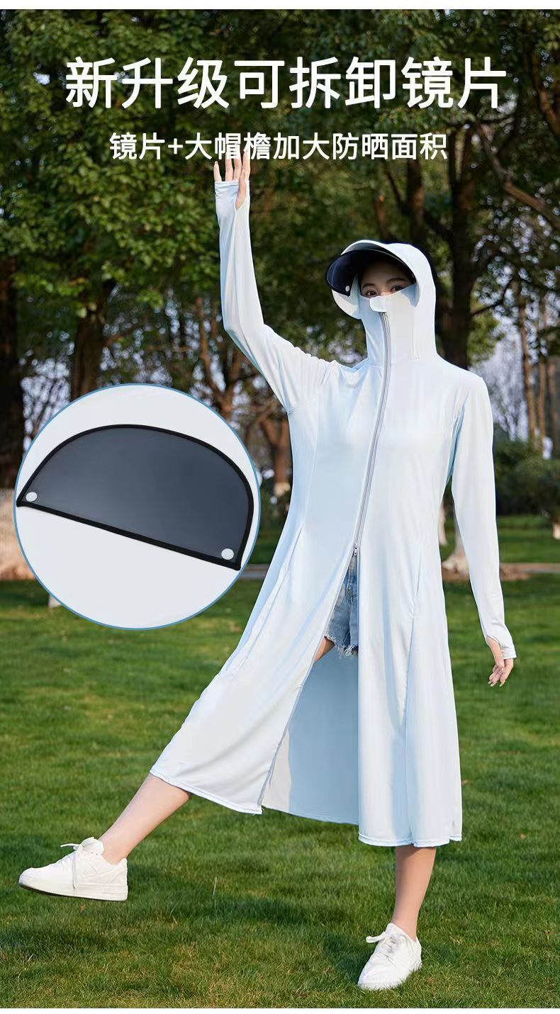 新款夏季长款过膝防晒衣可拆卸镜片连体冰丝外套宽松户外皮肤衣