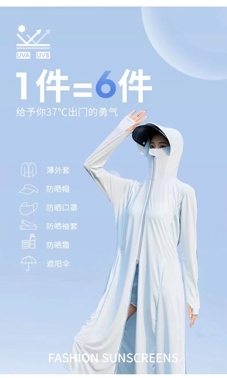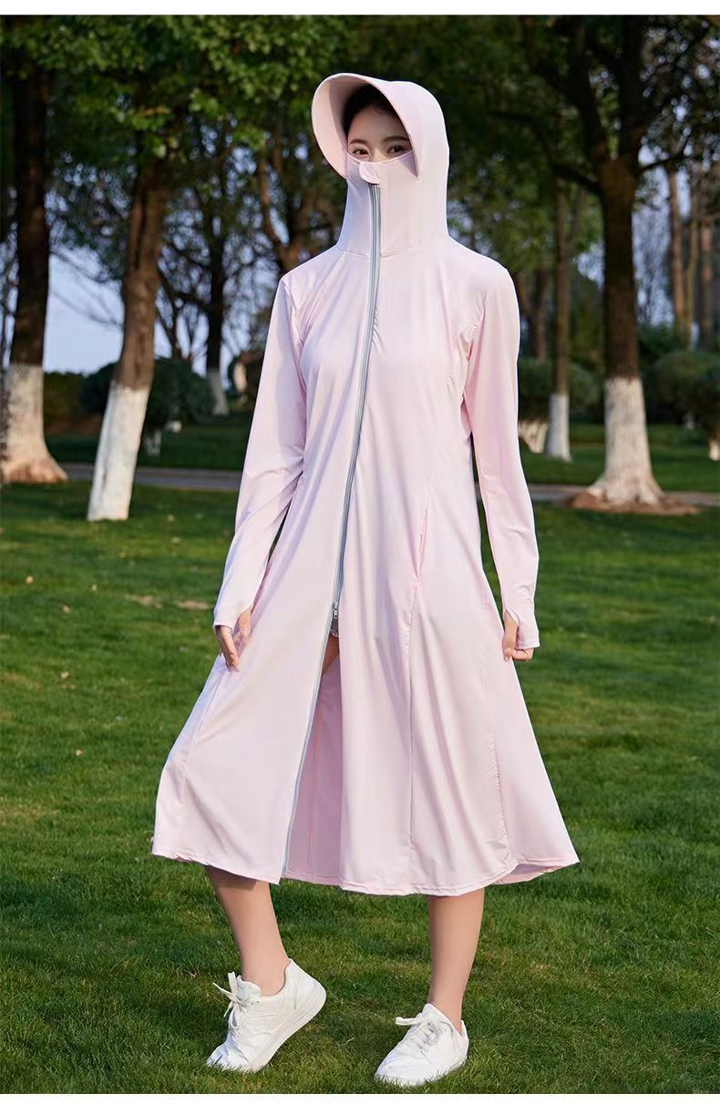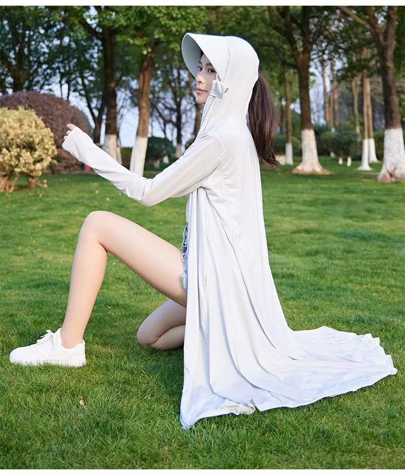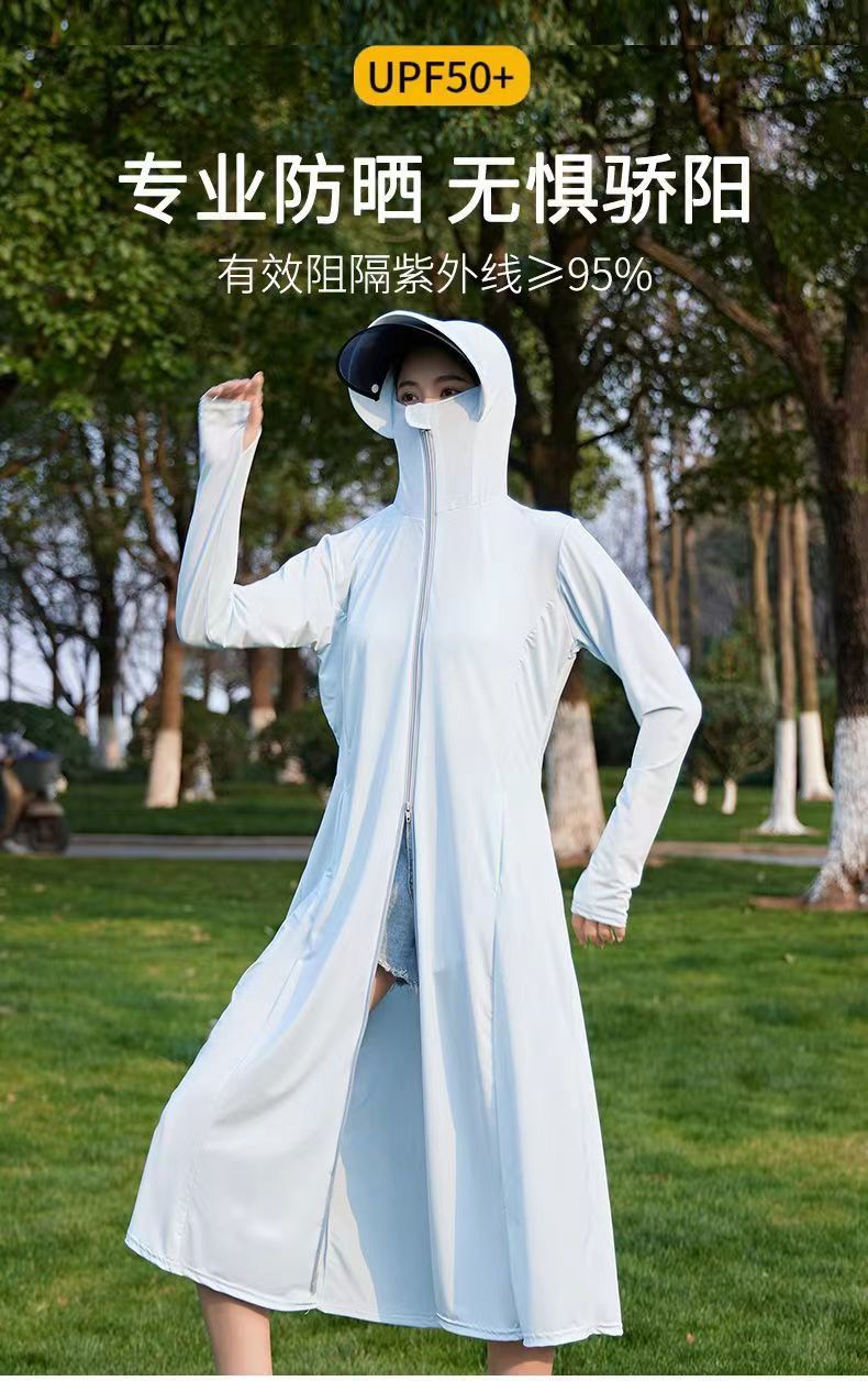新款夏季长款过膝防晒衣可拆卸镜片连体冰丝外套宽松户外皮肤衣