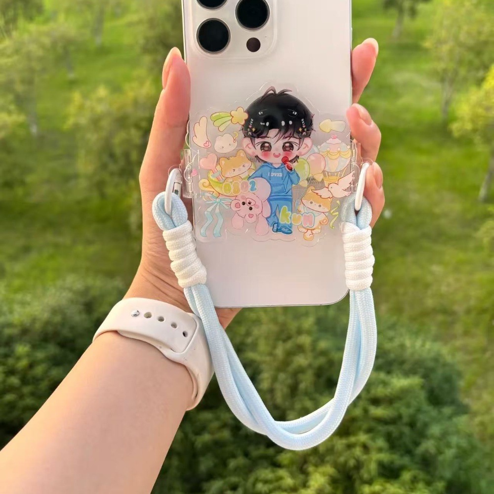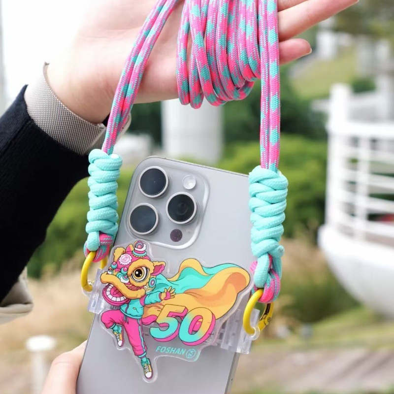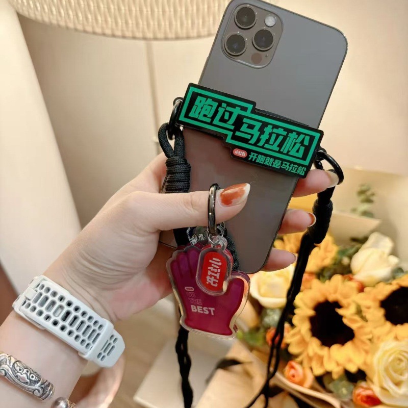 手机斜跨挂绳可调节手机背带背夹挂绳毛绒手机背夹手机挂绳可定制