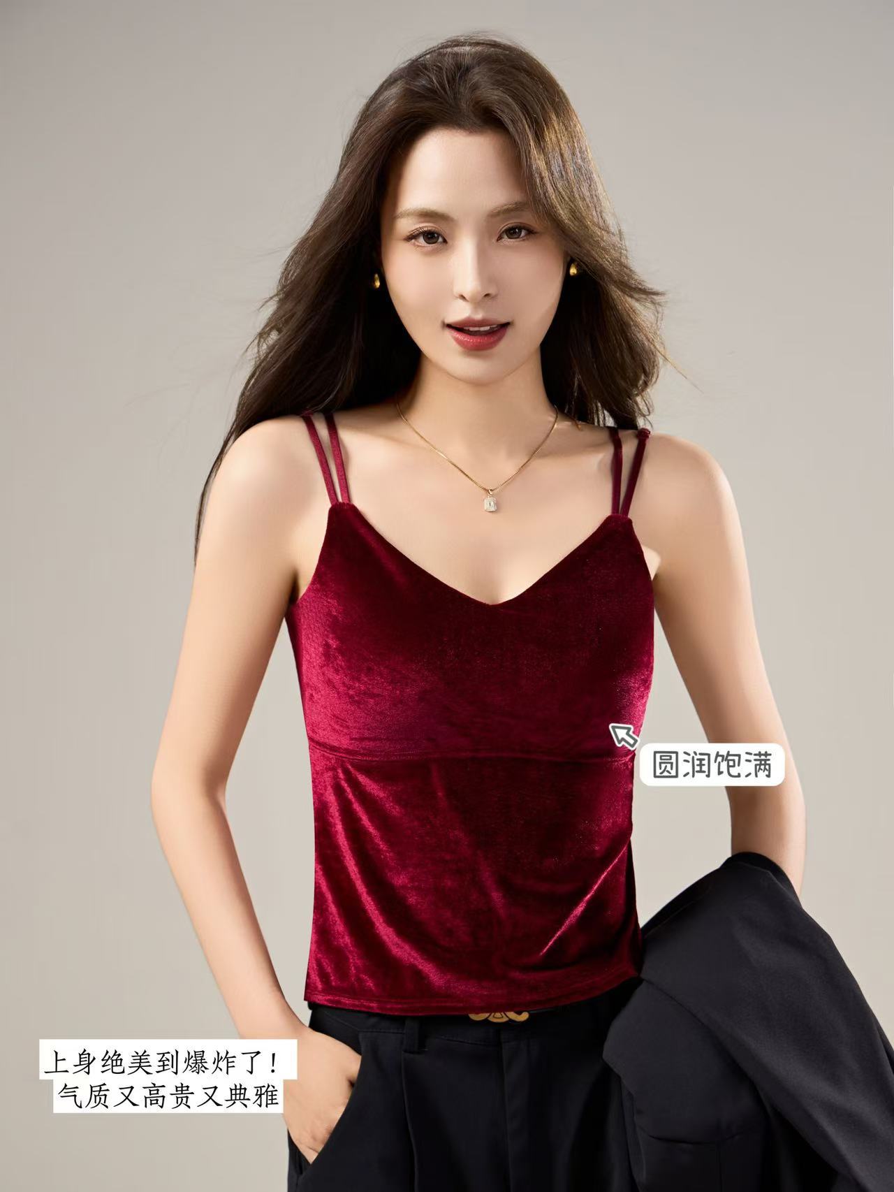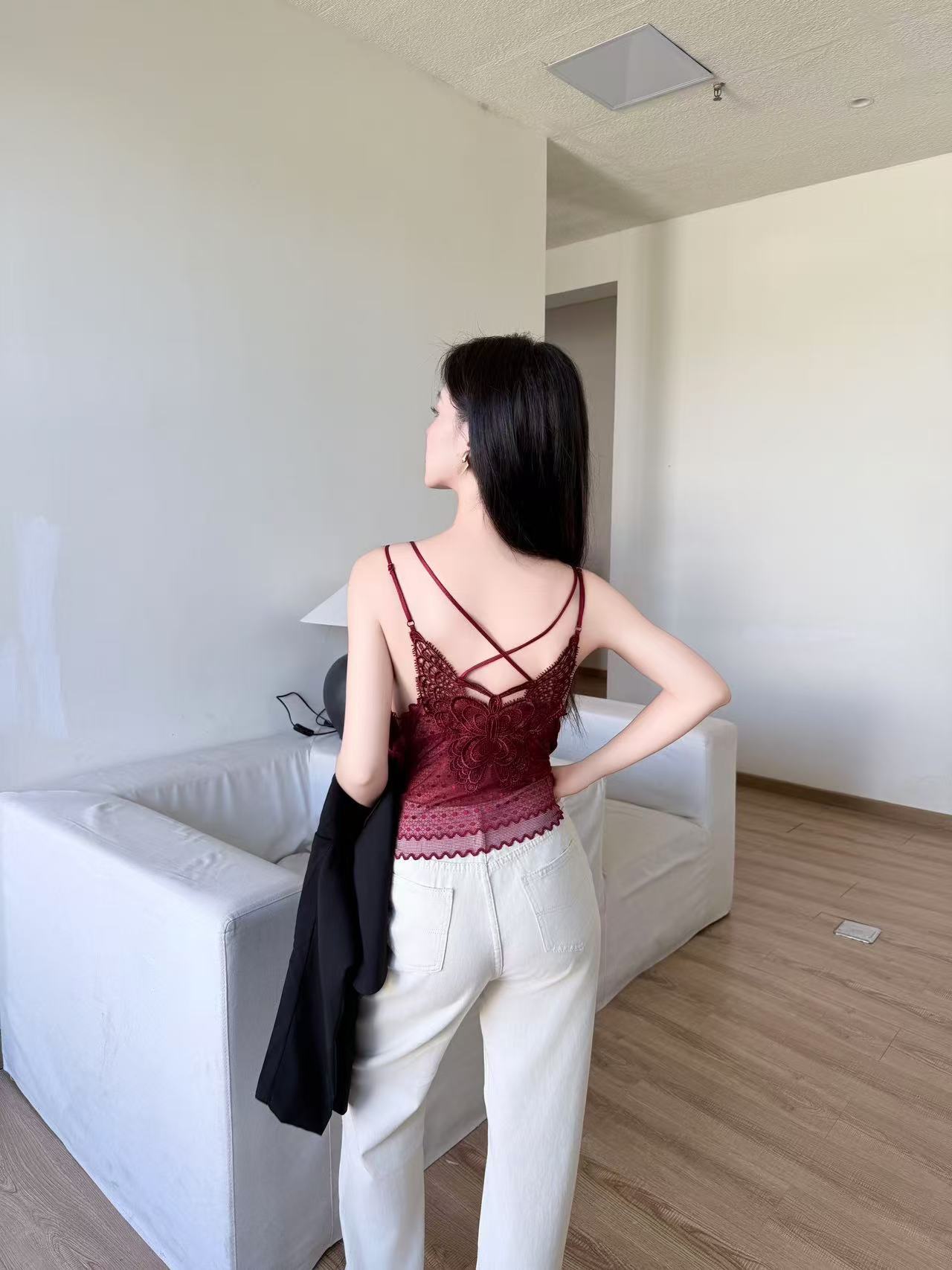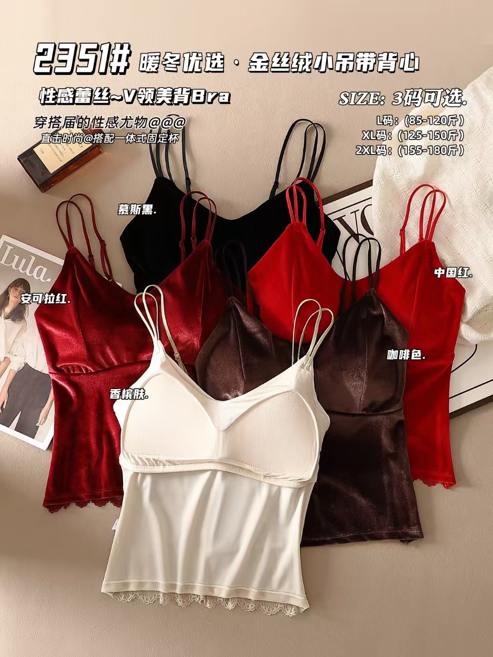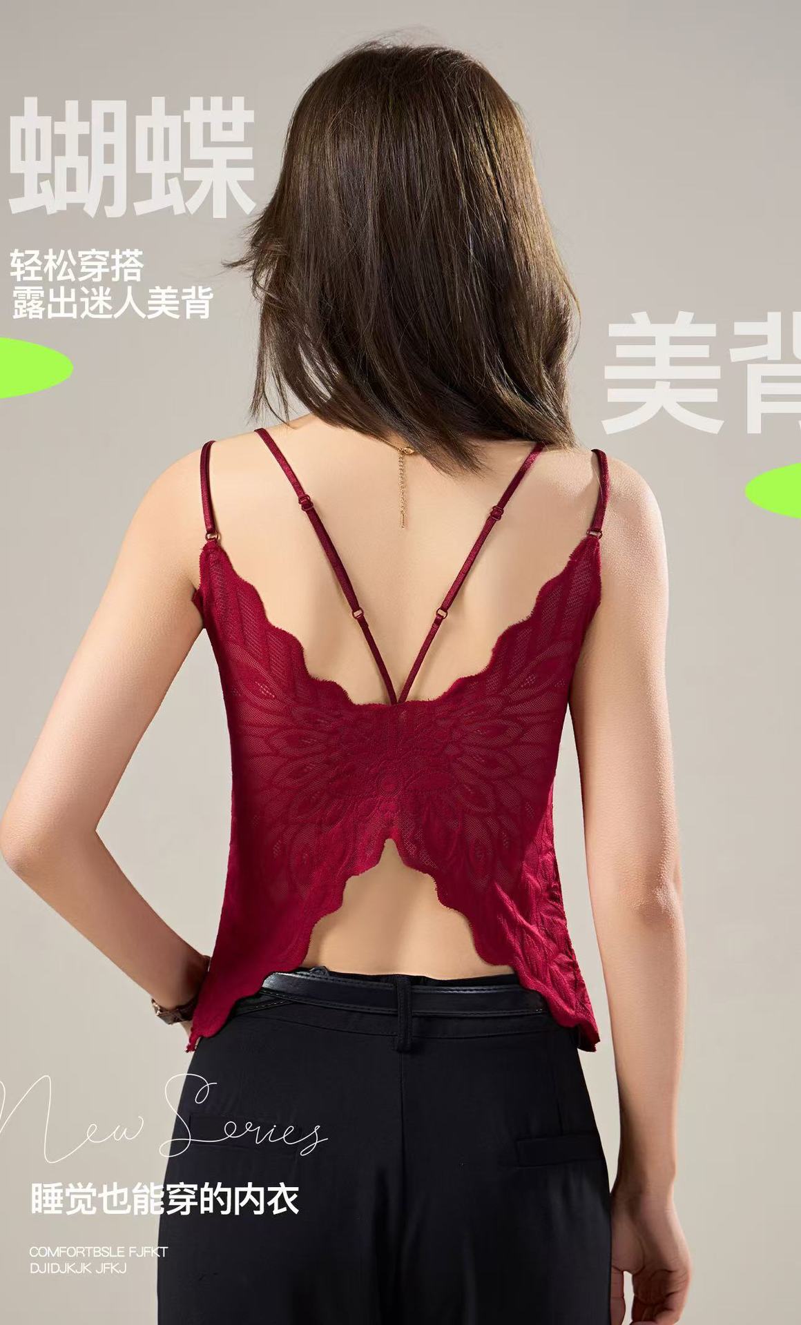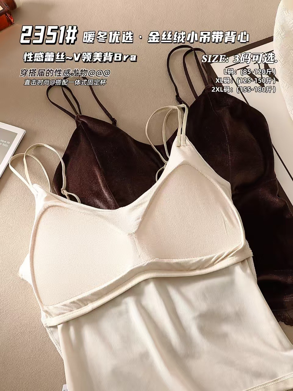 韩版丝绒蕾丝拼接吊带美背背心无痕免穿文胸可外穿女士大码内衣