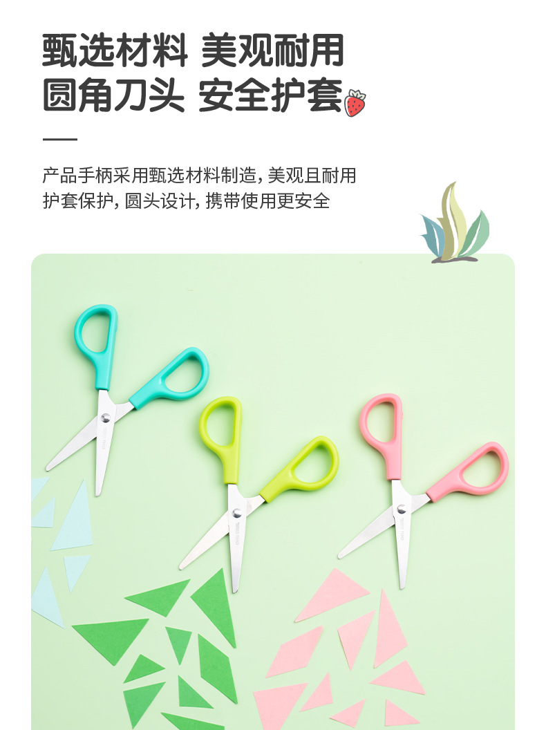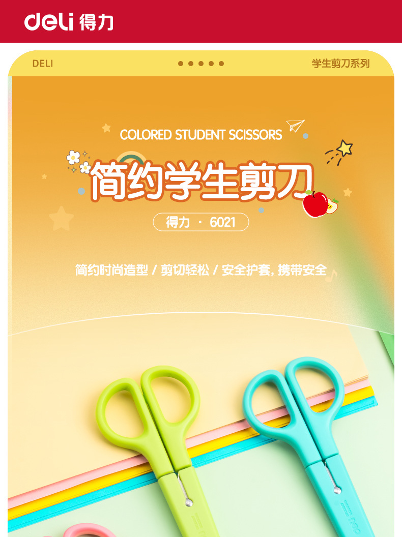 得力6021学生剪刀 可爱卡通儿童护套剪刀 迷你学生小剪子