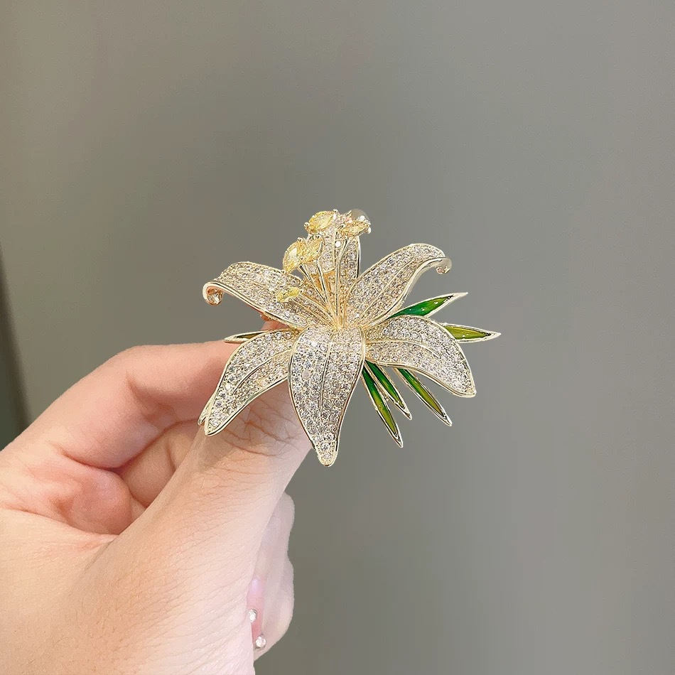 奢华满钻百合花朵胸针高端高级感胸花小众百搭西装别针配饰批货