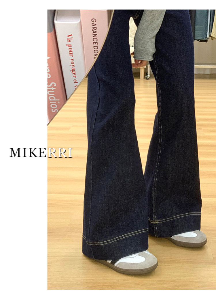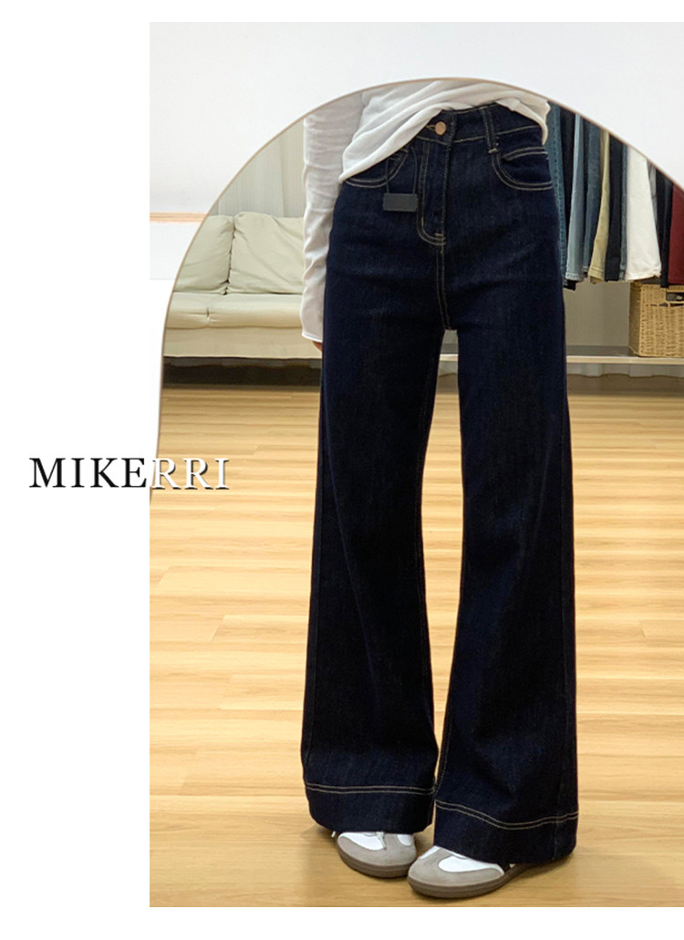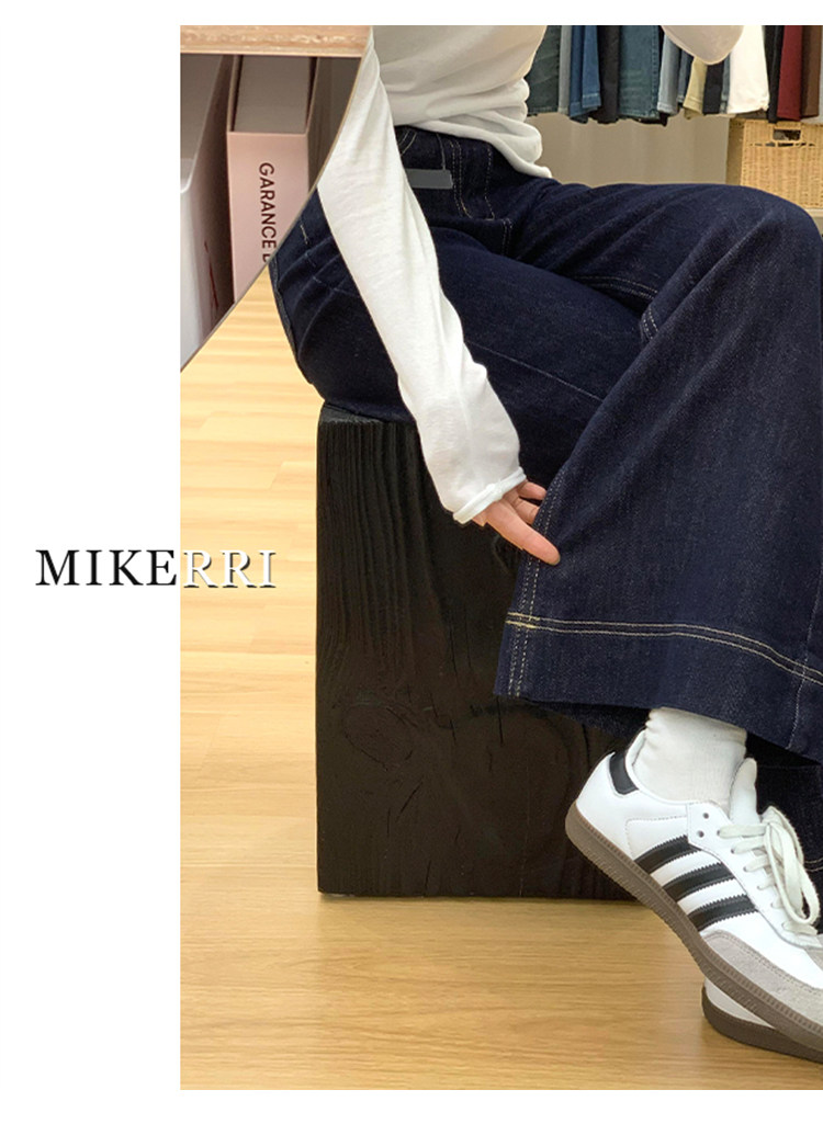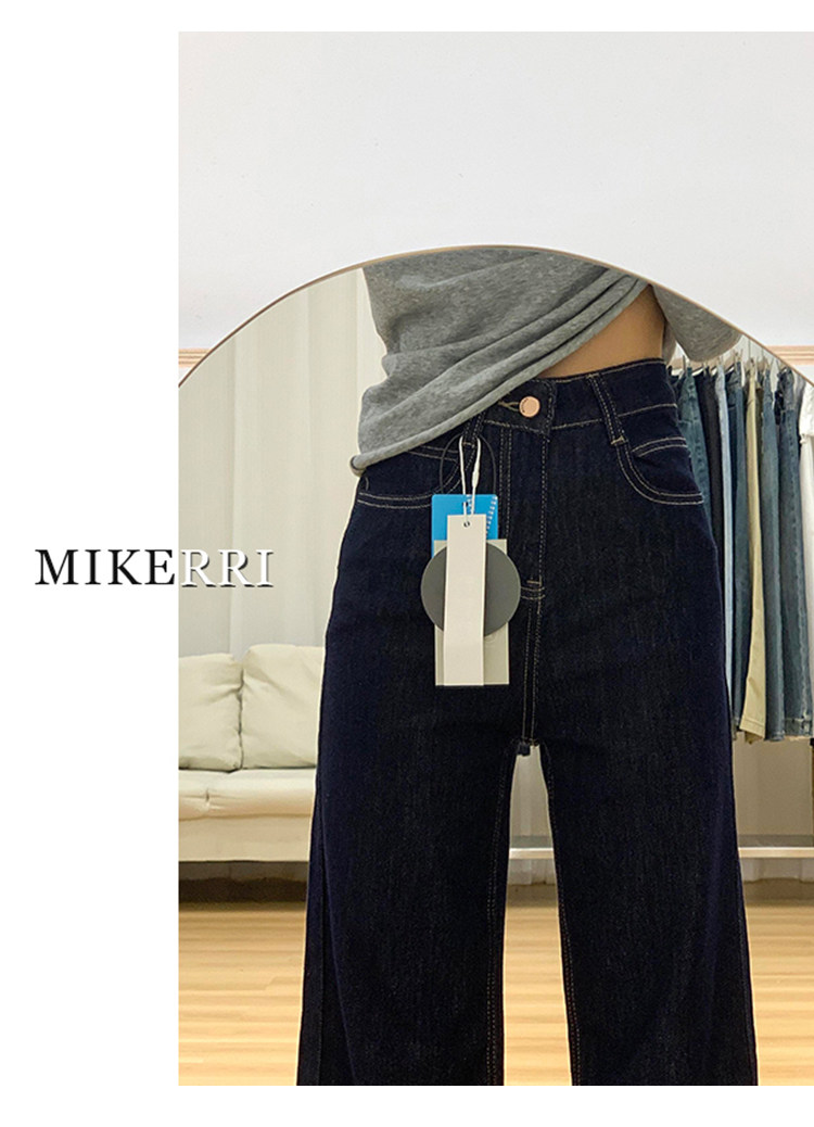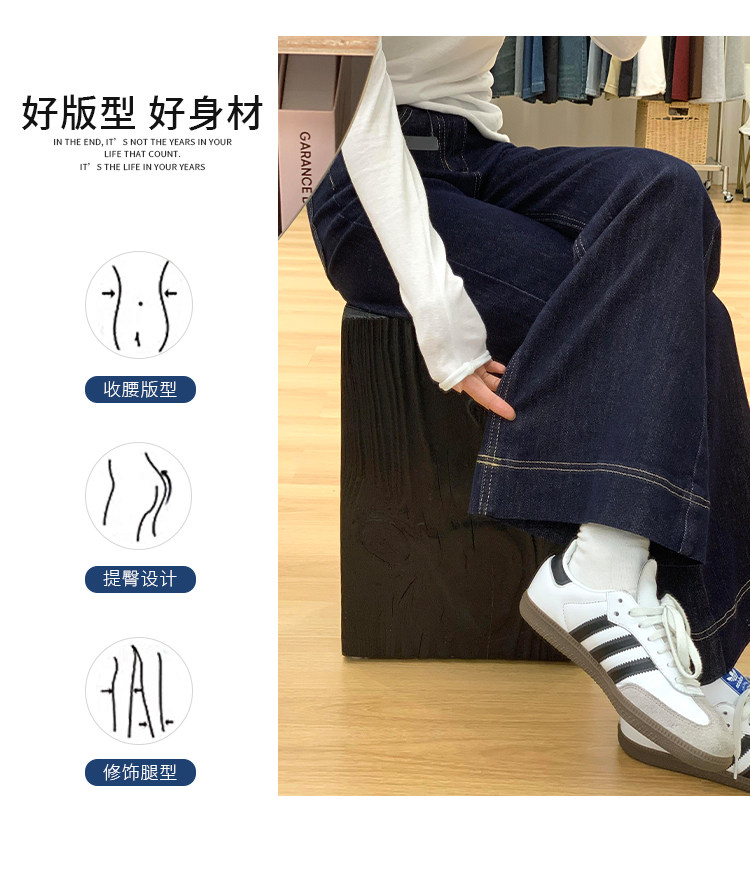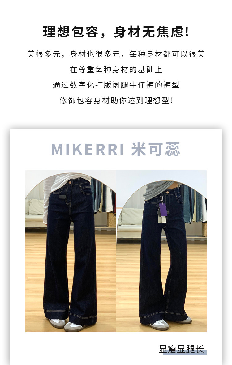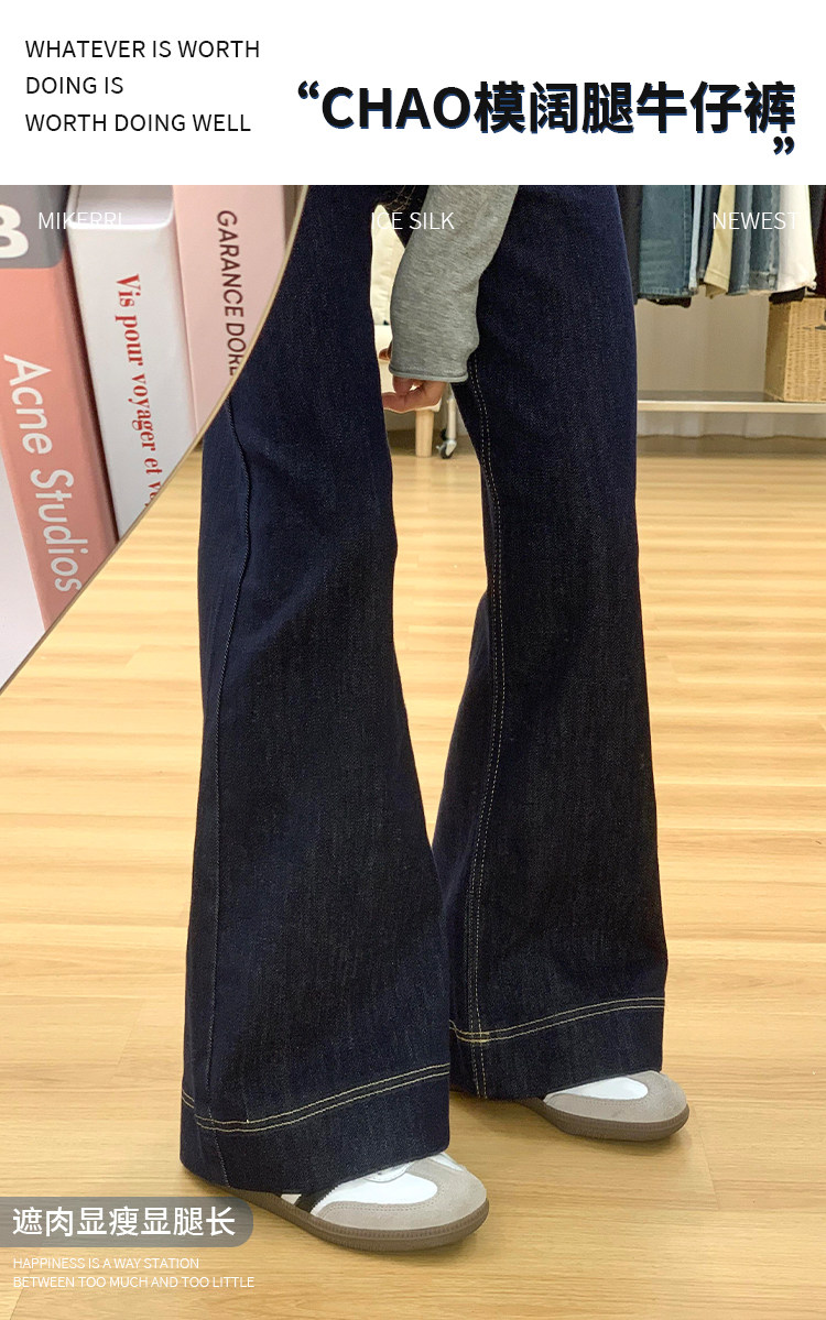 深蓝色A版阔腿牛仔裤女秋季新款大码胖mm宽松显瘦梨形身材直筒裤
