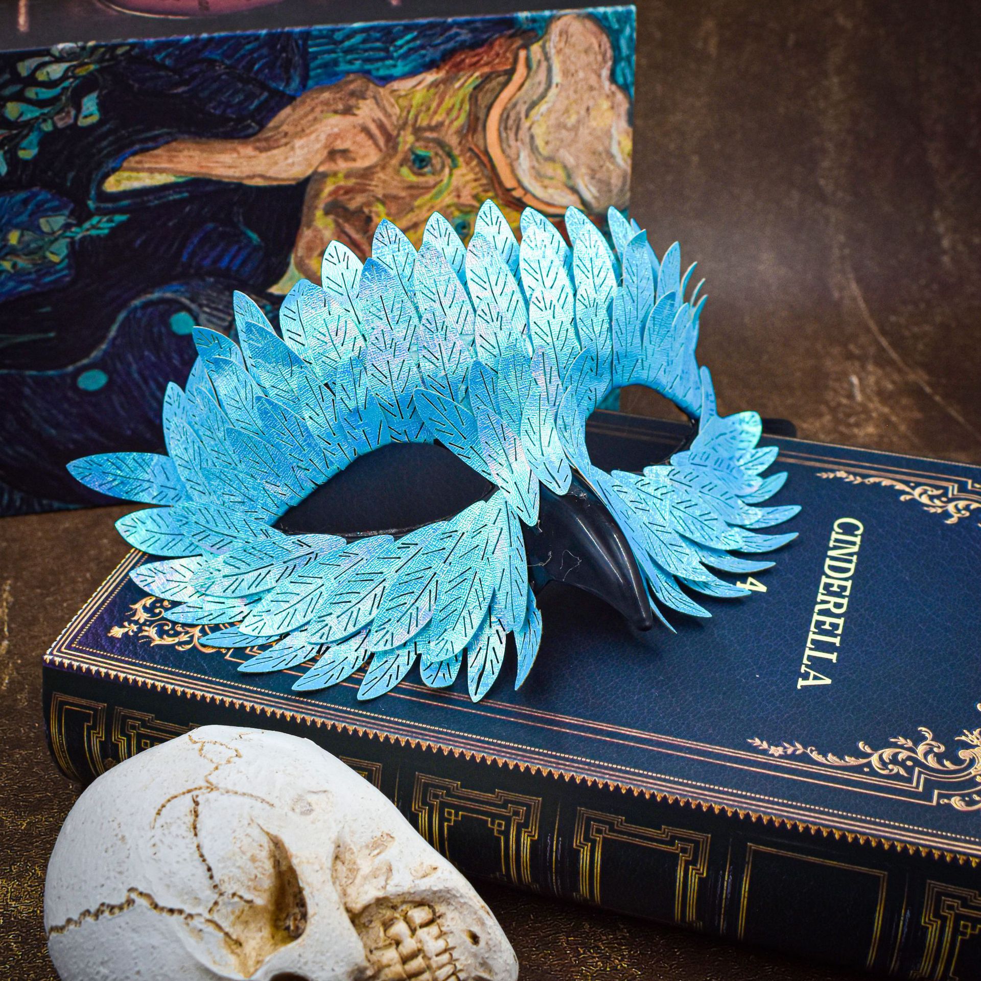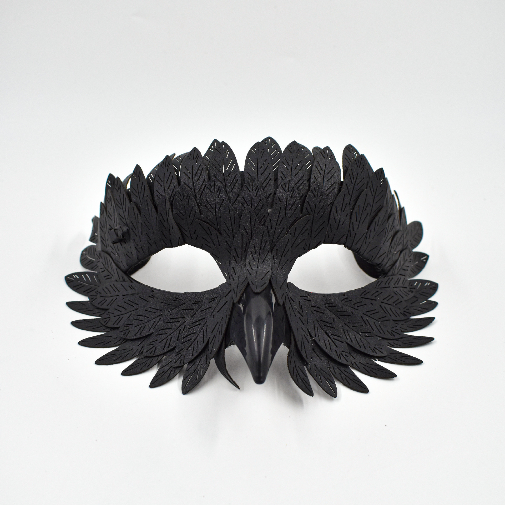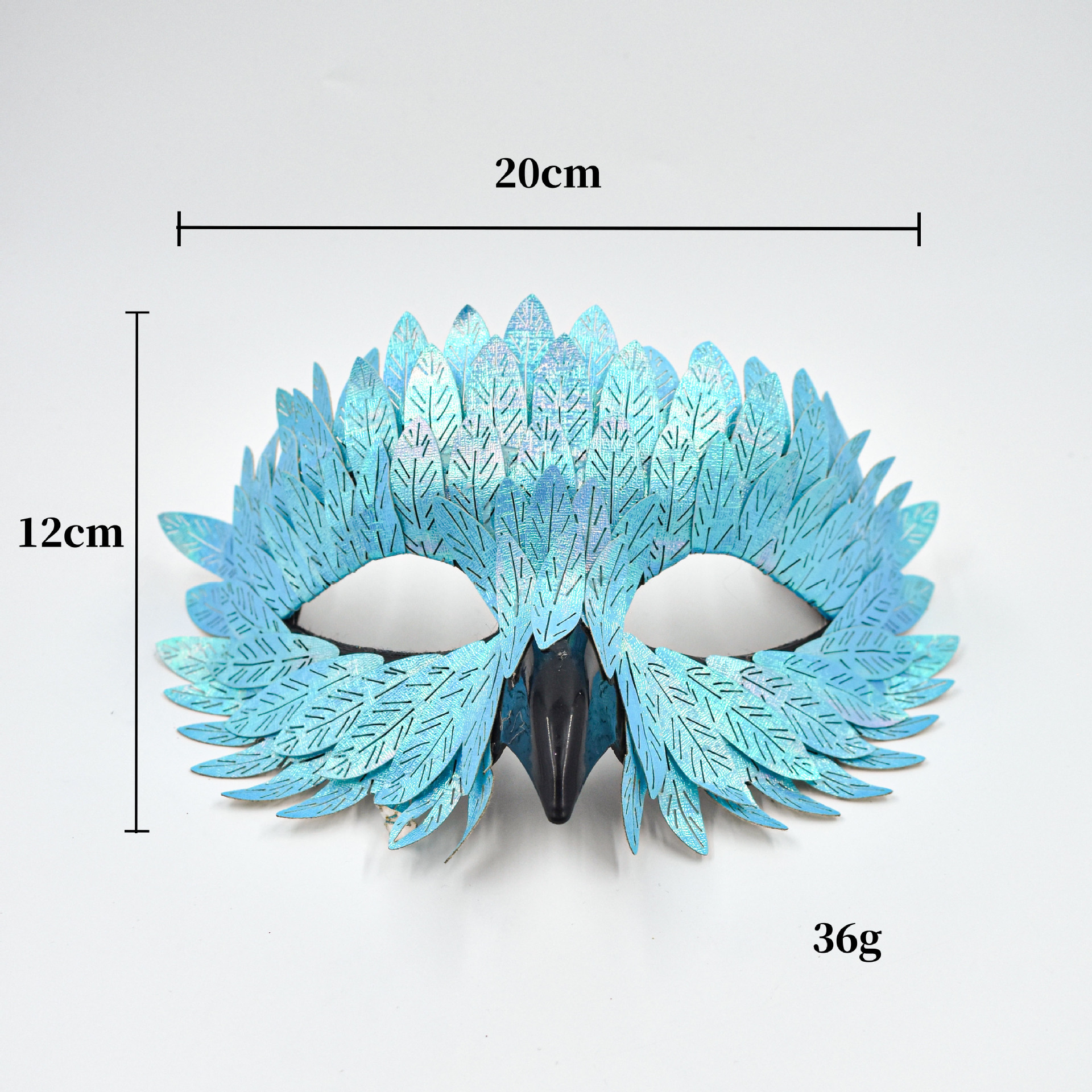 跨境专供万圣节精致鸟嘴面具化妆舞会狂欢节黑色半脸猫头鹰羽毛面